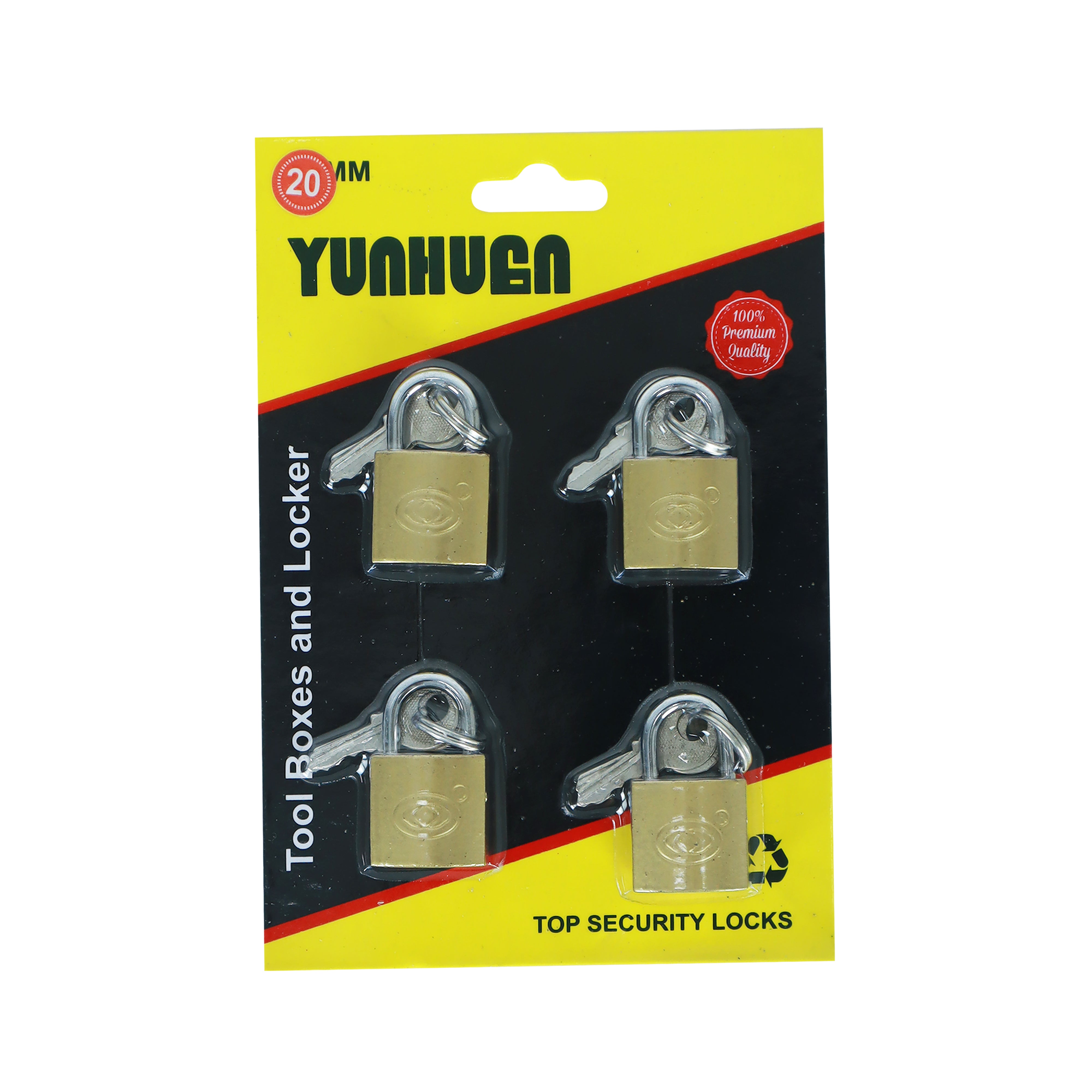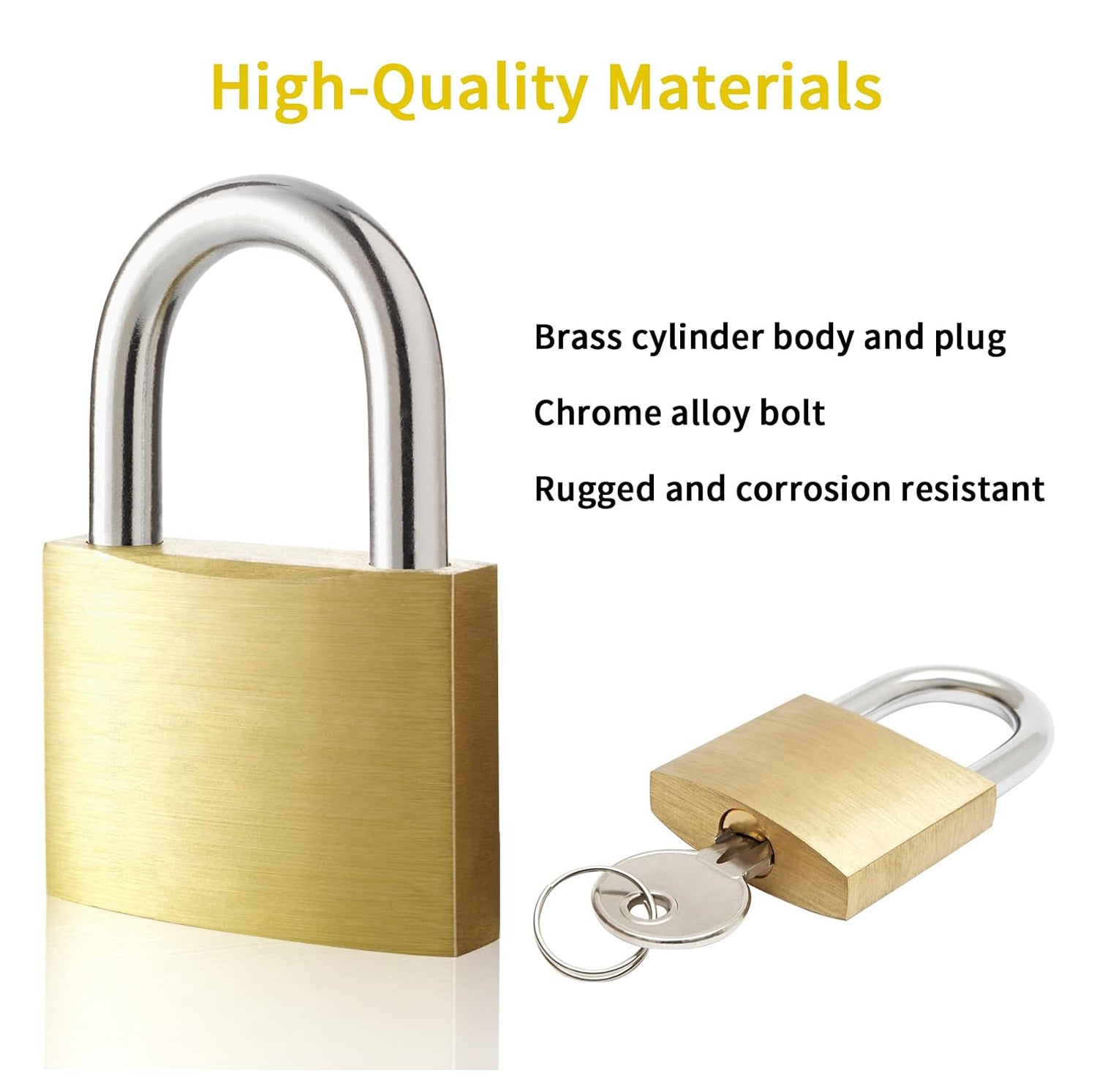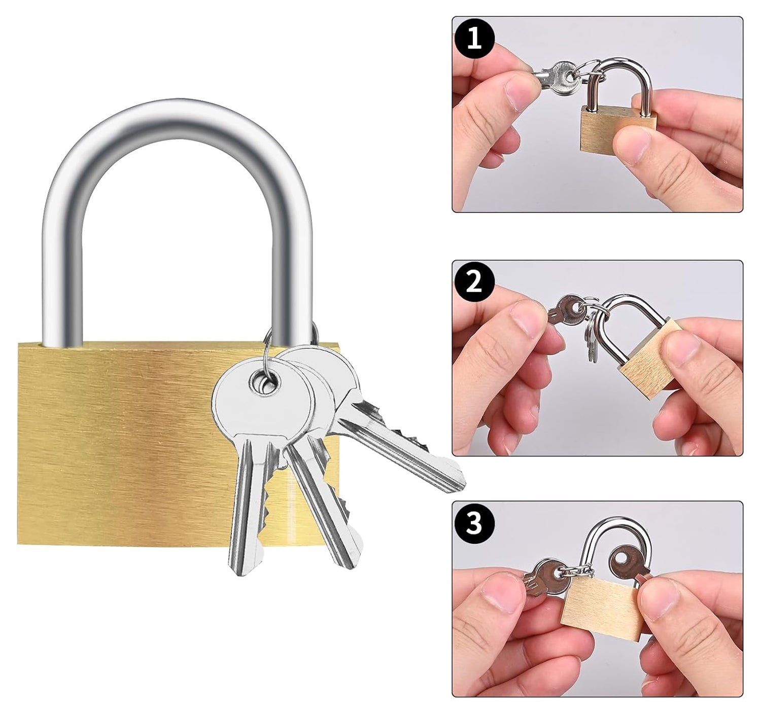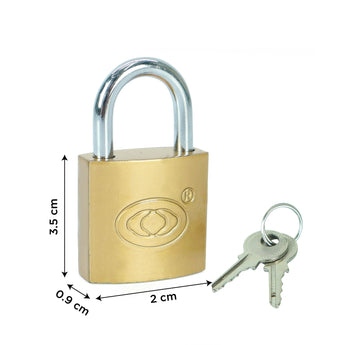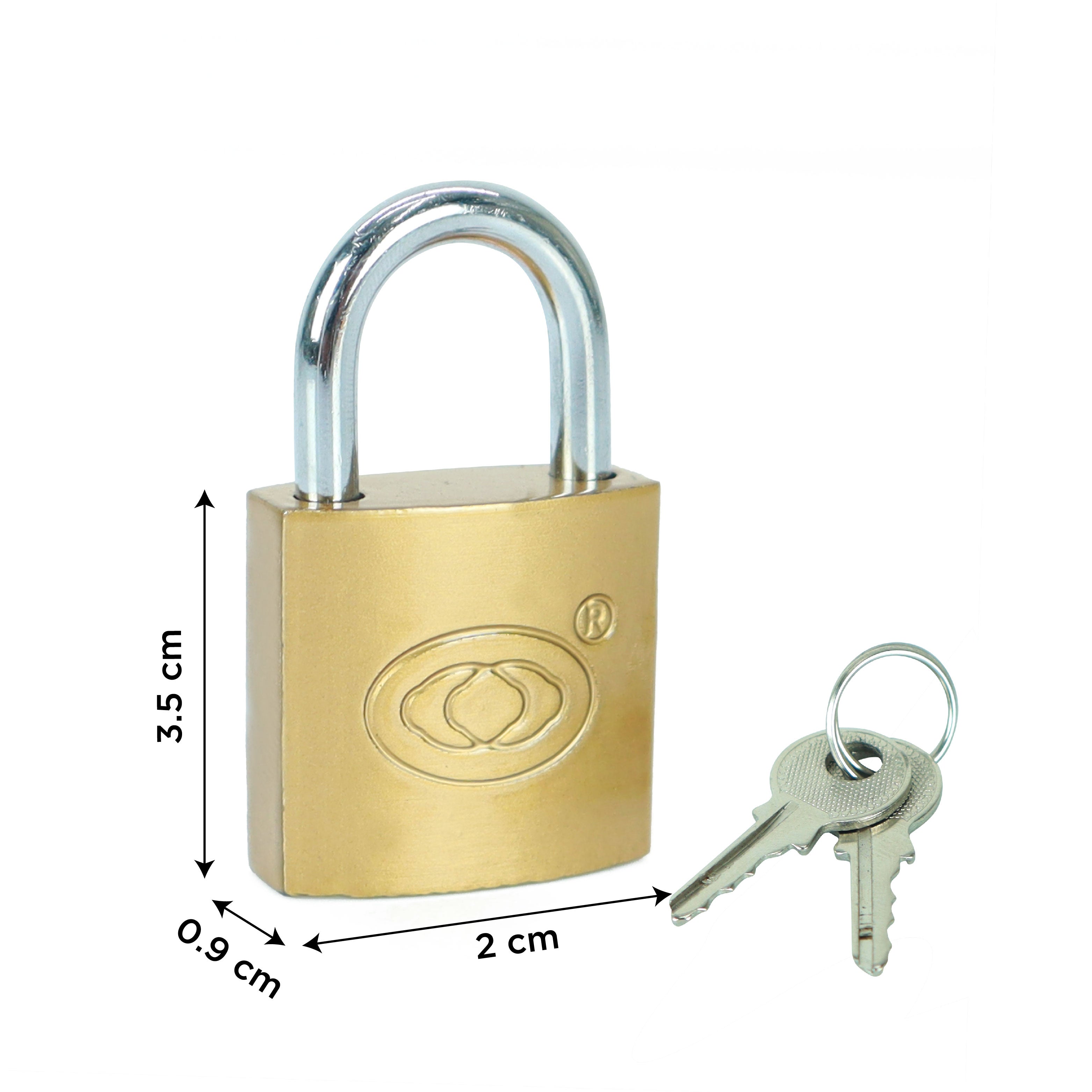 It consist of 4 Small Brass Polished Lock and Key colorful and durable Padlocks for securing luggage while travelling. Each lock comes with UNIQUE 2 Keys. Solid Brass internal Construction with chrome plating for corrosion resistance., Specially Treated Hardened Steel Shackle. No Spring or Loaded Parts., Ideal for securing your travel packs, bags, strolley bags and other luggage., Size: 4 x 2.3 cm locks with 20mm Shackle.