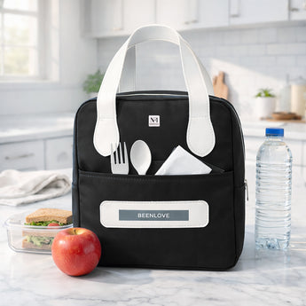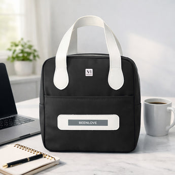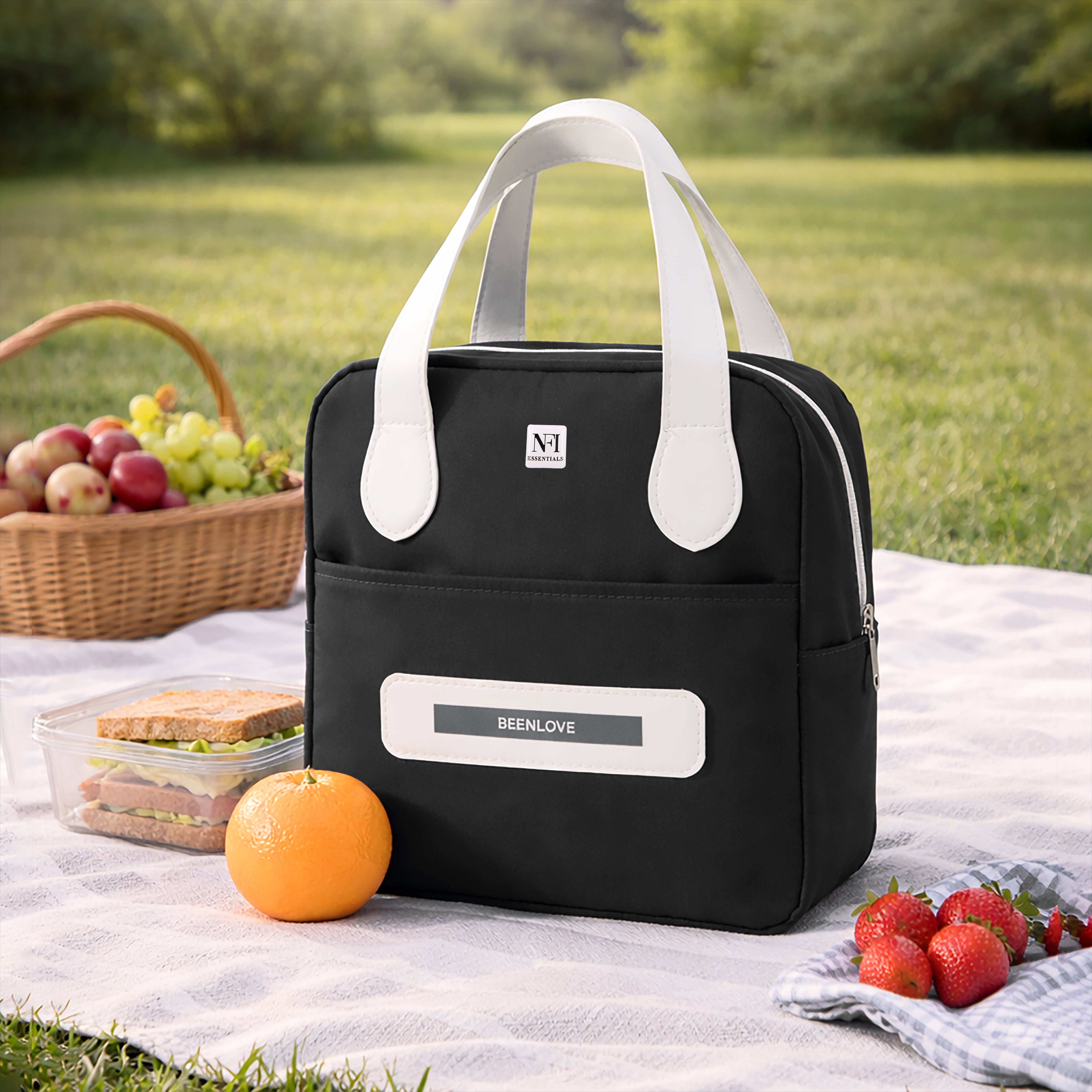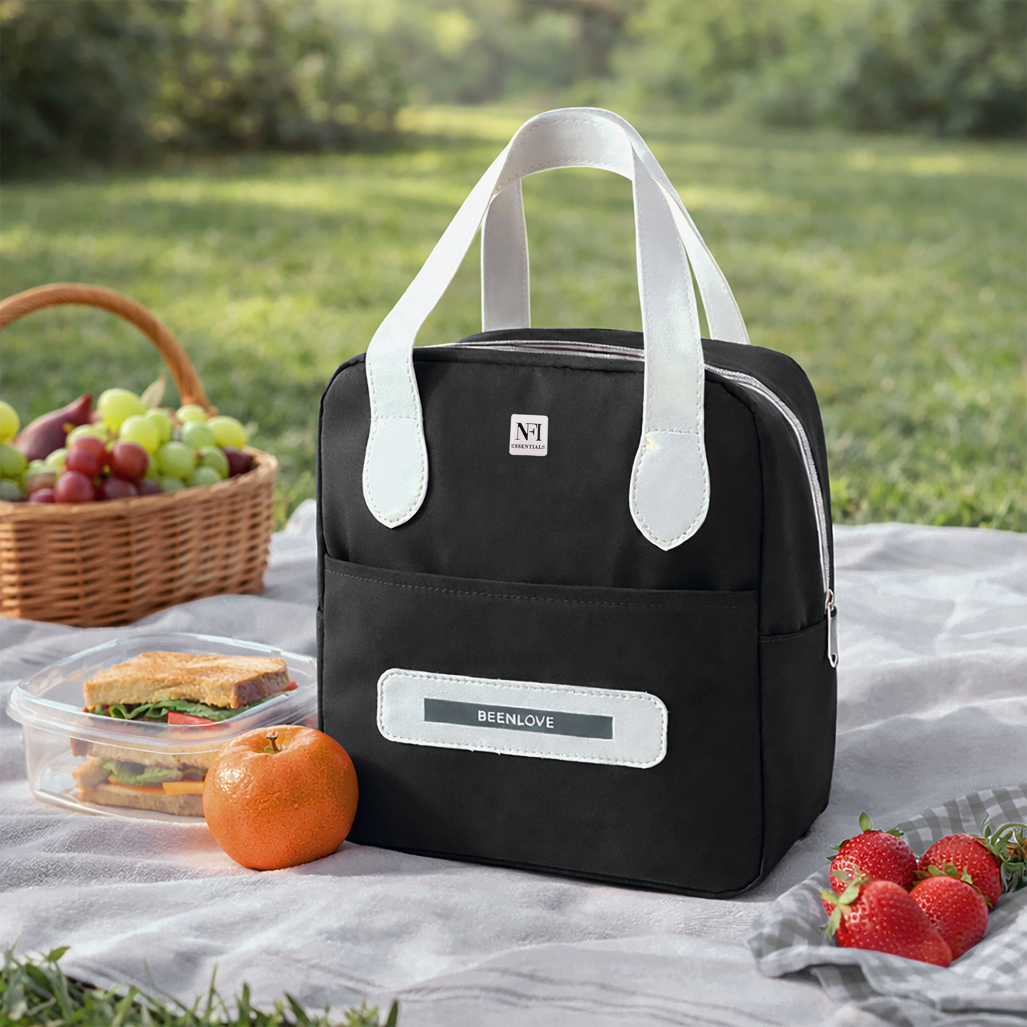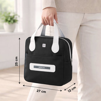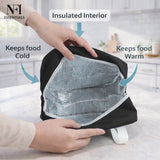 NFI essentials Insulated Lunch Bag for Men Women Large Tiffin Carry Bag Travel Lunch Box Organizer for Office, School, College, Leak-proof Lunch Cooler Bag (Black)