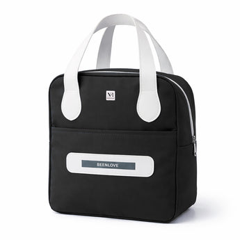 Stylish and portable lunch bag for women/men, can be used in any scene, such as office, outdoor, school, college, beach etc. Our high quality and durability cute insulated lunch bags are definitely worth giving it as a gift to your relatives and friends. Smooth zipper, high quality, secure zipper closure, and metal buckle ensure smooth to open. Wide opening design, make it easier for you to take food. The strong stitched handles makes the hand more comfortable when lifting heavy objects. It's strong and durable, not easy to slip off. Practical front pocket is designed for putting small issues like your cutlery, phone, keys, tissue, napkin paper and cards. High-quality Foil Lining is water and oil resistant. Easily cleaned by wiping with a damp cloth. It solves the problem of oil stains remaining on the lunch bag for a long time. The bag is constructed from durable materials that are designed to withstand daily use. It is easy to clean, allowing you to maintain cleanliness and hygiene by keeping the bag free from spills and food residues. This lunch bag is versatile and can be used for various occasions. Whether you're going to work, school, traveling, or having a picnic, the bag is designed to meet your needs for transporting meals and snacks. It solves the problem of oil stains remaining on the lunch bag for a long time. Features Large Capacity Wide-open Design Durable & Heavy Duty Excellent Thermal Insulation Leakproof & Easy-to-clean.