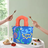 Stylish, printed and portable lunch bag for women/men, can be used in any scene, such as office, outdoor, school, college, picnic, beach etc. Our high quality and durability cute insulated lunch bags are definitely worth giving it as a gift to your relatives and friends. Smooth snap button & high quality ensure smooth to open. Wide opening design, make it easier for you to take food. The strong stitched cushioned handles makes the hand more comfortable when lifting heavy objects. It's strong and durable, not easy to slip off. High-quality Foil Lining is water and oil resistant. Easily cleaned by wiping with a damp cloth. It solves the problem of oil stains remaining on the lunch bag for a long time. The bag is constructed from durable materials that are designed to withstand daily use. It is easy to clean, allowing you to maintain cleanliness and hygiene by keeping the bag free from spills and food residues. This lunch bag is versatile and can be used for various occasions. Whether you're going to work, school, traveling or having a picnic, the bag is designed to meet your needs for transporting meals and snacks. It solves the problem of oil stains remaining on the lunch bag for a long time. Features large capacity wide-open design durable & heavy duty excellent thermal insulation leakproof & easy-to-clean. Lunch bag equipped with extra thick waterproof liner, premium polyester fabric and built-in thick foam insulation material. So our insulated lunch bag will keep your food/drinks at the optimal temperature and enables excellent insulation effect up to many hours, so you can always recharge with warm tasty food and cold drinks! If you put the small lunch bag in a backpack, the insulation performance will be better.