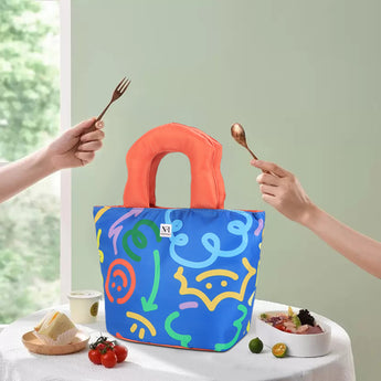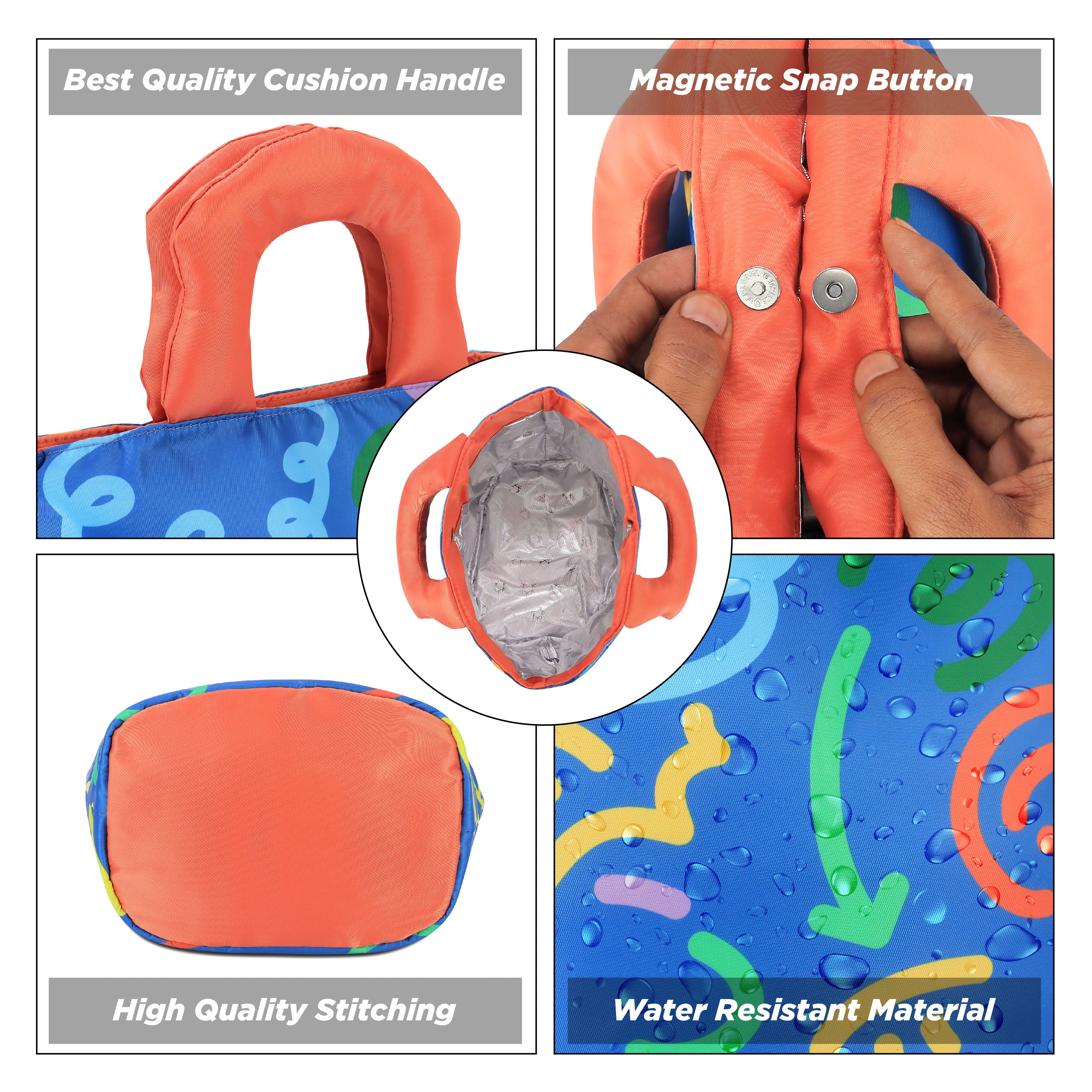 NFI essentials Insulated Lunch Bag for Men Women Large Tiffin Carry Bag Travel Lunch Box Organizer for Office, School, College, Leak-Proof Printed Lunch Cooler Bag