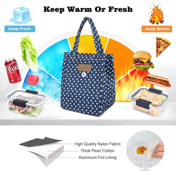 NFI essentials Printed Lunch Bag Thermal portable Tiffin Bag for Food Travel & Picnic , Lunch Bag for office Oxford Cloth Fabric Multicolor. Material: The lunch bag is made of good quality Oxford cloth and aluminum foil, environmental protection. Simple Design Fashionable design, Light weight, double handle, lightweight, insulated, foldable, water resistance, easy to clean. Large capacity : light and warm lunch bag, there is enough space to accommodate all the lunches you want lunch box , canned, fruit, water bottles, snacks.