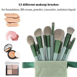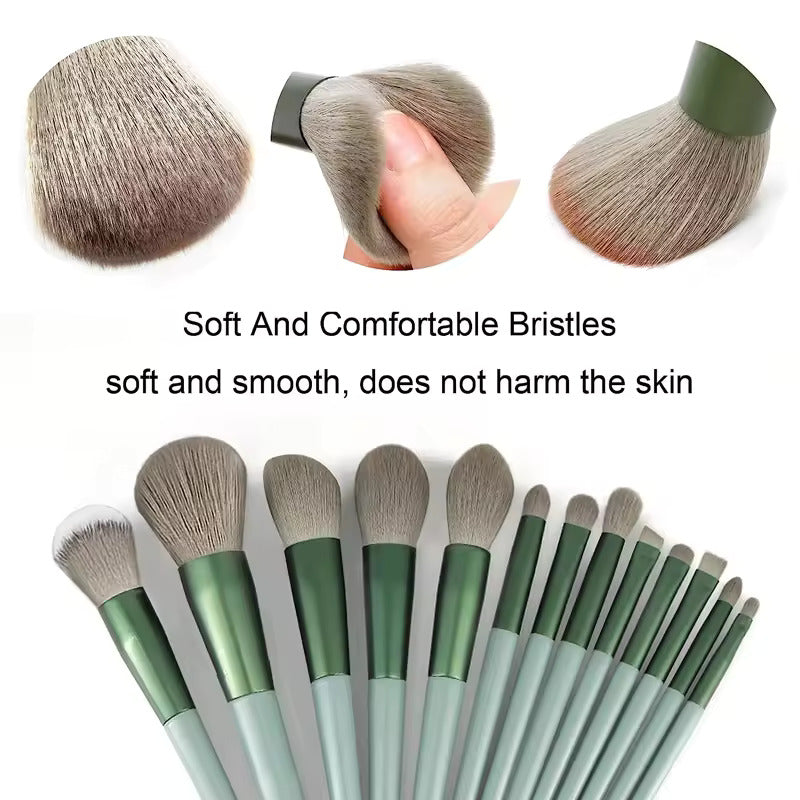 NFI essentials Professional Synthetic Soft Bristle Makeup Brush Set of 13 For Face & Eye Cosmetic Accessories Brushes Kit For Eyeshadow, Powder, Lip, Eyebrow (Green)