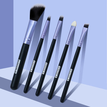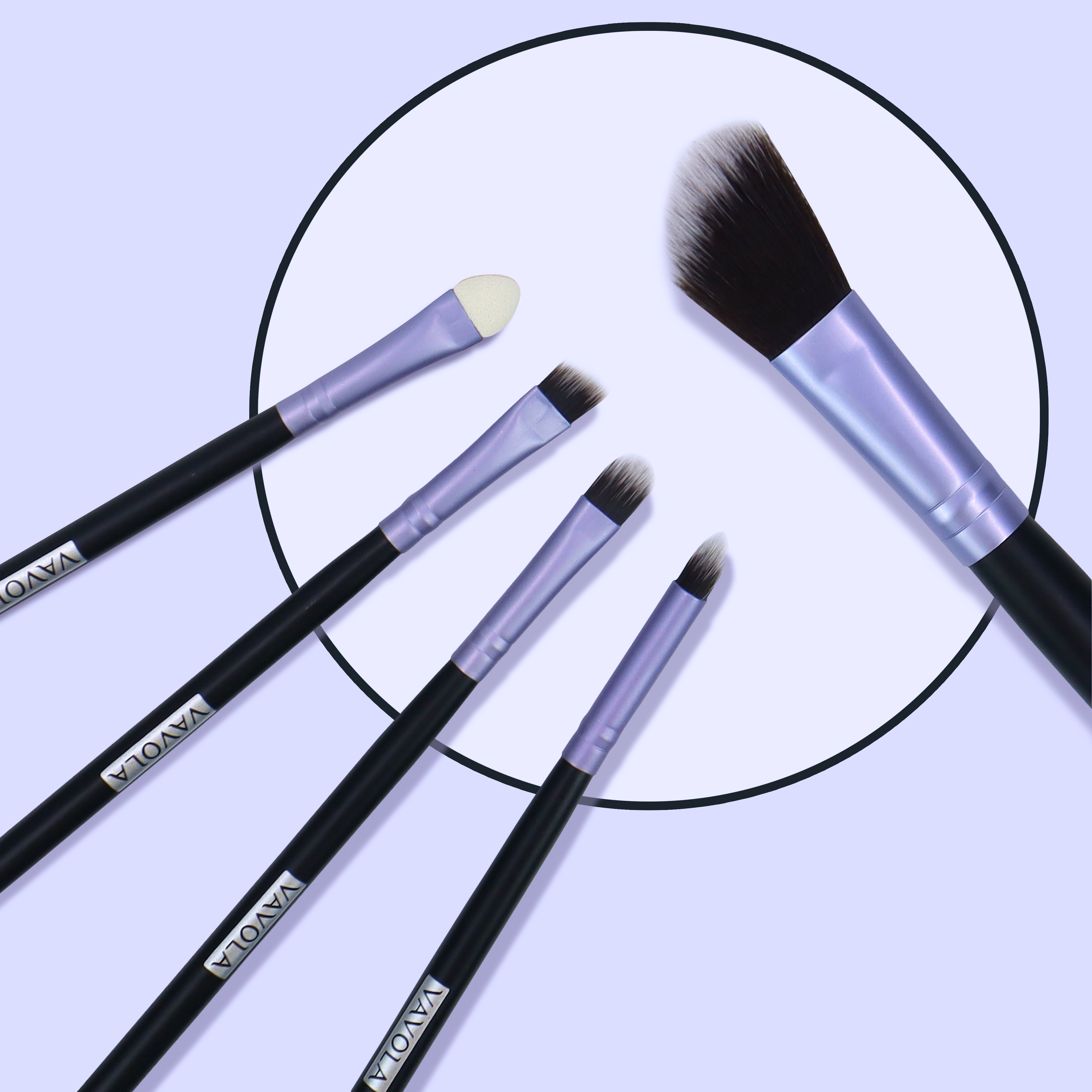 NFI essentials Professional Synthetic Soft Bristle Makeup Brush Set of 5 For Face & Eye Cosmetic Accessories Brushes Kit For Eyeshadow, Powder, Lip, Eyebrow