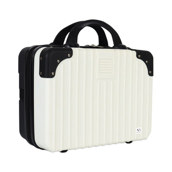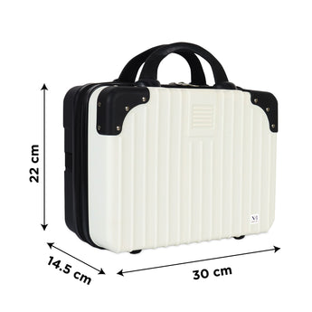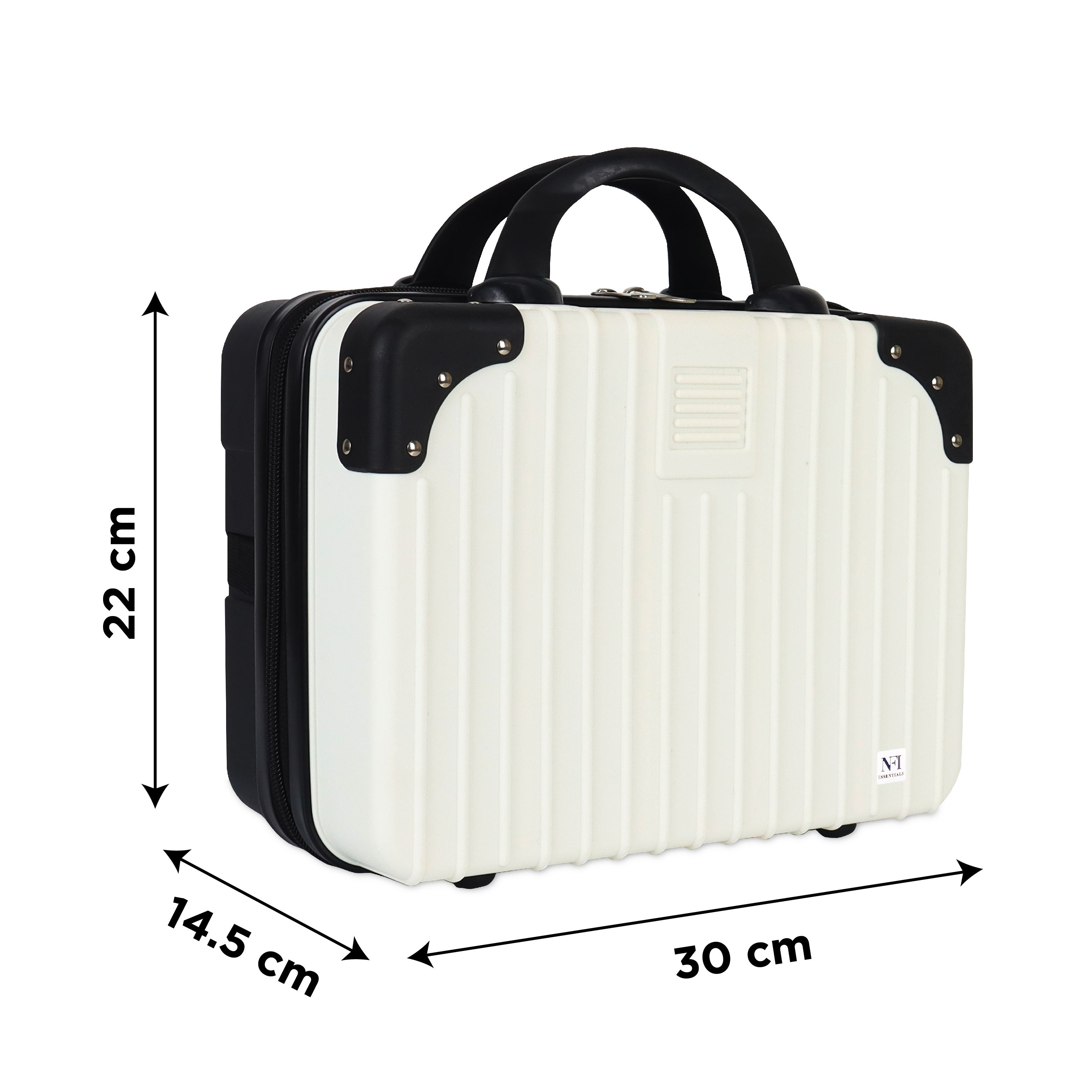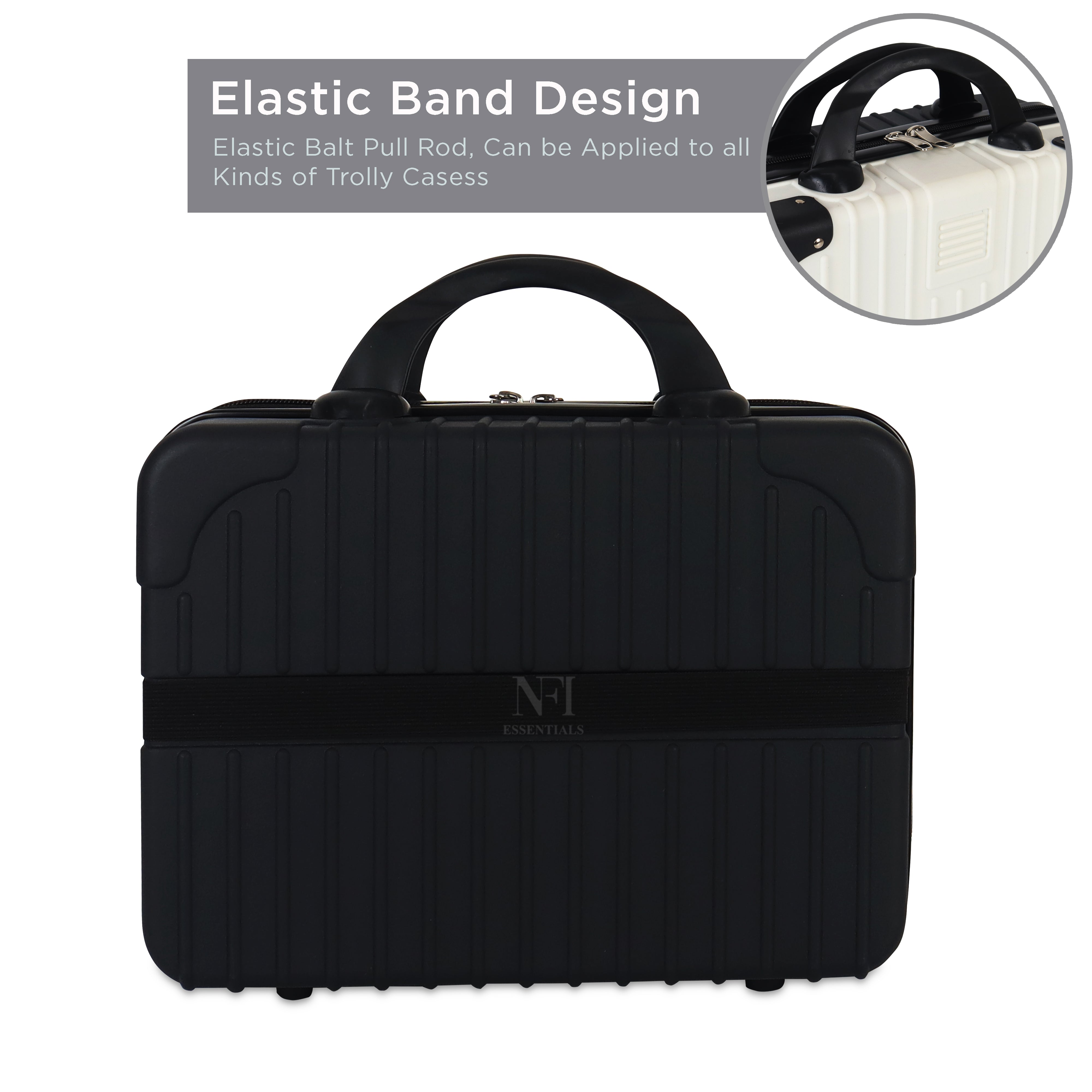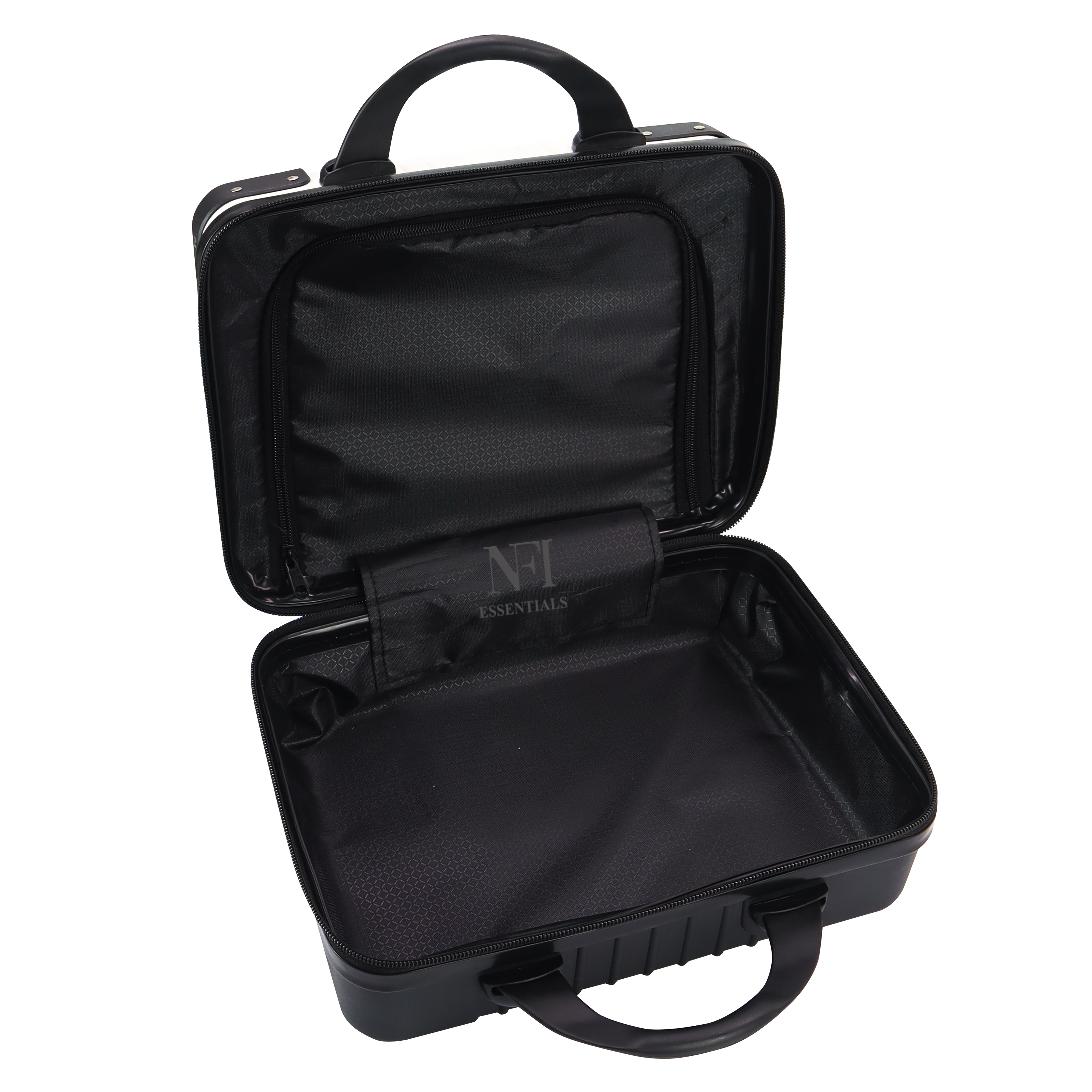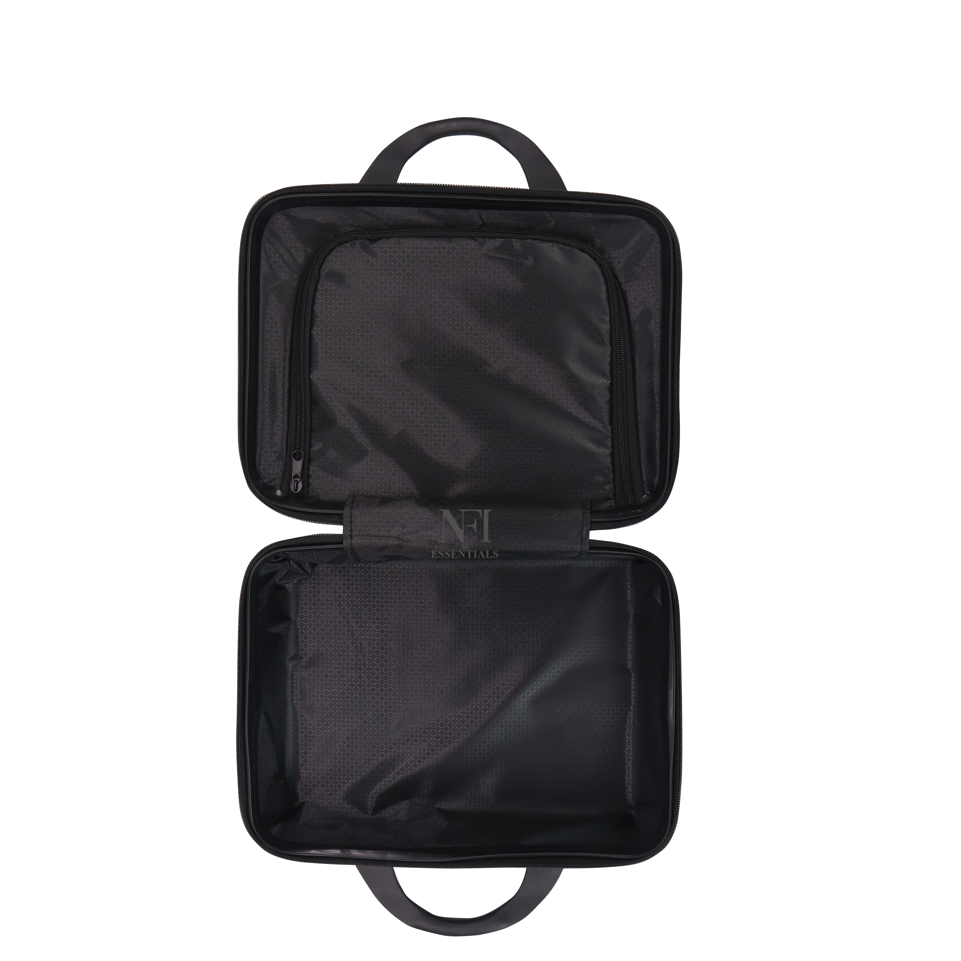 NFI essentials Hard Shell Vanity Cases is a lightweight, highly durable material that resists wear and compression. Stain-resistant and with a grainy texture. There is balance in both appearance and quality. The rubber handle is soft and provides a comfortable grip while evenly dispersing strength for a prolonged lift without fatigue. Our cosmetic suitcase has elastic straps designed for added convenience. To free up your hands, you can place it on the suitcase's carry handle.This is the ideal storage case for organizing cosmetics, skin care products, The suitcase's interior is straightforward and uncomplicated. A mesh zip pocket and an open, zip-around packet make up one section. An open pocket is another component. This is the makeup bag with a big capacity.toiletries, makeup, personal belongings, school supplies, hair accessories, small toys, and It has an elastic belt which can applied to trolley or cases