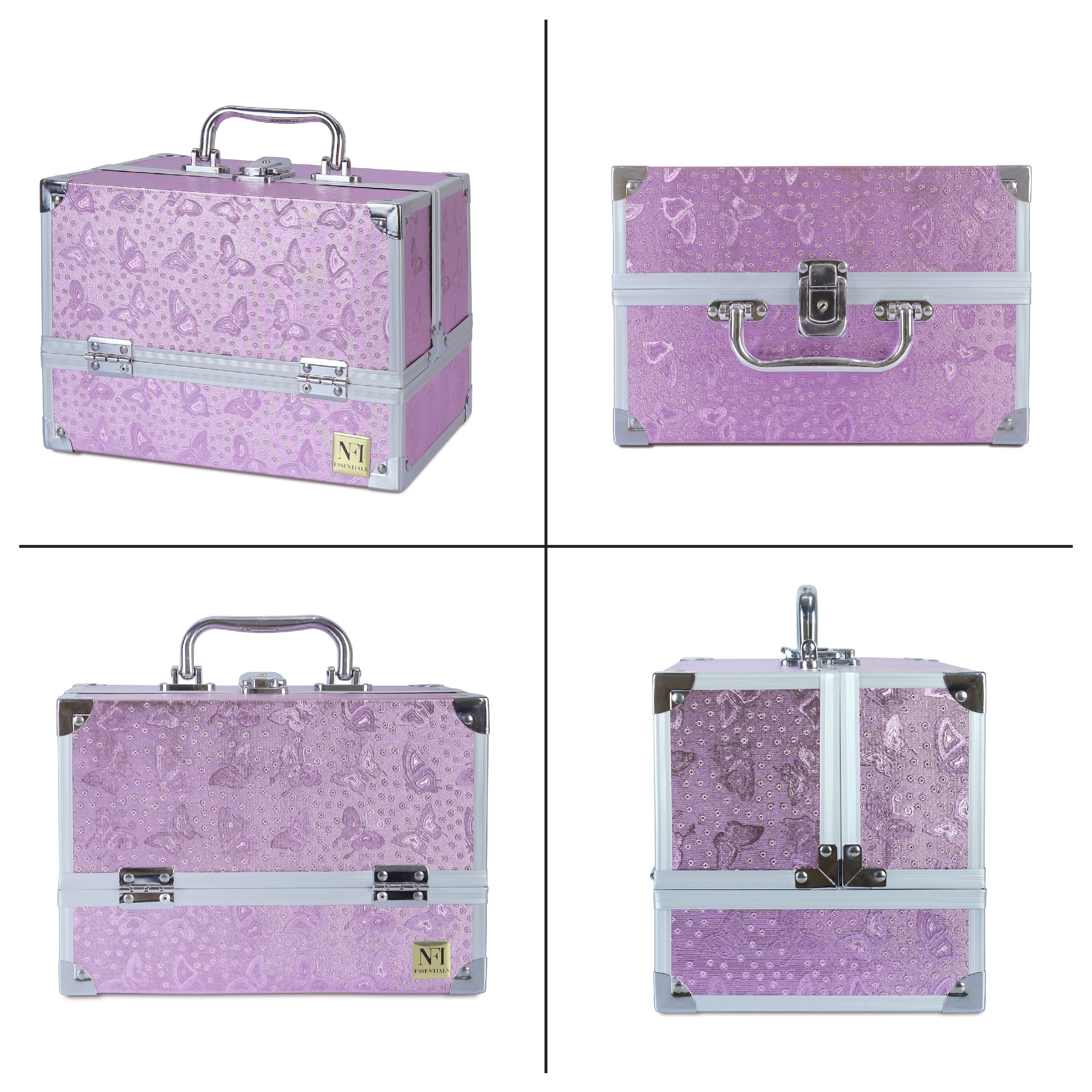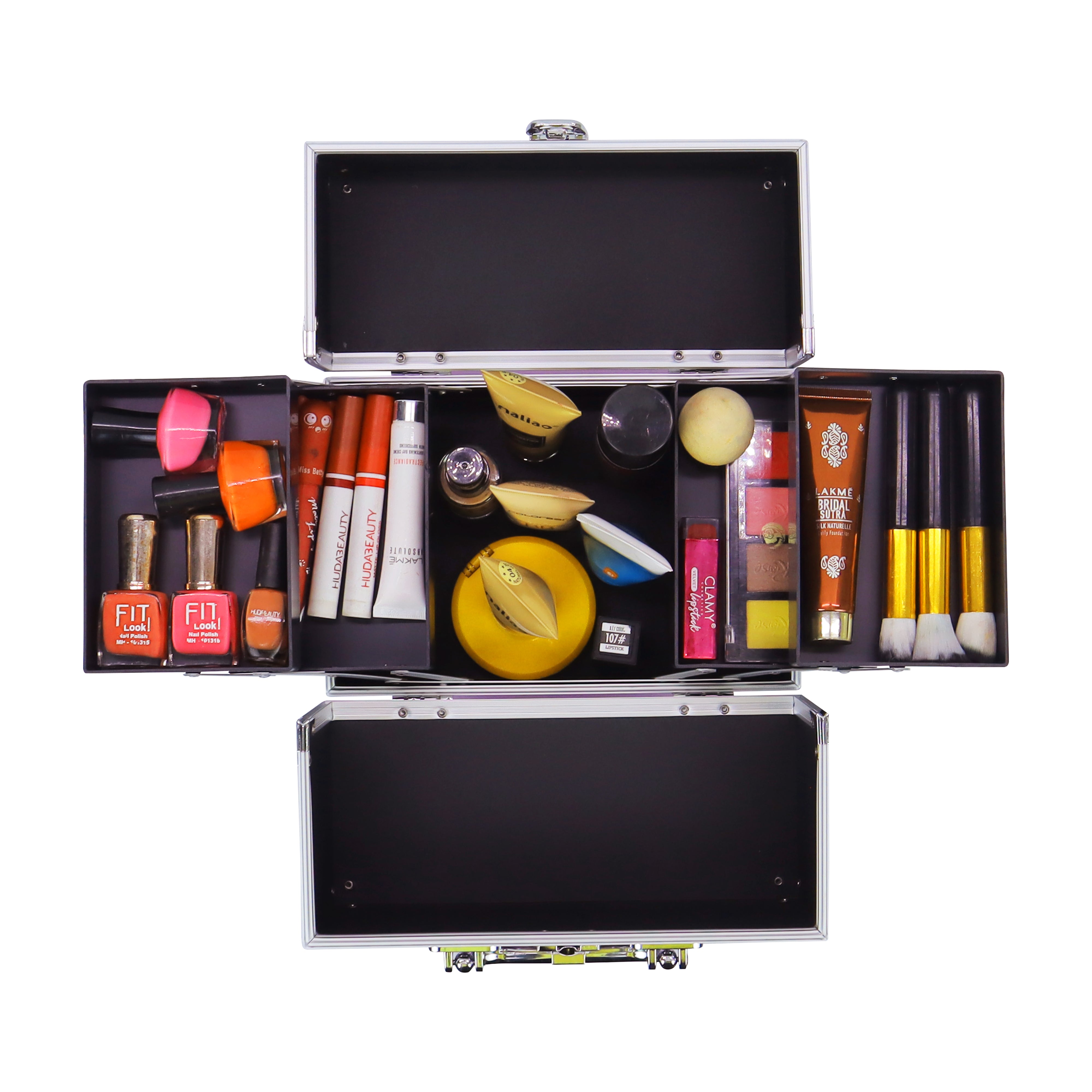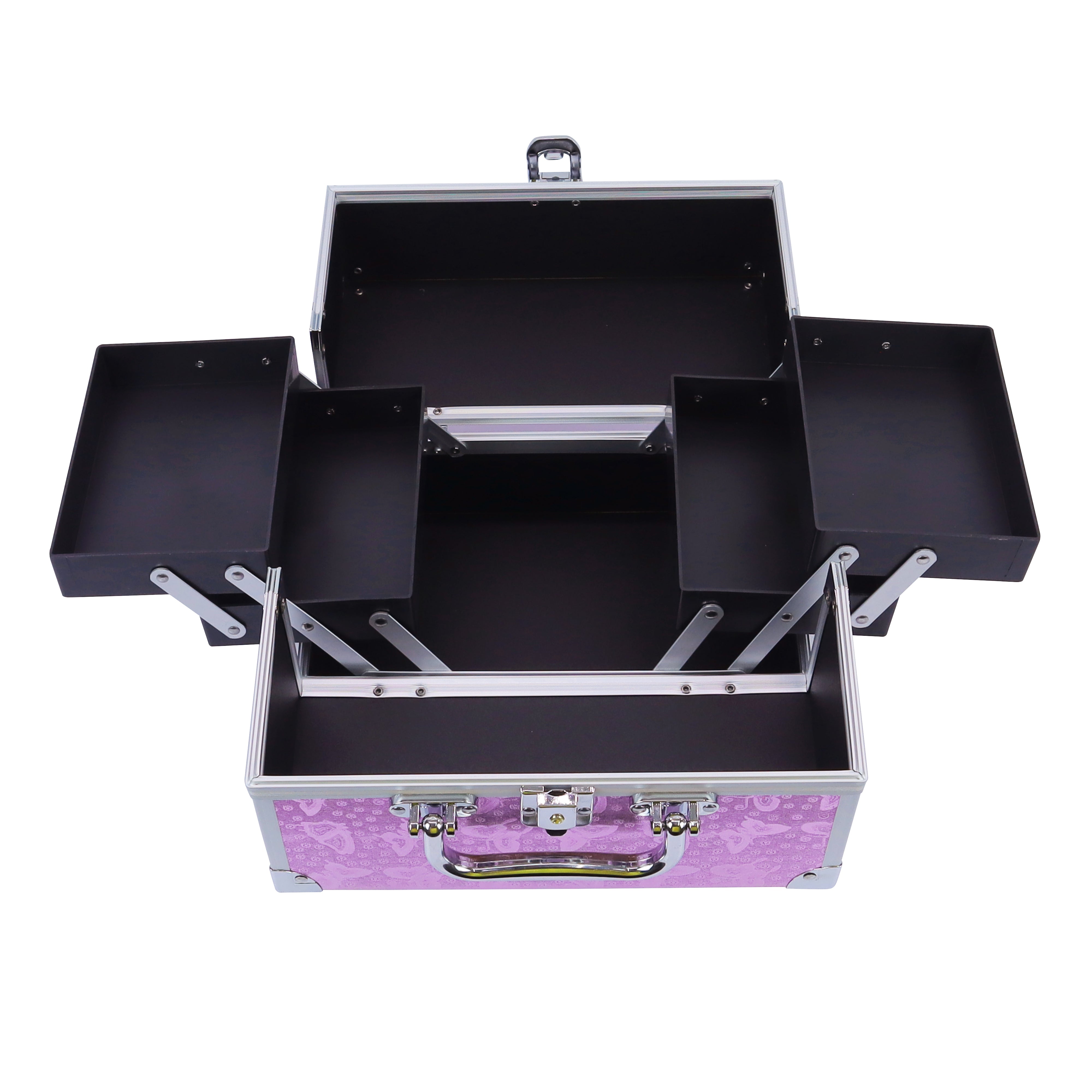 Material: Aluminum Cardboard Plastic-Lightweight, waterproof, durable, easy to clean. Extra-large cosmetic bag, elegant and stylish; Double-layer design, Lock closure. Large beauty case is the perfect way to transport, store and protect your treasured makeup and cosmetic collection. Organize your daily cosmetics, skin-care products, makeup and brushes, eye shadow, lipstick, liquids, etc. Occasion: Ideal for travel, holiday, business trip, outdoor activities, etc. it's very convenient to carry with you at any time. A stunning vanity case crafted beautifully for salon professionals and perfect for home use. The stylish handle also ensures easy transportation with its lightweight nature.
