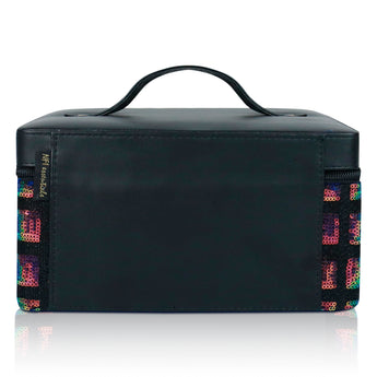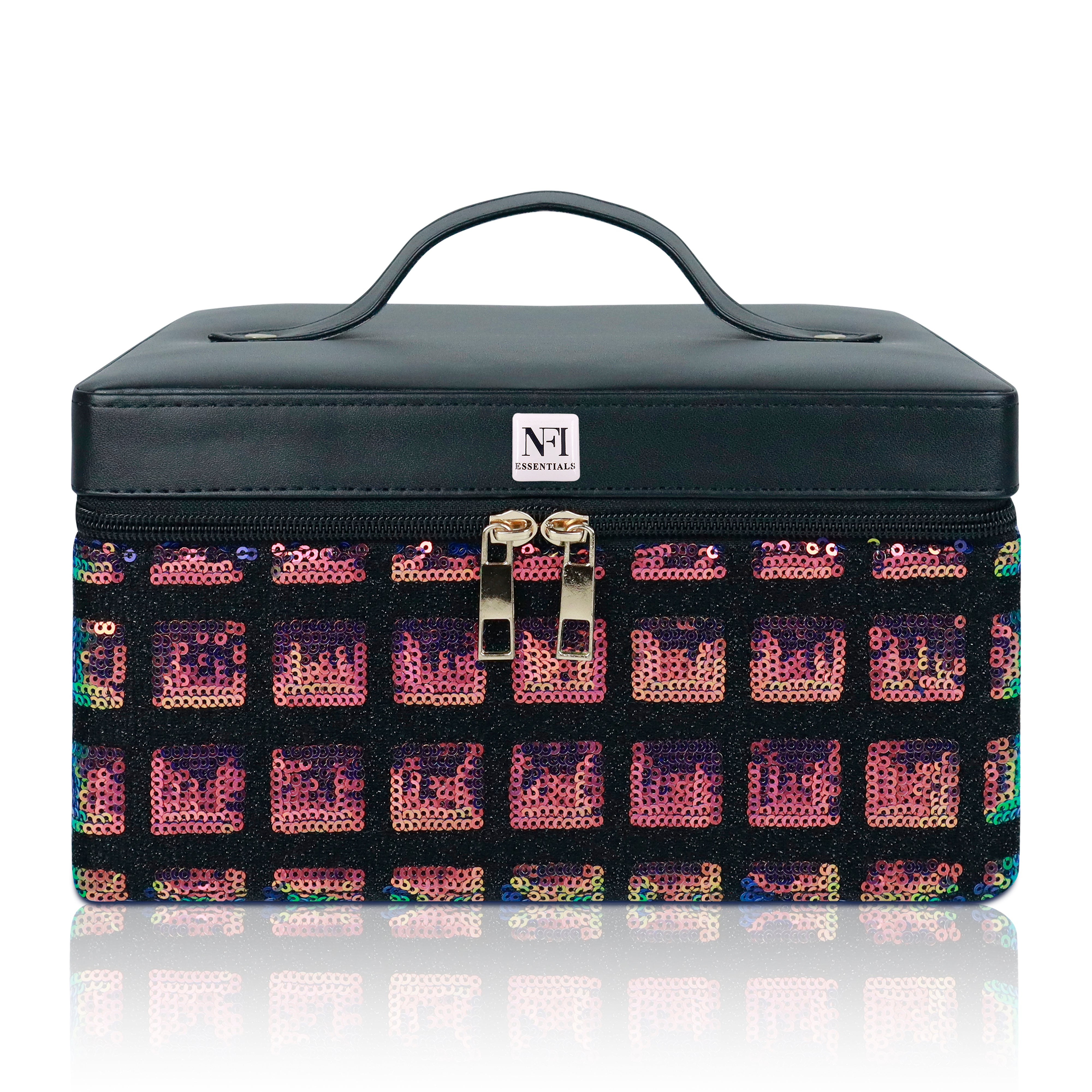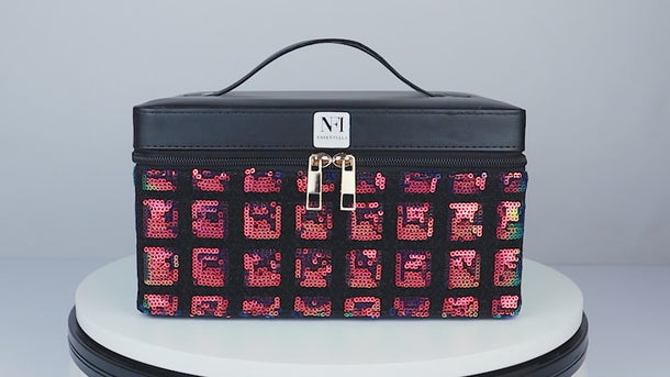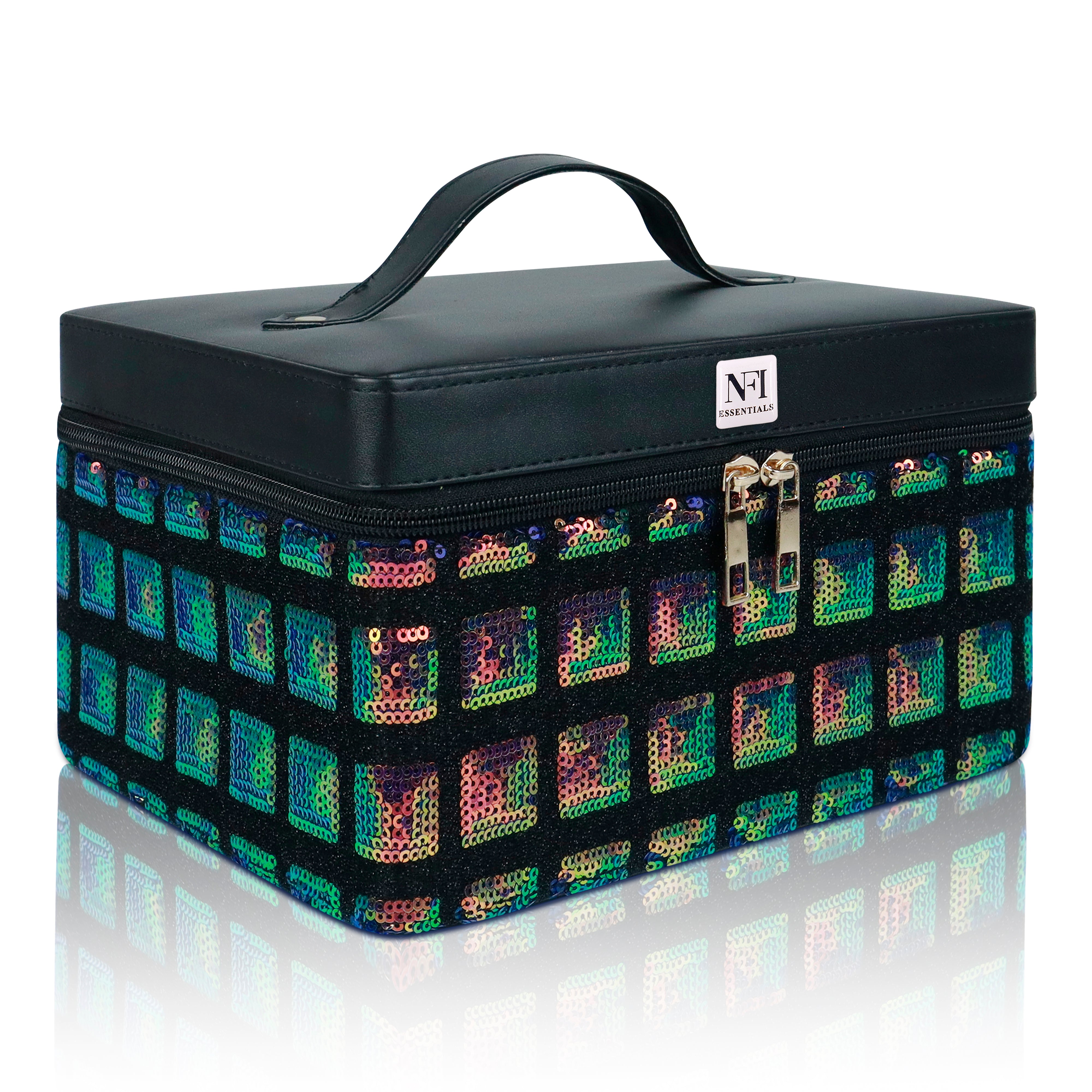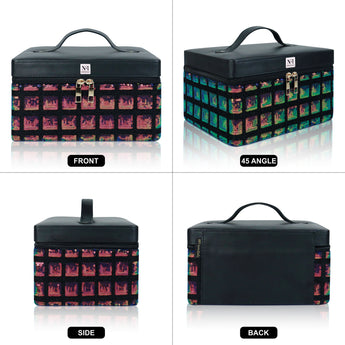 The made of Polyurethane material and Inner Velvet material Lightweight, water resistant durable easy to clean Jewellery Organizer Box, Extra-large Makeup Organizer Box elegant and stylish Double-layer deign, 1 Mirror for easily makeup. This makeup bag can not only store beauty essentials such as foundation, nail polish, eye shadow, lipsticks, mascaras, eyeliner, powder, concealer, essential oil, etc. storing all your cosmetic. great professional makeup case, perfect for makeup artist or beginner. Portable Design With a Hand Strap, You can keep your makeup tools is neat and tidy. Special design, you can adjust as needed. You Can Take It Anytime and Anywhere, a Perfect Accessory For Your travel. Great Gifts for Valentine's Day, Mother's Day, Birthdays, Wedding, Anniversary, Diwali, Christmasor Just Share Them With Your Family And Friends. You Can Also Take It With You Whenever You Travel, Which Will Bring You More Convenience.