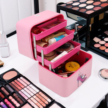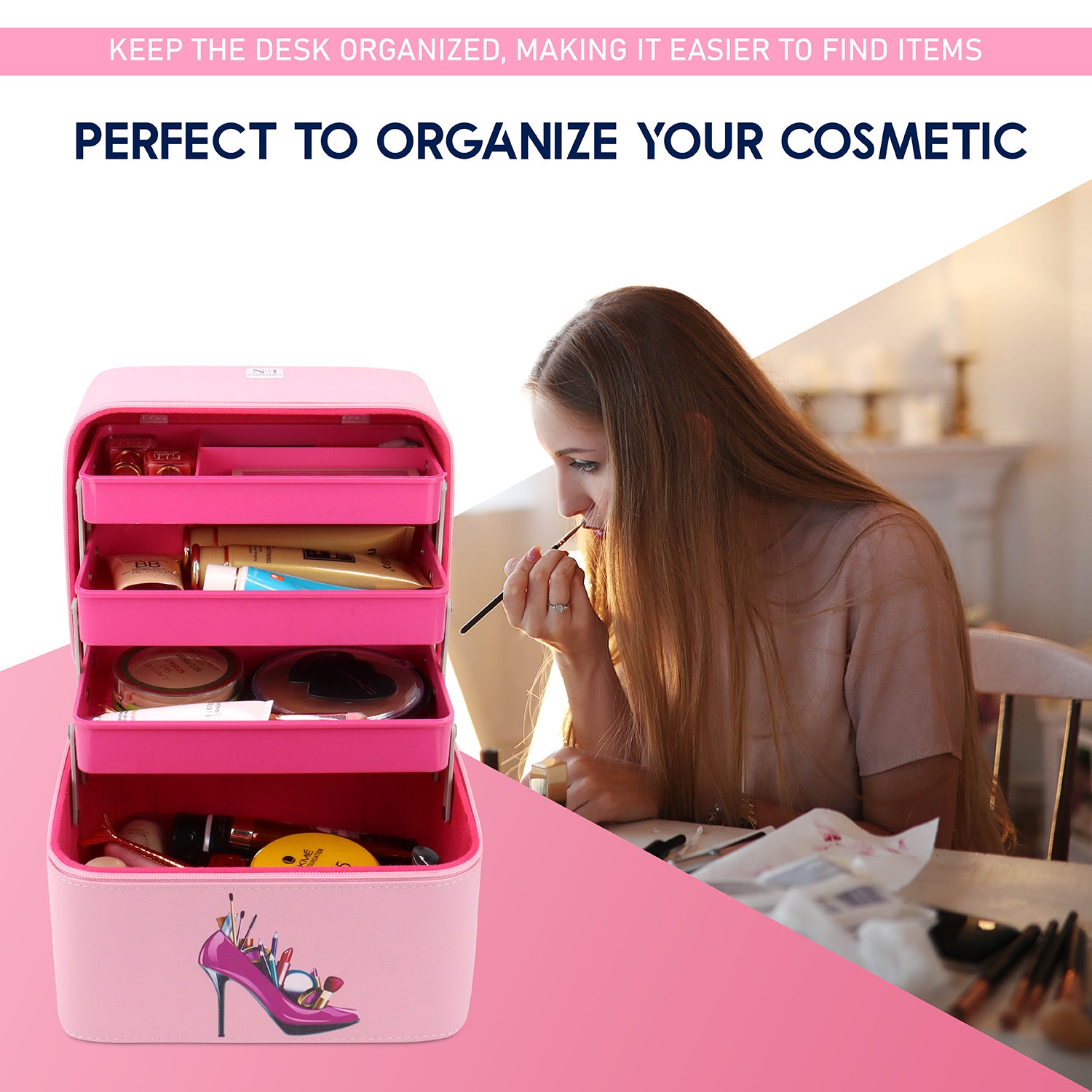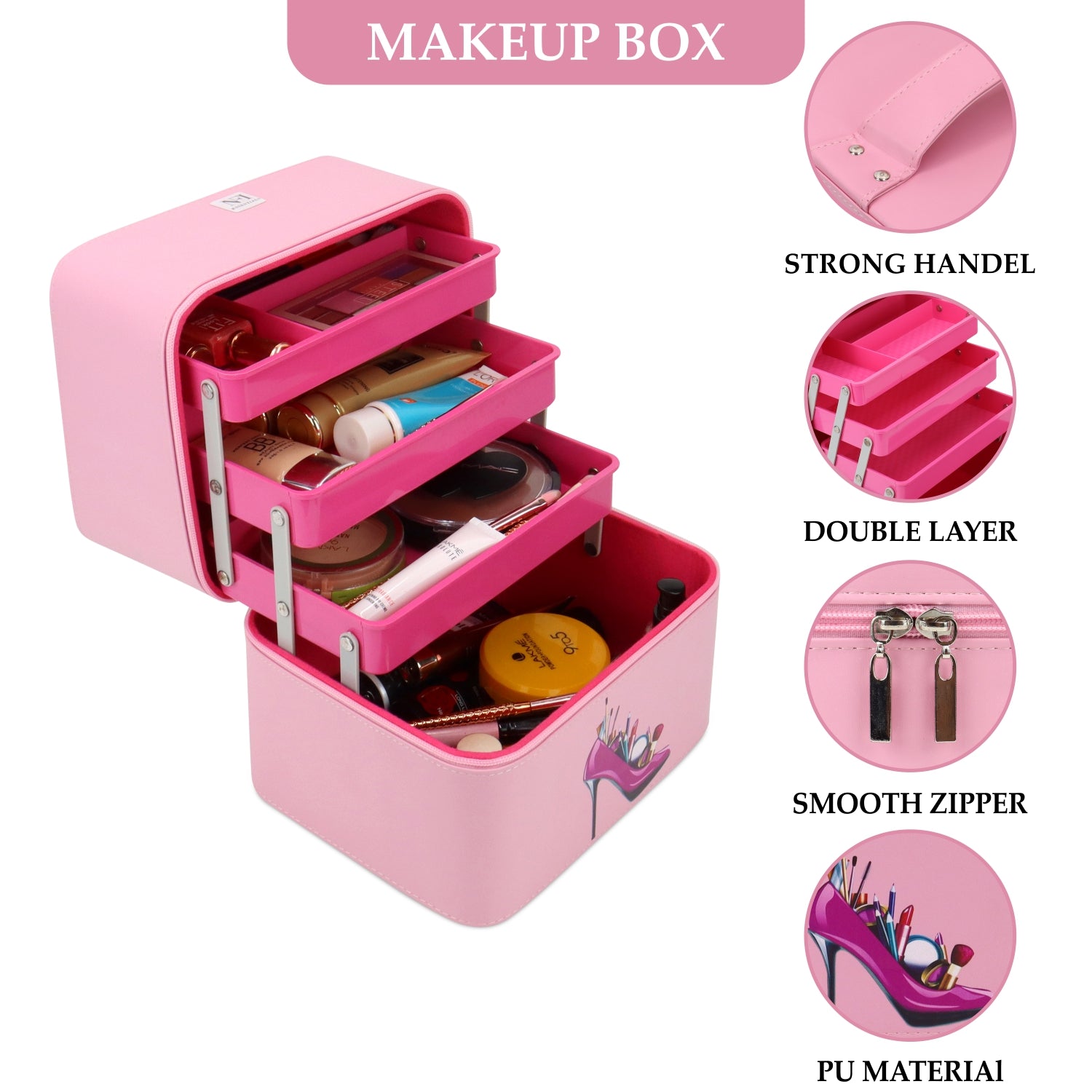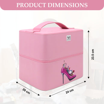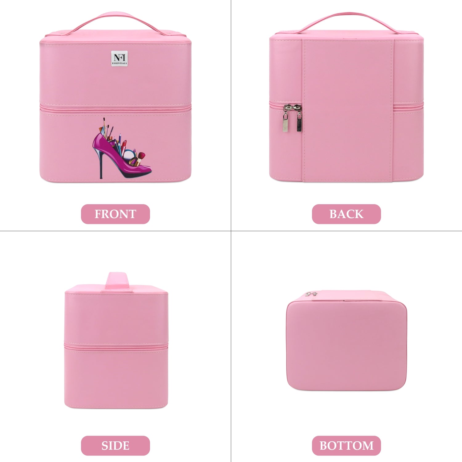 - Extra-large cosmetic bag, elegant and stylish; Double-layer deign, Zip closure. Large beauty case is the perfect way to transport, store and protect your treasured makeup and cosmetic collection.