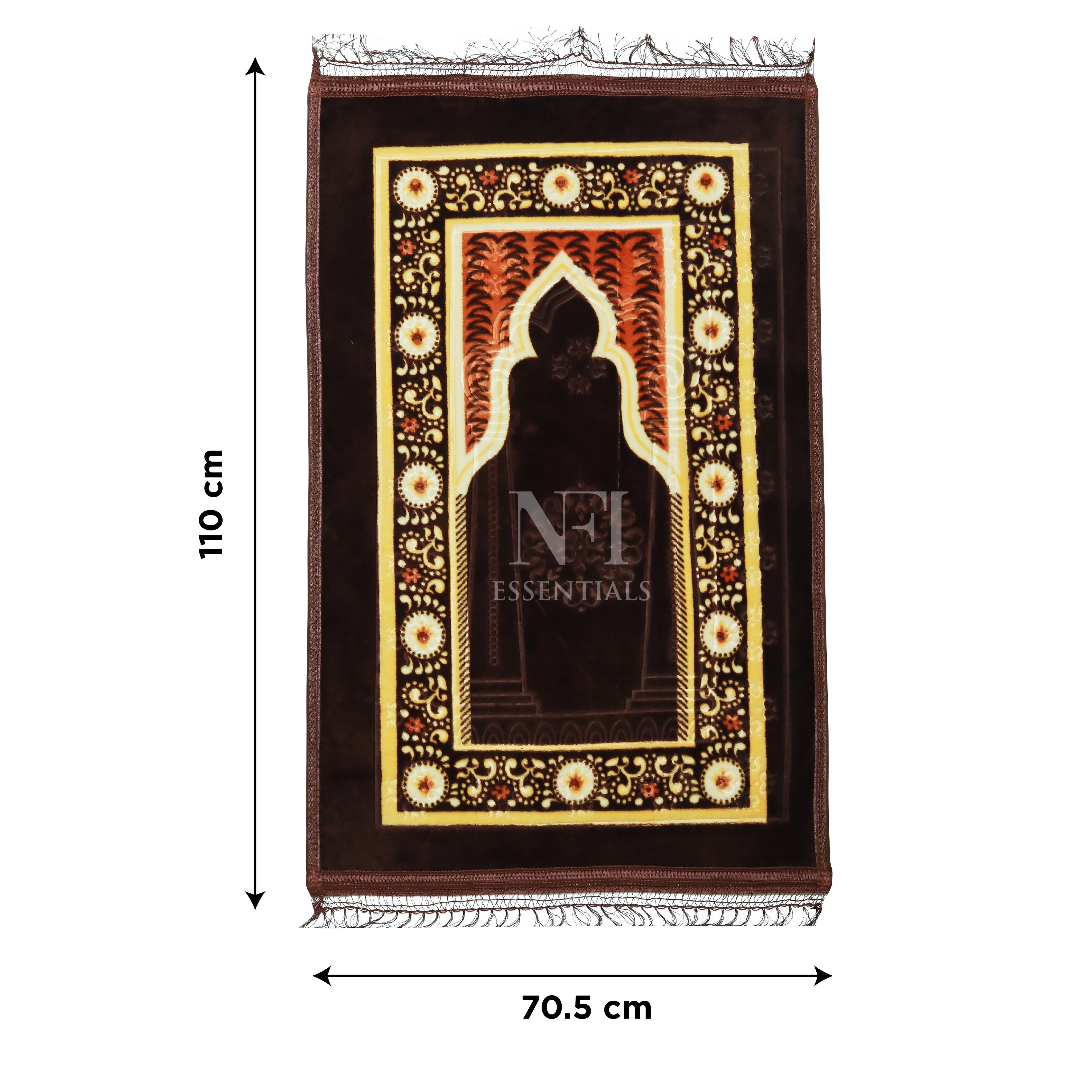 NFI essentials Velvet Musallah Janamaz Prayer Mat, 70cm x 110cm Anti-Slip Soft Musala, Multipurpose Rug Travel Namaz Sajdah Mat, Rectangular Islamic Mats for Muslims Salah