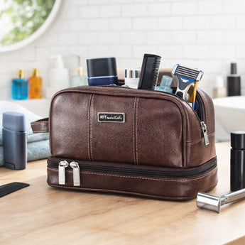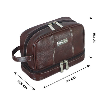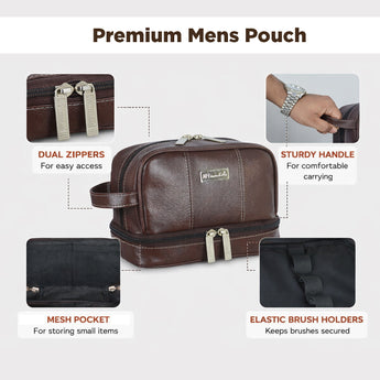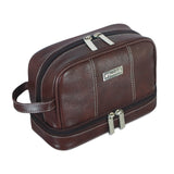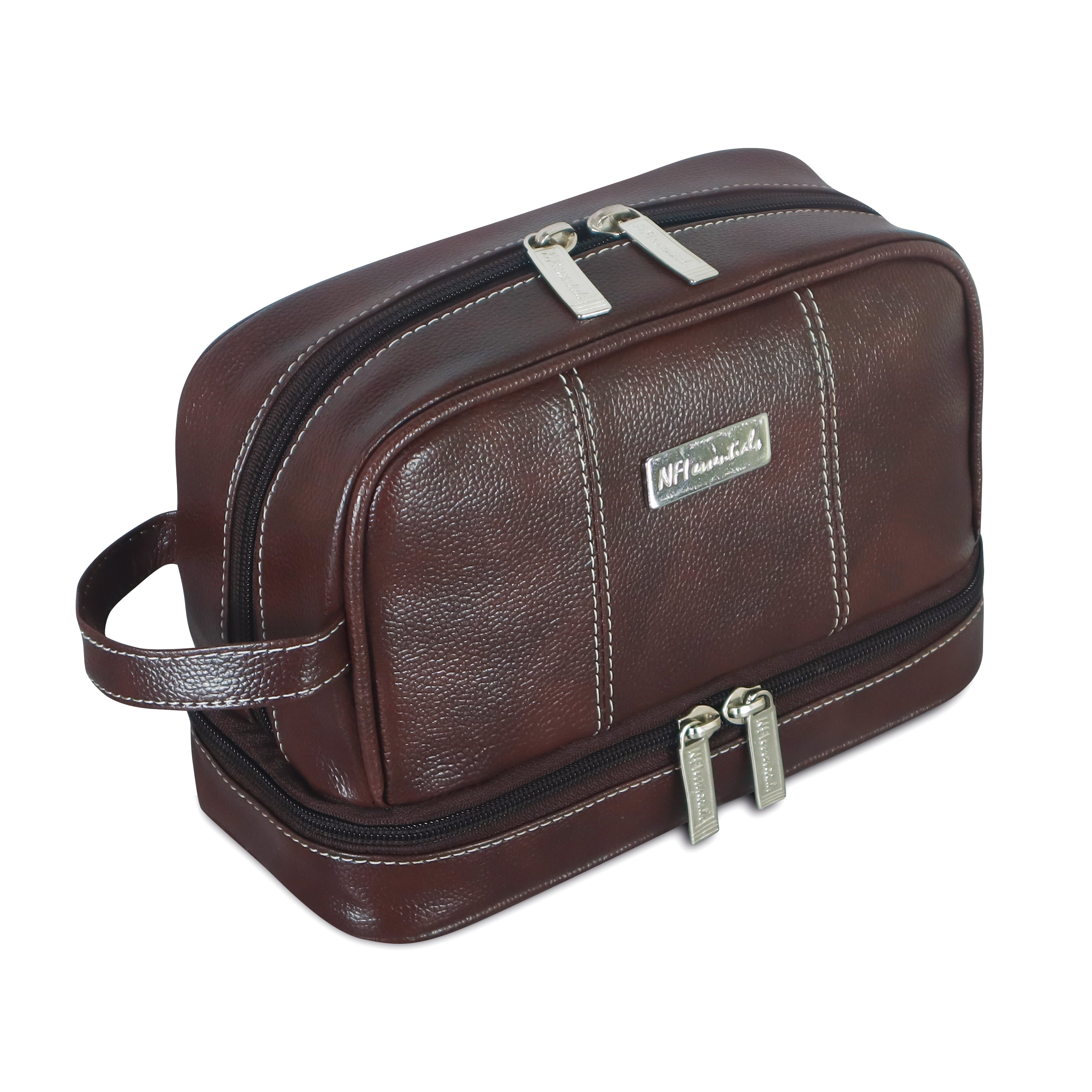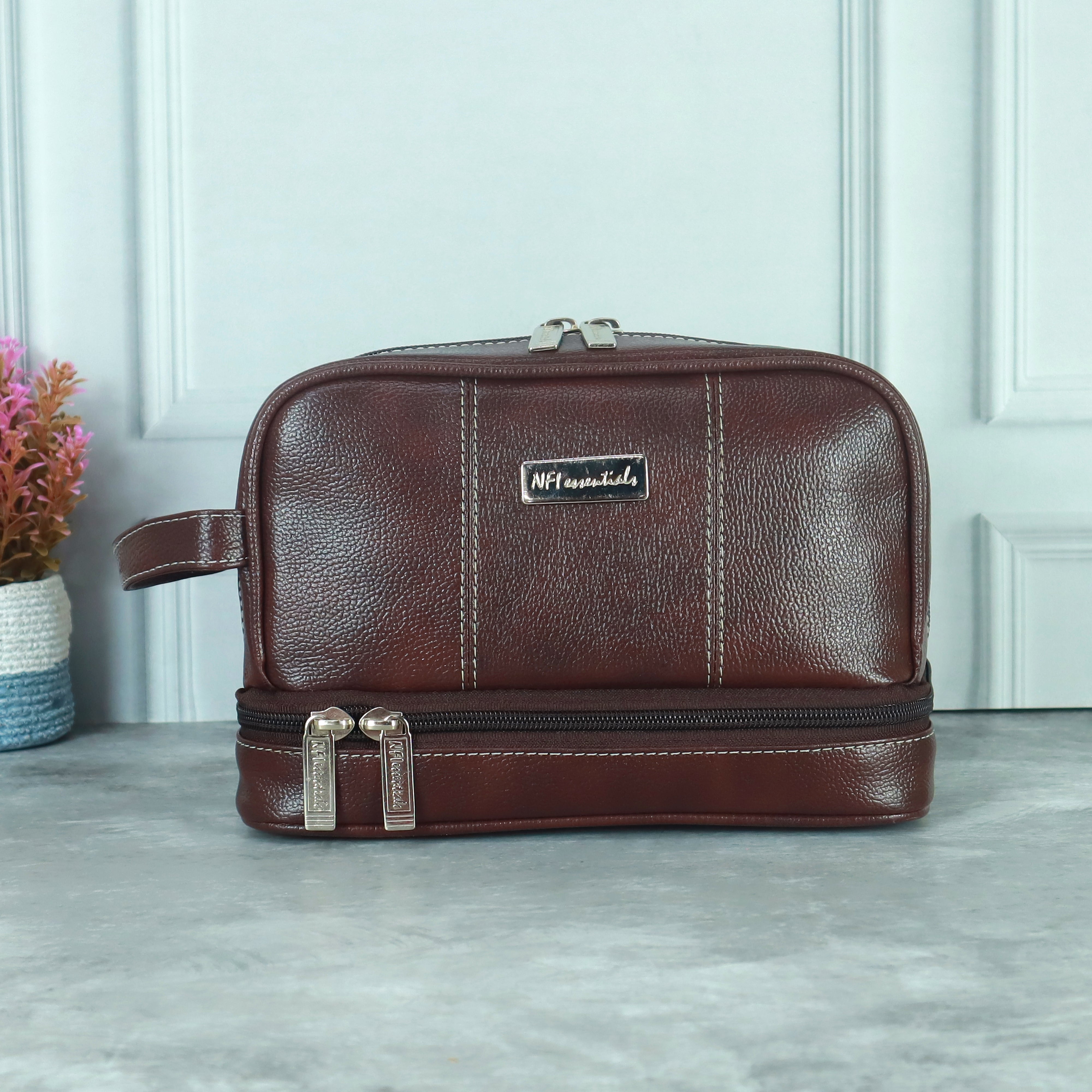 NFI essentials Leather Toiletry Bag for Men & Women Shaving Kit Bag Travel Organizer Pouch With Dual Compartments