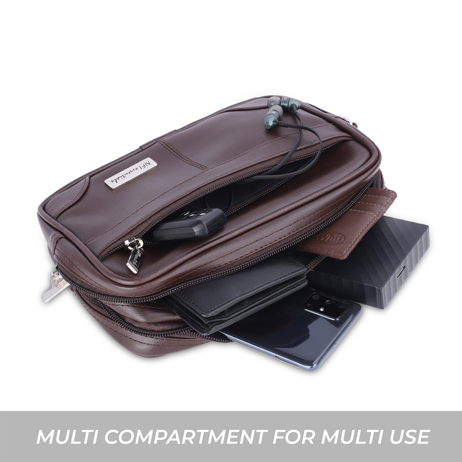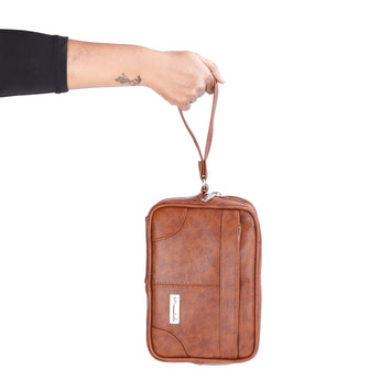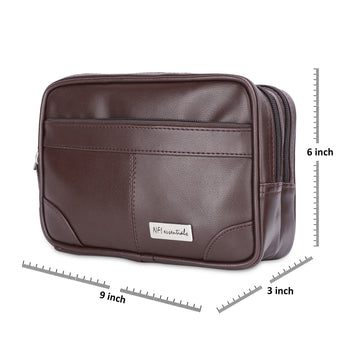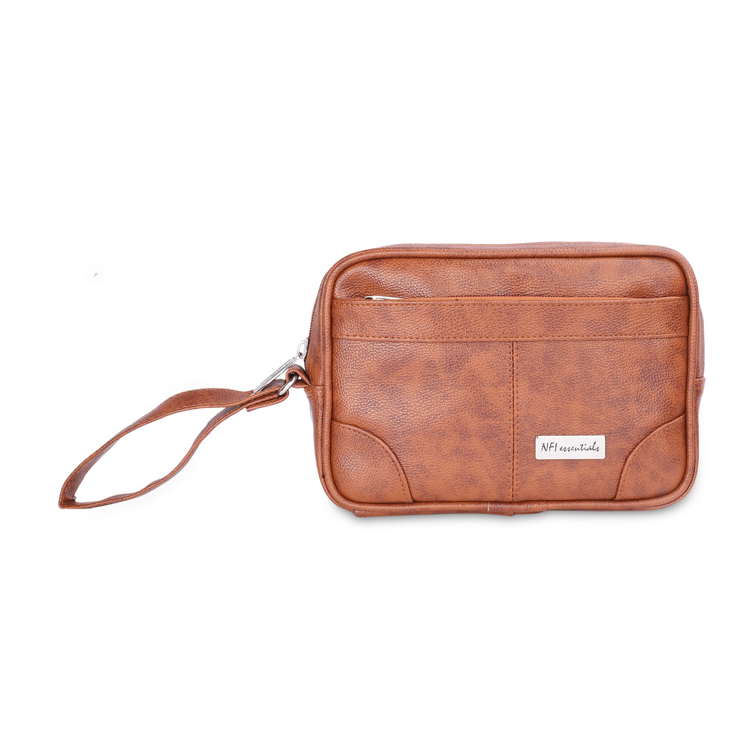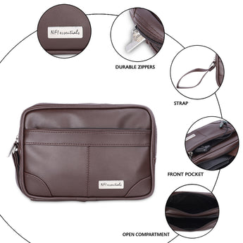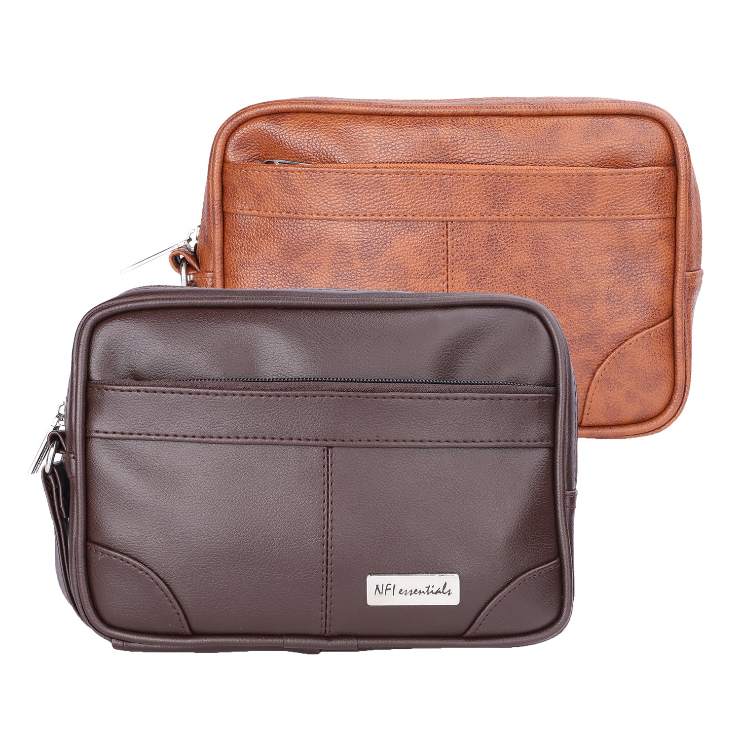 NFI essentials Leatherette Travel Wrist Pouch for Mens - 2 Piece Set (Brown & Tan)