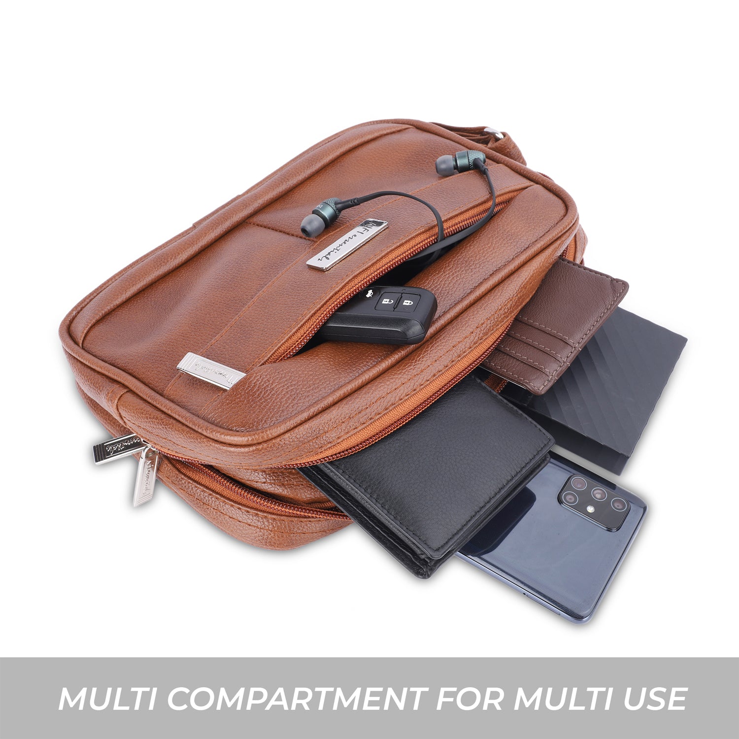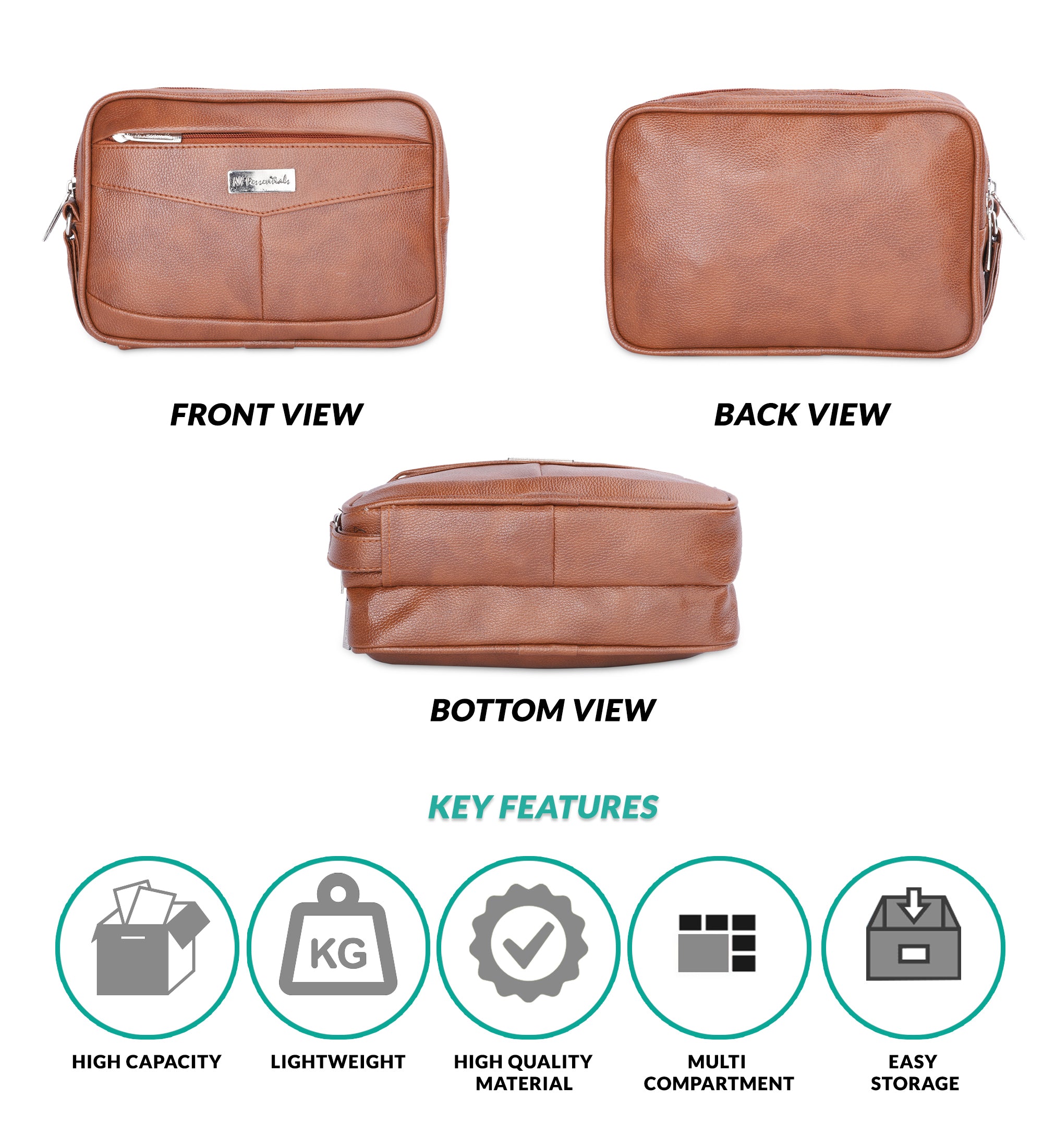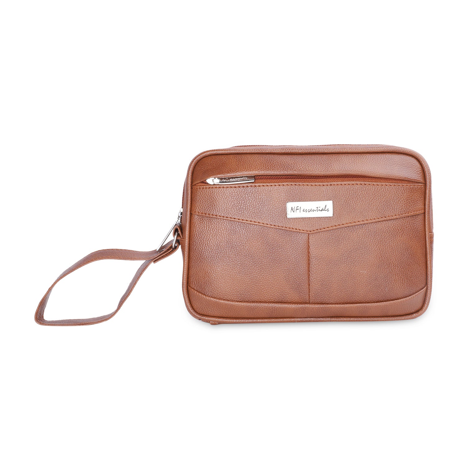 NFI essentials Leatherette Travel Wrist Pouch for Mens (Tan)