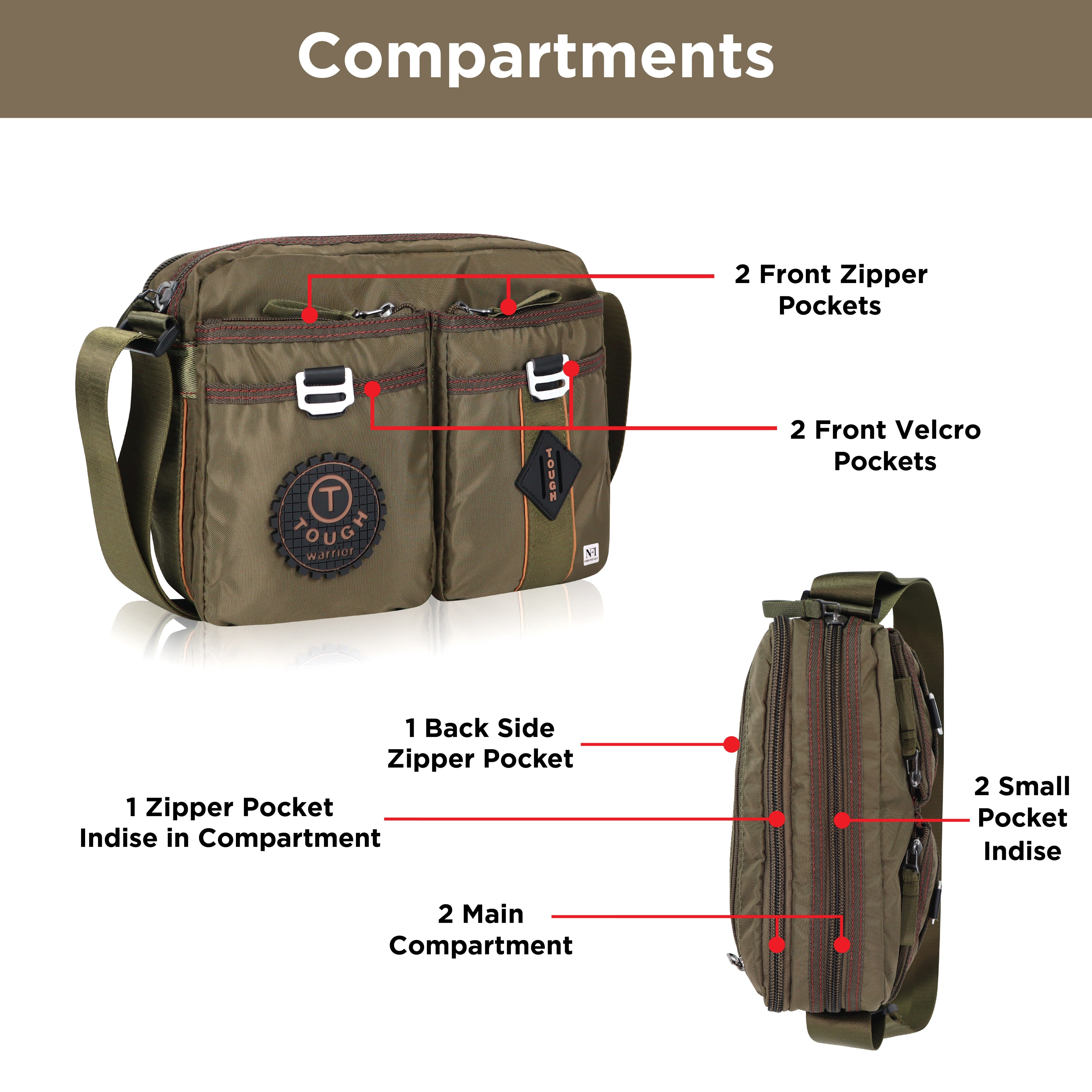 This sling bag's is made of high-quality polyester material, and to increase its durability and make it scratch- and water-resistant.Your everyday storage needs are fully satisfied by this sling bag, which is also the ideal addition for keeping essentials like a phone, wallet, iPad, keys, glasses, water bottle, notebooks, etc. secure and handy.Sling Bag has 5 main Compartments (2 inside pocket in middle compartment) to keep your belongings organized.The front 2 compartments are stationery pocket, perfect for storing small items such as key,pen,headphone,power bank,pocket notebook and glasses.The main pocket has a velvet compartment that provides excellent protection for your valuables and electronic such as phone and iPad.The back compartment which is less likely to be found by thieves and easy to store and remove items, is ideal for busy people or those on the go.