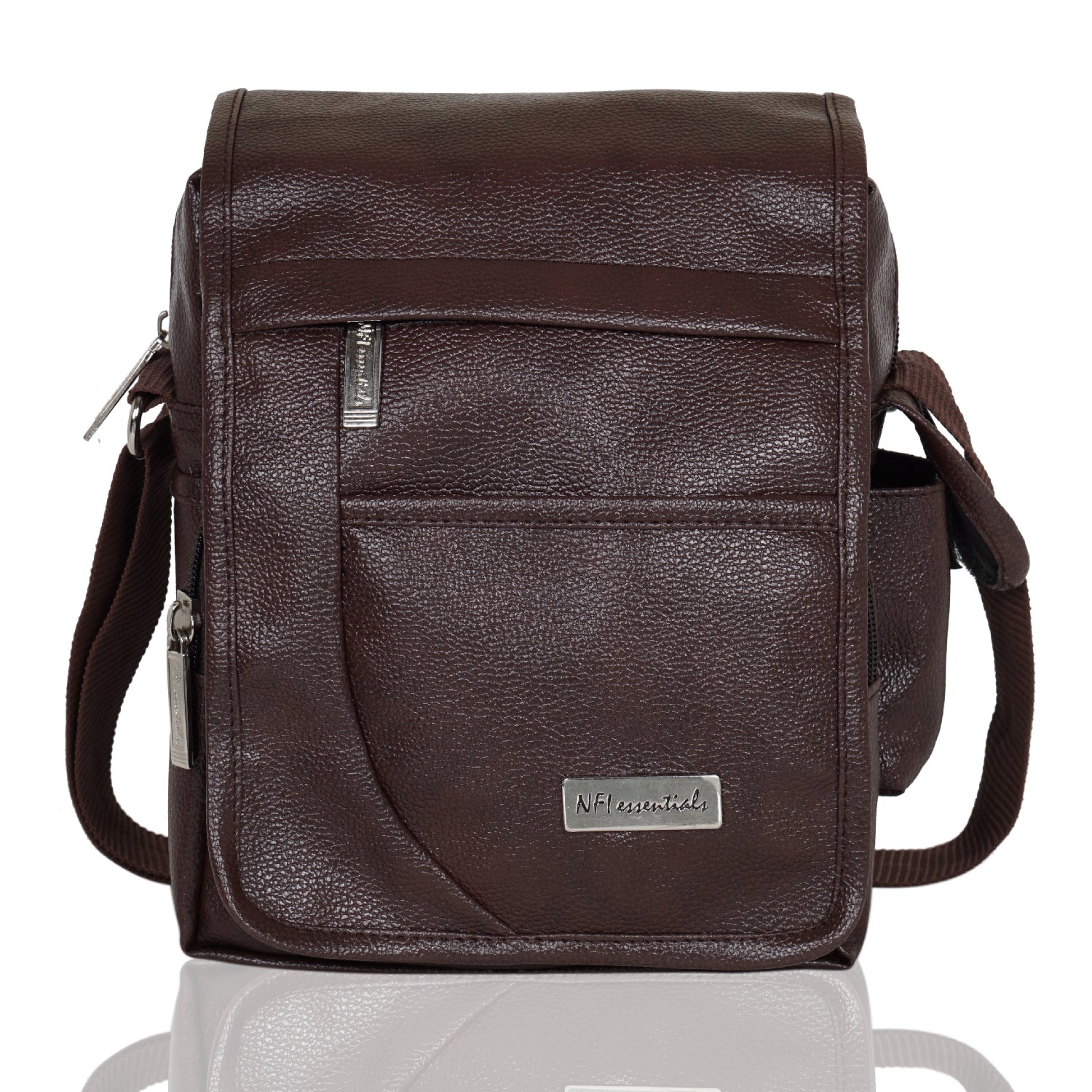 NFI essentials Men's Leather Side Bag Stylish Cross Body Travel Office Business Messenger Bag for Men & Women (Dark Brown)