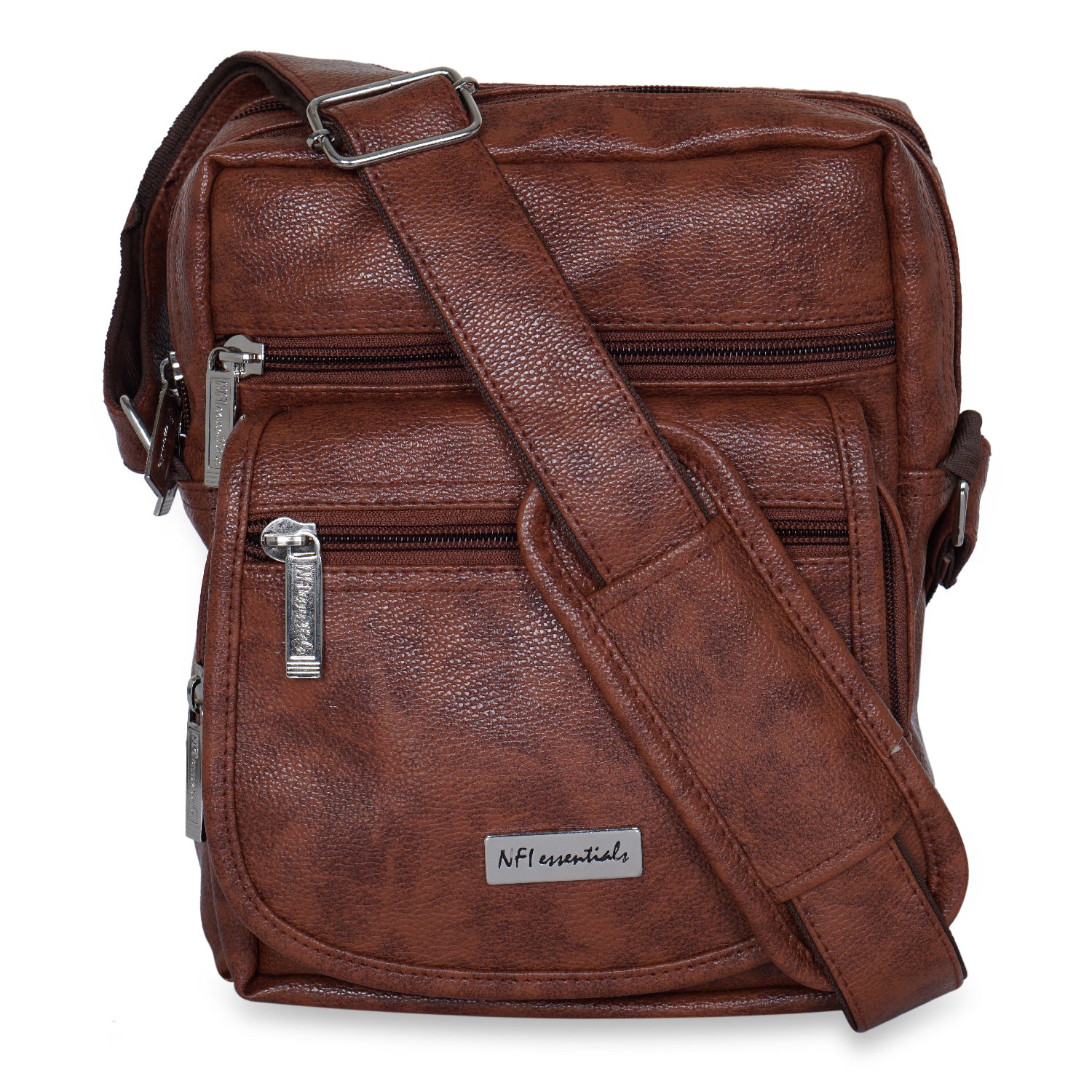NFI essentials Men's Leather Side Bag Stylish Cross Body Travel Office Business Messenger Bag for Men & Women (Tan)