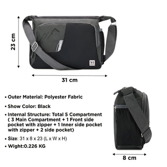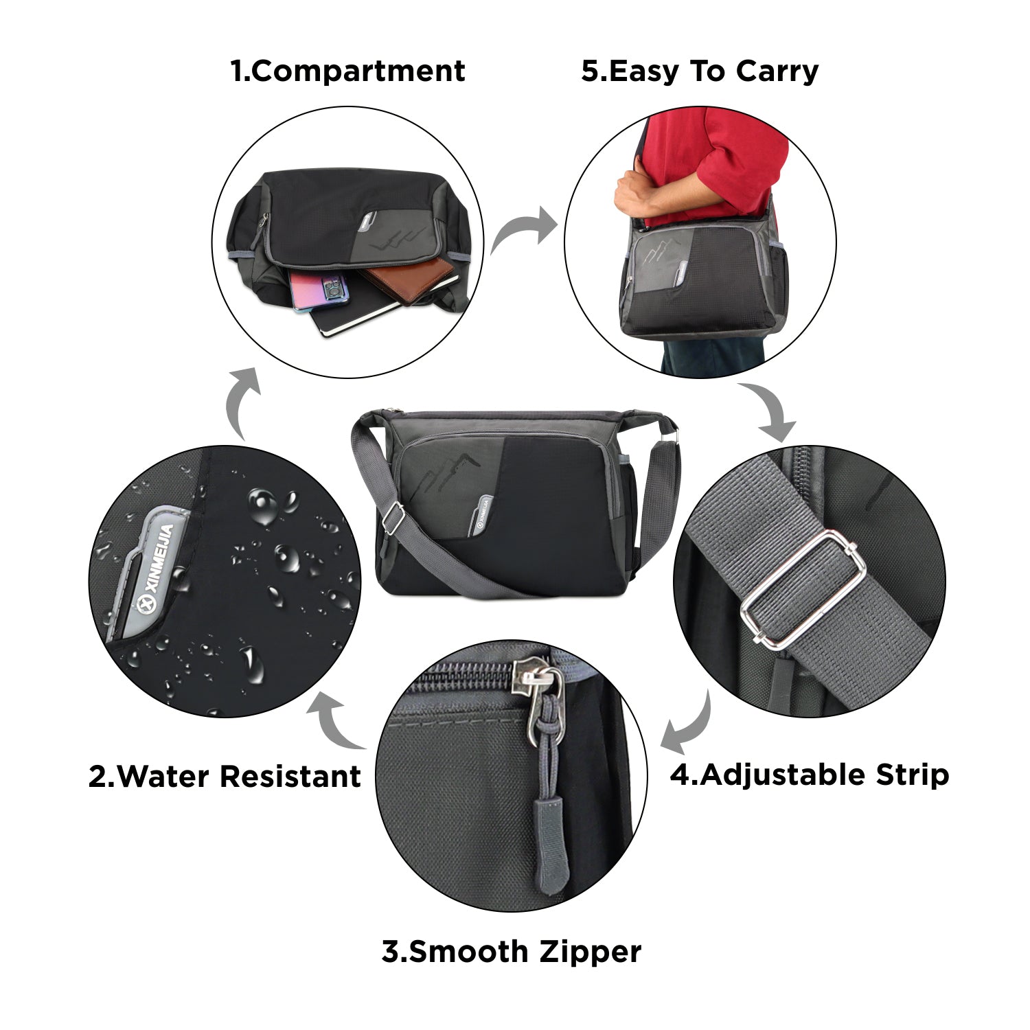 100% Water Resistant Durable Fabric. <br><br>Casual & Stylish light weight Sling Bag for men to carry Mobile phone, other small gadget, tickets, passport, wallet and important documents handy and secure. <br><br>Made of Premium Hi-grade PU coated Polyester fabric and it comes in cool color combinations to pick one which suits your personality. <br><br>It has 3 sections in the Bag to keep all your essential items in organized way. <br><br>One main compartment for mobile phone or other gadget which needs extra protection, Front zipper pocket is for Easy access handy Items like wallet, tickets, passport, phone etc, also you can keep your valuable documents securely in backside zip pocket. <br><br>The shoulder strap is long enough to use the bag as a cross shoulder bag and Strong zipper gives its premium look.
