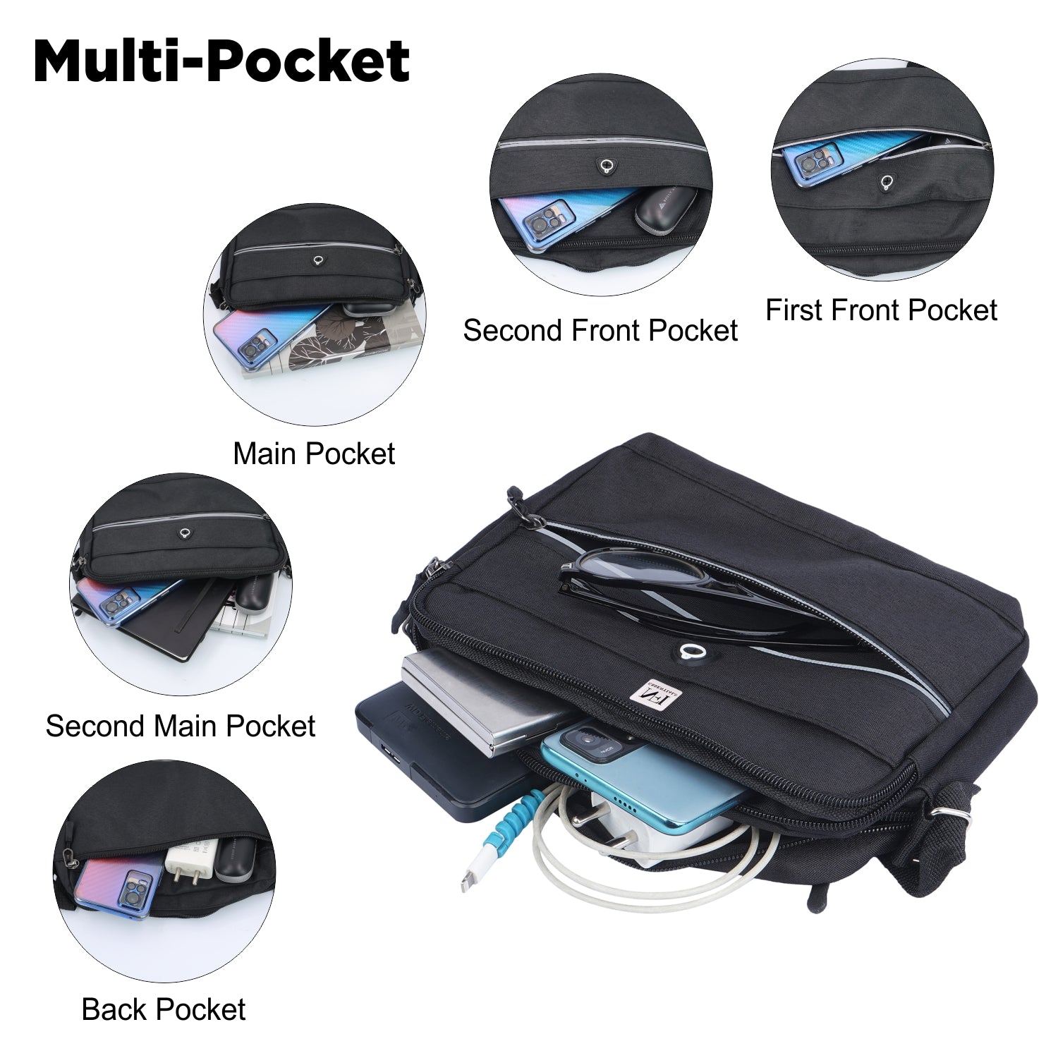 Water Resistant Durable polyester Fabric. <br><br>Casual & Stylish light weight Sling Bag for men to carry Mobile phone, other small gadget, tickets, passport, wallet and important documents handy and secure. <br><br>Made of Good Polyester coated fabric and it comes in cool color combinations to pick one which suits your personality. <br><br>It has 5 sections in the Bag to keep all your essential items in organized way. <br><br>5 compartment for mobile phone or other gadget which needs extra protection, Front zipper pocket is for Easy access handy Items like wallet, tickets, passport, phone etc, also you can keep your valuable documents securely in backside zip pocket. <br><br>The shoulder strap is long enough to use the bag as a cross shoulder bag and Strong zipper gives its premium look.