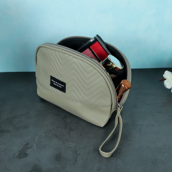 NFI essentials Makeup Pouch for Women, Cosmetic Bag, Semi-circle Stylish PU Pouch for Makeup Accessories, Travel Pouch Vanity Kit Organiser Toiletry Bag Make up Pouch for Girls