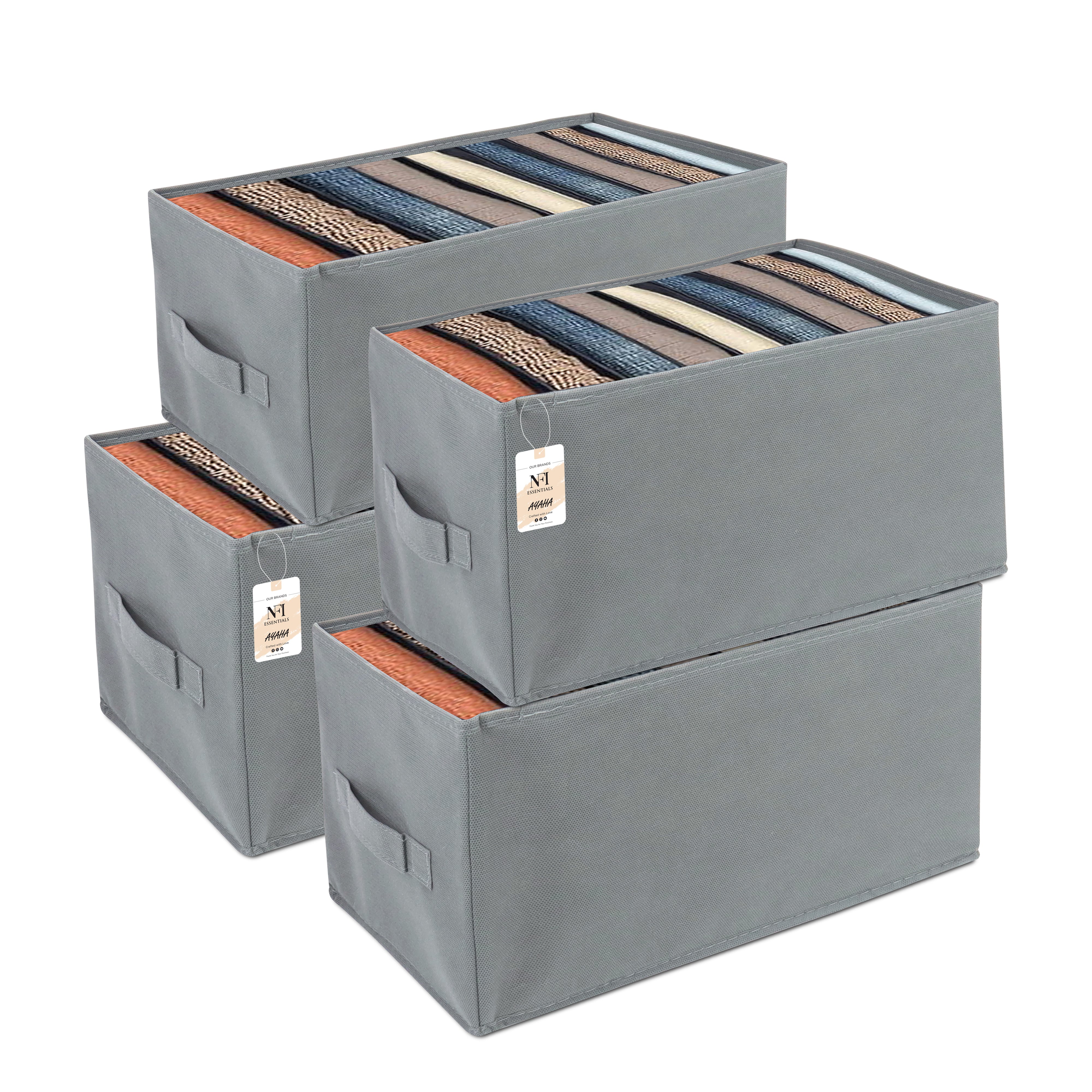 NFI essentials 7 Grids Pack of 4 Wardrobe Clothes Organizer, Foldable Closet Drawer Organizer, Storage Box for Jeans, Shirts, Socks, Scarves, T-shirts, Pants, Underwear
