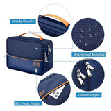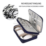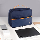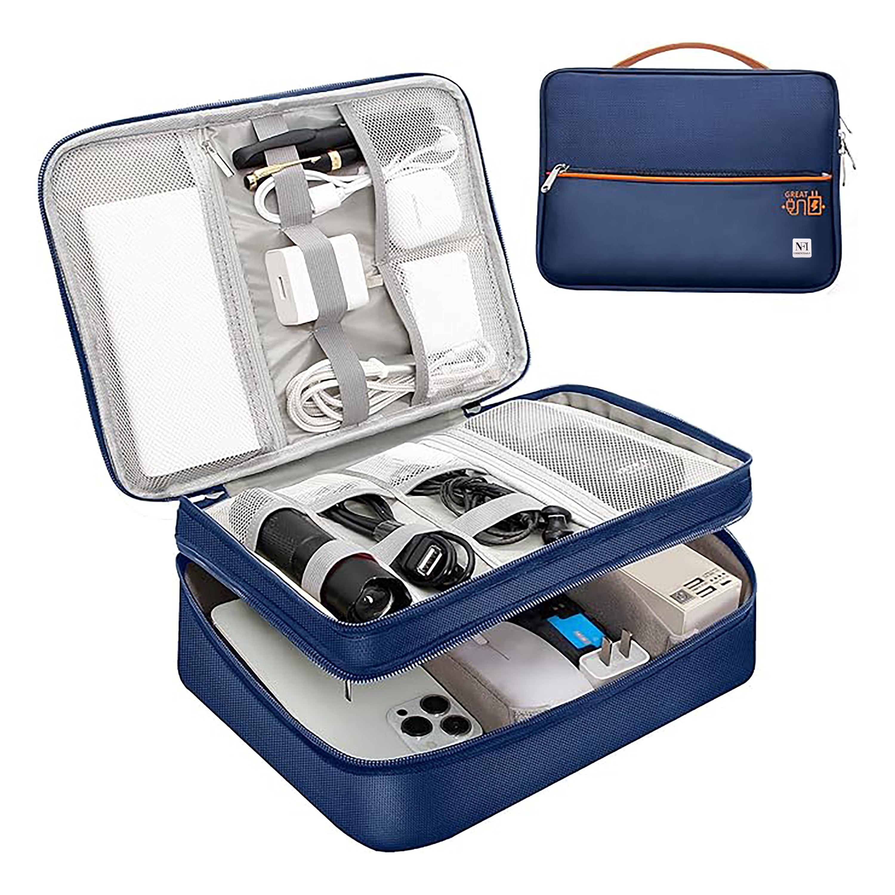 This Electronics Travel Organizer is perfect for travel and office working. This tech pouch helps to keep your essential cable, charger, etc organized, much better than dig into your bag all the time. This large electronic organizer case design with many mesh pockets and elastic loops which can store cellphone, hard drive, SD card, cables, earphone, connector adapter, iPad, kindle etc. The portable and lightweight cable organizer pouch is a perfect choice when going on holiday, business trip, travel, office, school. Great gift for yourself also a nice share with families and friends. Well organized your electronic accessories and cords without searching all over the place. This travel cord organizer has padded design for better protecting your electronic accessories from scratches, dust and accidental dropping well. Keep your cables & electronic accessories tangle free, no more mess. It will be your best companion for business travel or daily use. Not only protect for your electronic accessories, the travel storage bag is also suitable to store pens, pills and makeup. The leather front pocket provides a easier way to store your Kindle, Cellphone or Power Bank. The cable organizer bag is designed with double metal zippers, allow easy access to your essentials, sturdy and smooth for long time use. The leather handle design allows you to carry the cable bag anywhere. Perfect for Traveling. Made of cation fabric which is waterproof, it can protect your electronic accessories against spills, rains.
