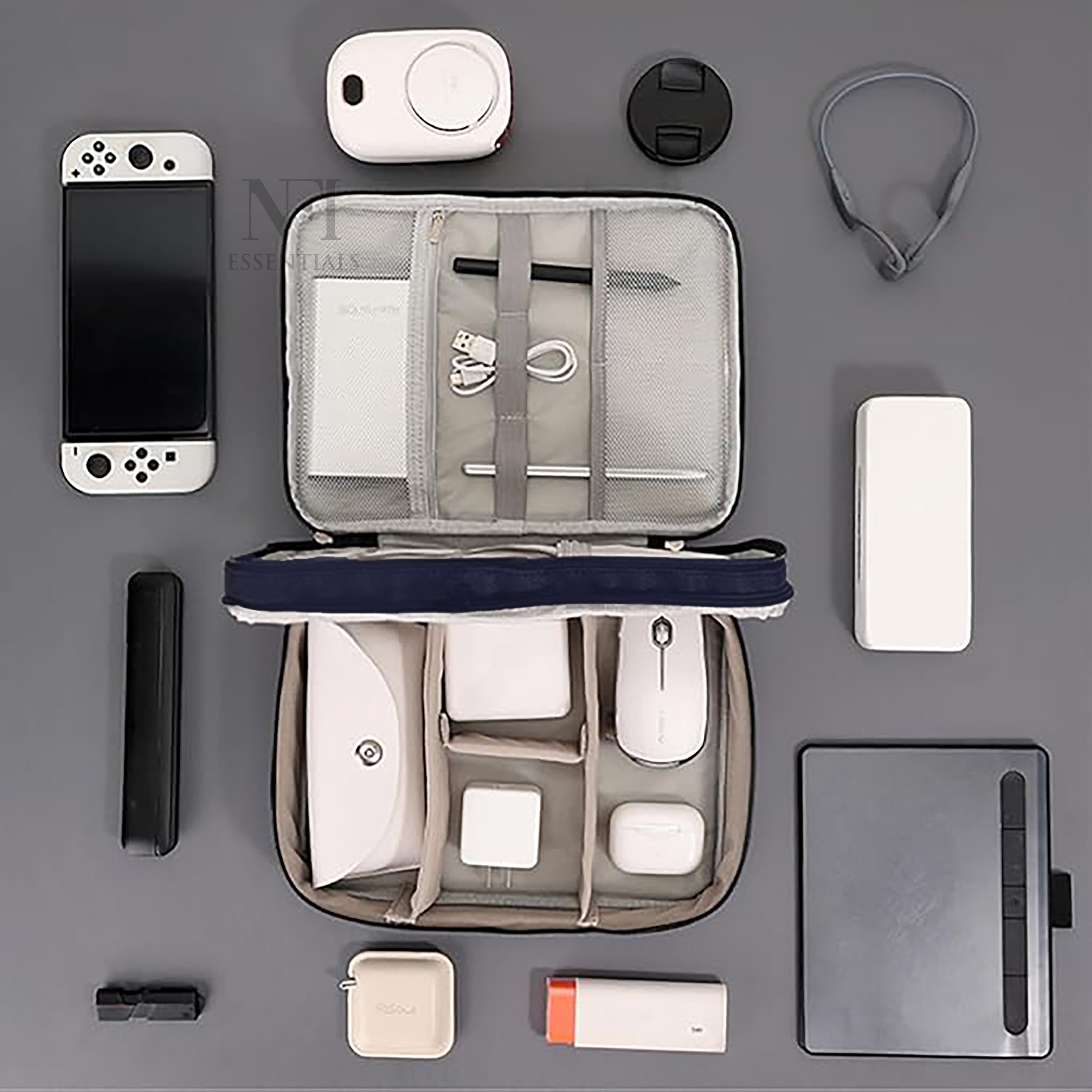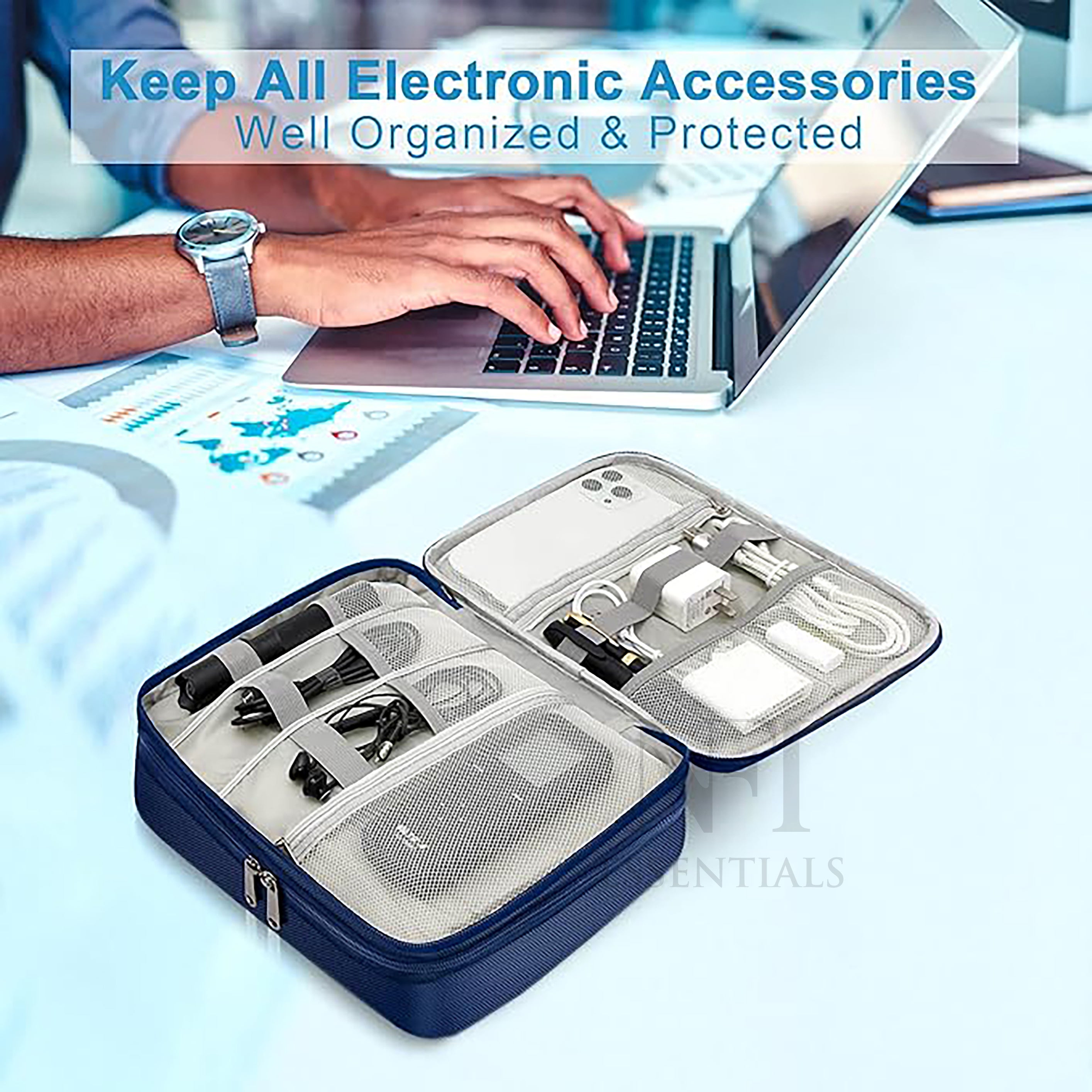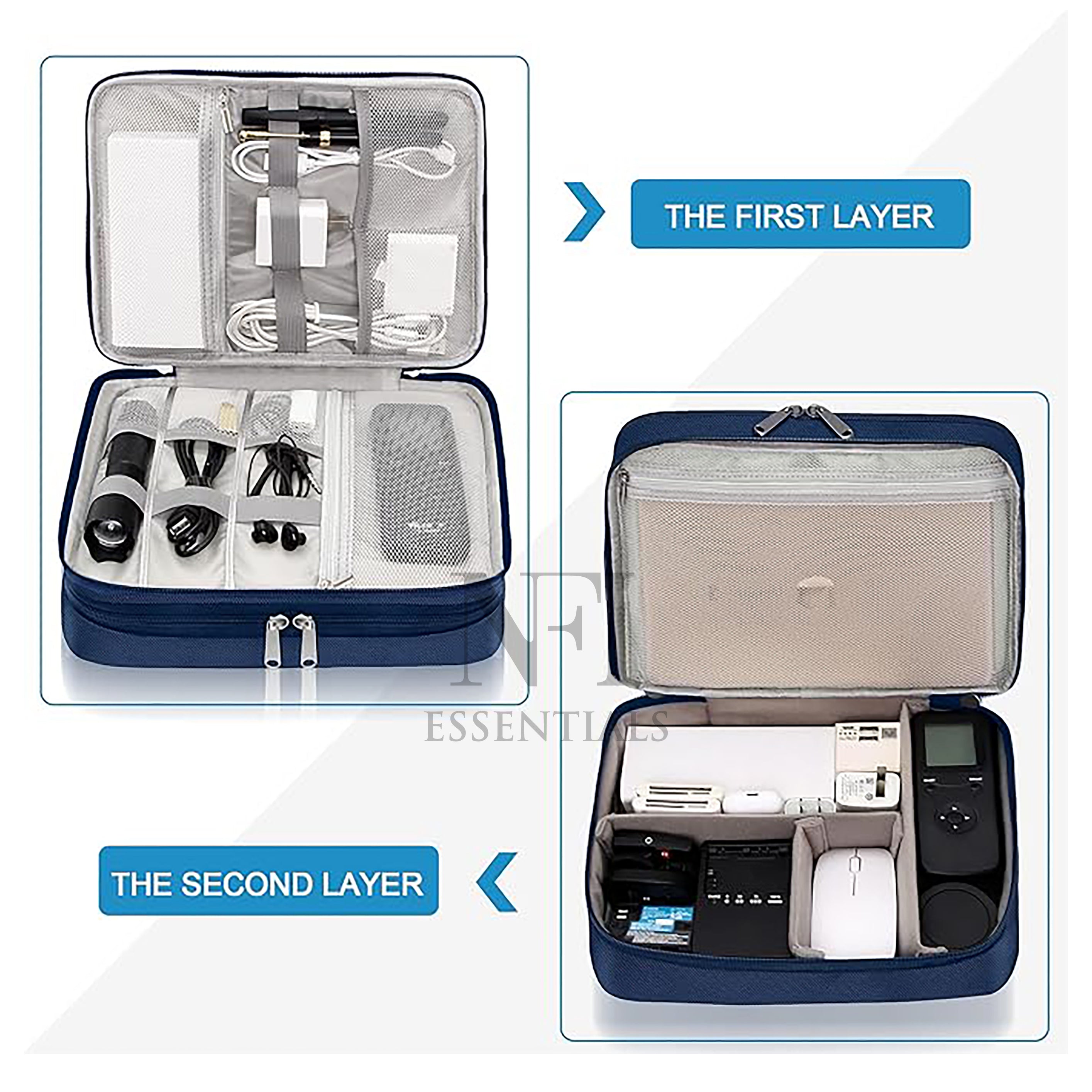 NFI essentials Electronics Accessories Organizer Bag, Portable Double Layer Travel Gadget Case Bag for USB Cables, Gadget, Power Bank, Battery, Charger, Hard Disk, Plug & more