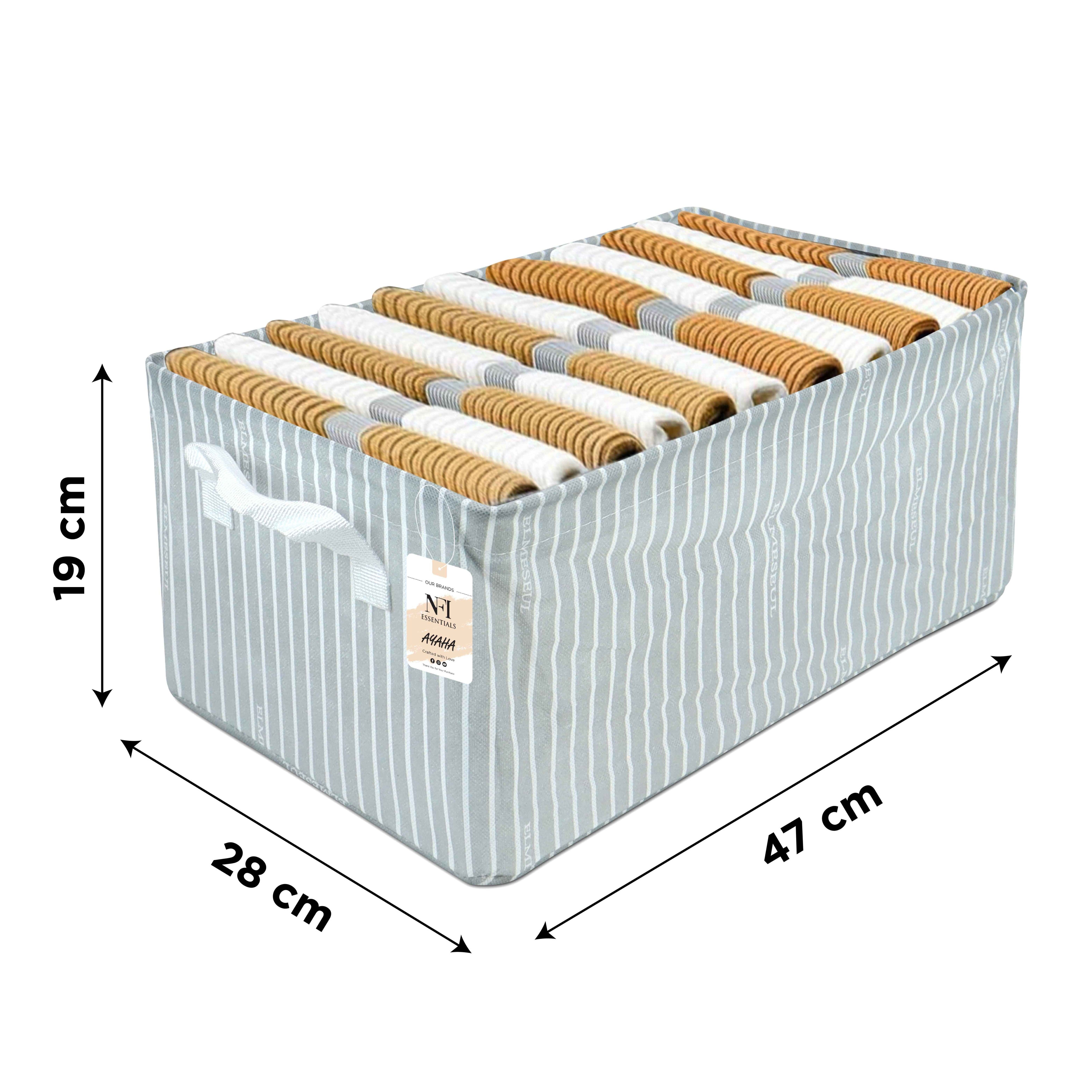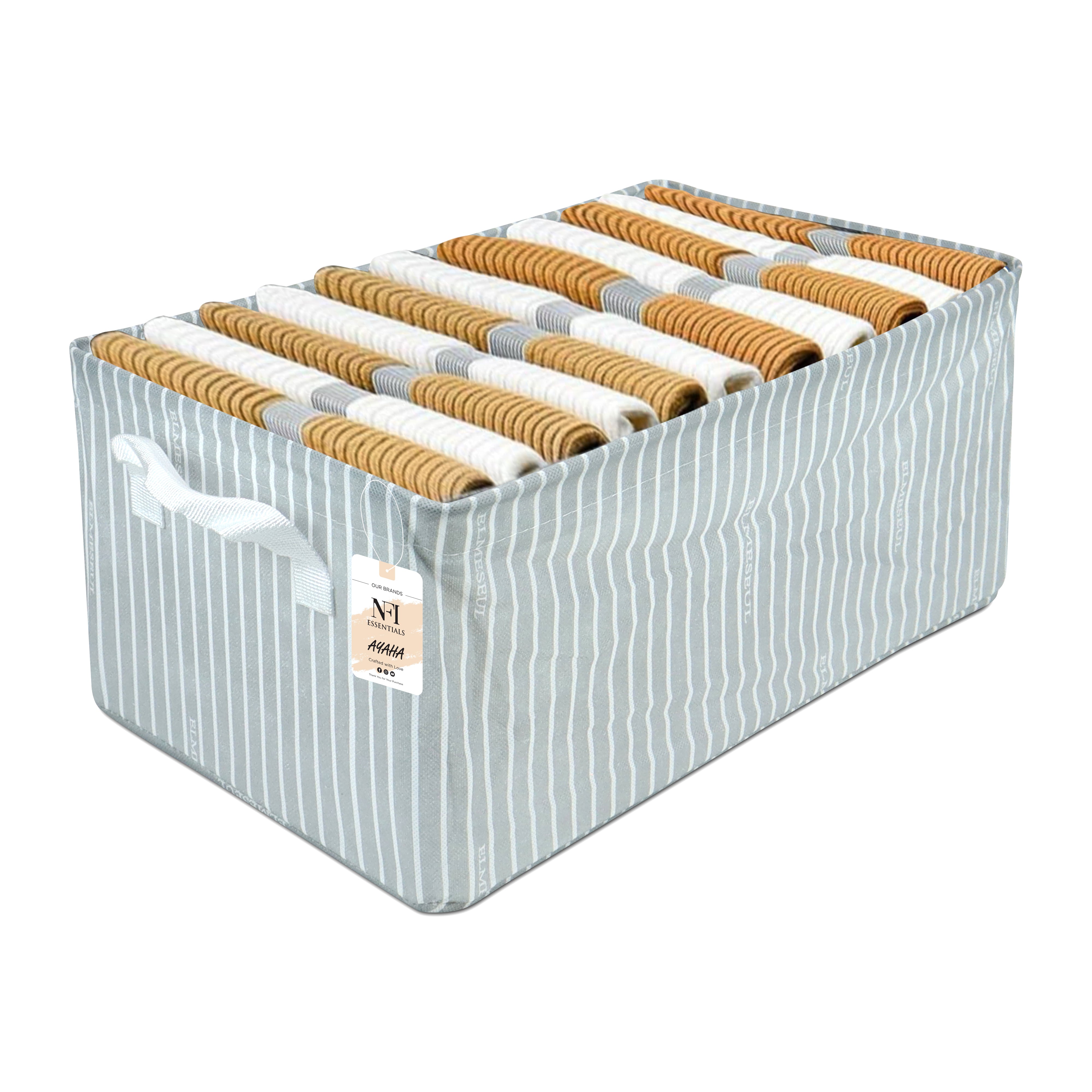 NFI essentials Pack of 4 Closet Organizer Box with Handles Large Foldable Storage Basket for Organizing Cloths, Toys, Books, Shelves, Space Saver Wardrobe Organizer