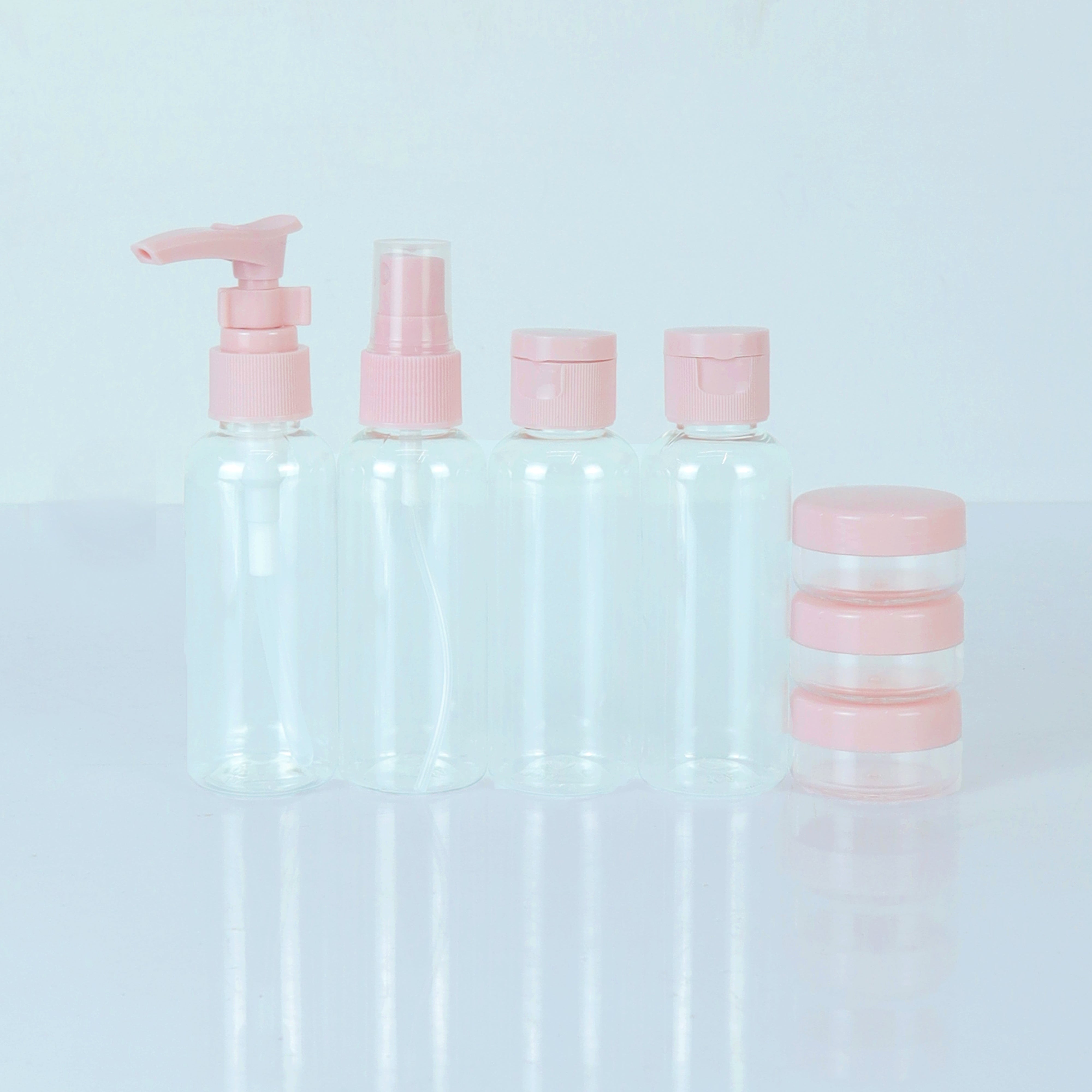 These travel size toiletries bottles are lightweight and space-saving. All of the travel size bottles are with a secure and tight seal, minimizing the risk of leaks or spills during travel. This is especially important for preventing any mess in your luggage or toiletry bag. These small containers are designed specifically for travel purposes for carry-on a variety of liquids, making them the perfect travel companion for your favourite shampoo, conditioner, body wash, lotion and other toiletries. The small plastic bottles can easily fit into any travel bag/purse, so you can bring your favorite cosmetics with you wherever you go. Our travel containers for toiletries are made of high quality plastic, sturdy and portable. The clear bottles allows you to easily see the remaining amount, very helpful for monitoring how much product you have left and planning accordingly. Suitable for daily storage and travel use. This travel set includes 1 x 2oz pump bottles, 1 x 2oz spray bottle, 2 x 2oz travel bottles with flip caps, 3 x 15ml cream jars. Various size and bottles are perfect to meet your different needs. It is perfect for daily use, home, work, vacation trips, camping, beach, gym and other outdoor activities. Perfect for storing products such as shampoo, conditioner, body wash, lotion, moisturizer, hair spray, facial mist, perfume and other liquid toiletries, face cream, etc. This is a travel set that can meet your needs in many ways. At the neck of the lotion bottle there's a buckle. No more hassle of leakage as well as accidently squeezing once in the bag. Universal bottles containers design, easy fill-in and squeeze-out. All are designed in the most simple way 'casue we are aiming to bring you the most convenient user experience. Take to everywhere you want to go like travelling, business trips, dates, gyms, hotels, etc. It's our pressure to become one part consummating your trip plan.