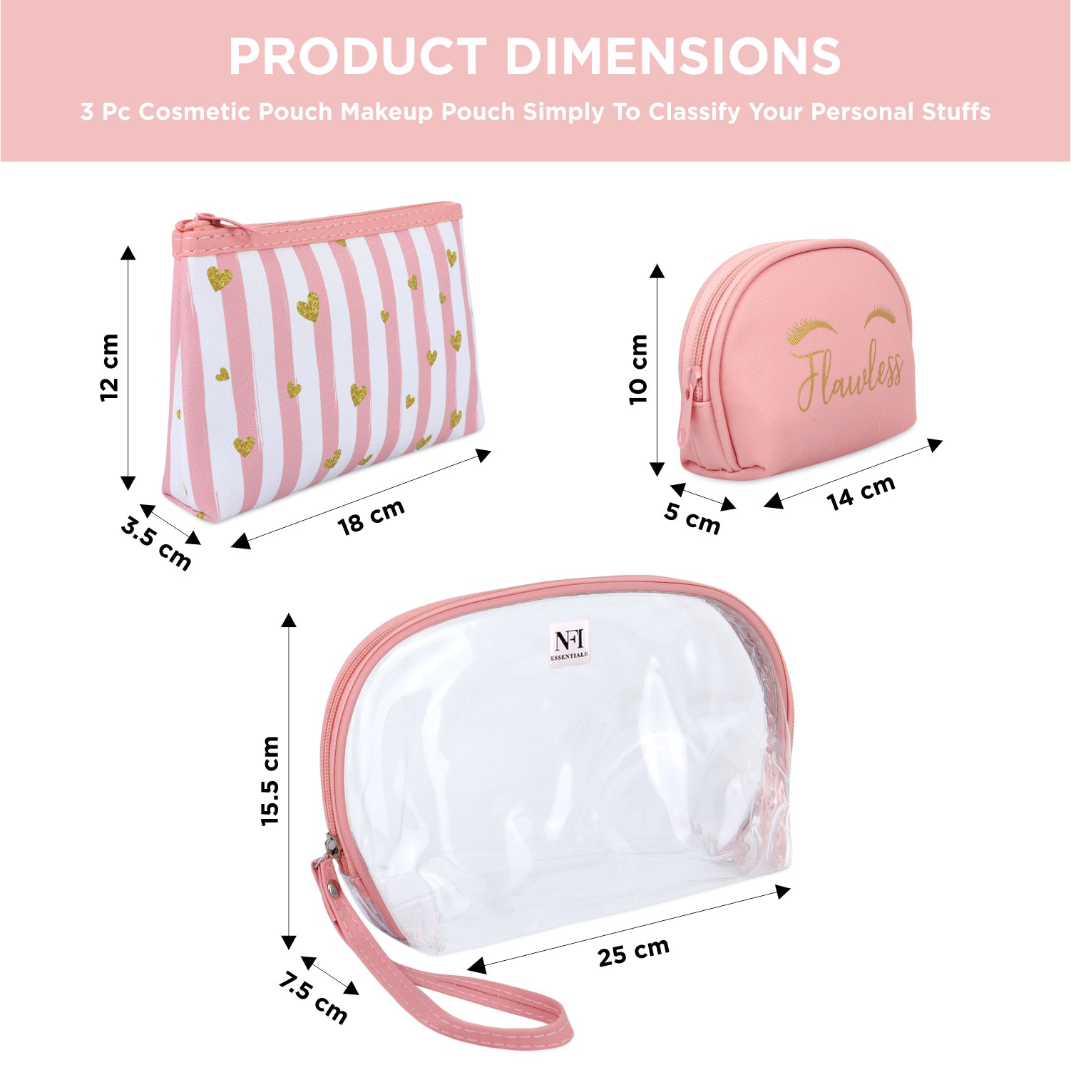 "Dimension :- Large: 26 x 17 x 6.5 cm, Medium: 20 x 14 x 4 cm, Small: 15.5 x 11 x 6 cm. Add a colorful touch to your vanity or carry on with these beautiful patterned makeup pouch that will house your beauty essentials. <br> Your accessories and makeup will stay clean and organized in these waterproof, easy to clean PU lined bags.<br> This set includes 3 sizes that will accommodate all your beauty products at home or on the go! Once you have them you will find so many convenient ways to fill them up. <br> Give this set as a gift to someone special in your life and they will love organizing their cosmetics and toiletries in these pretty pouch! For best results, spot clean these pouch with a wipe. <br> Stay organized and avoid searching for what you need in your purse, bag or suitcase with a set of these beautifull designed bag."