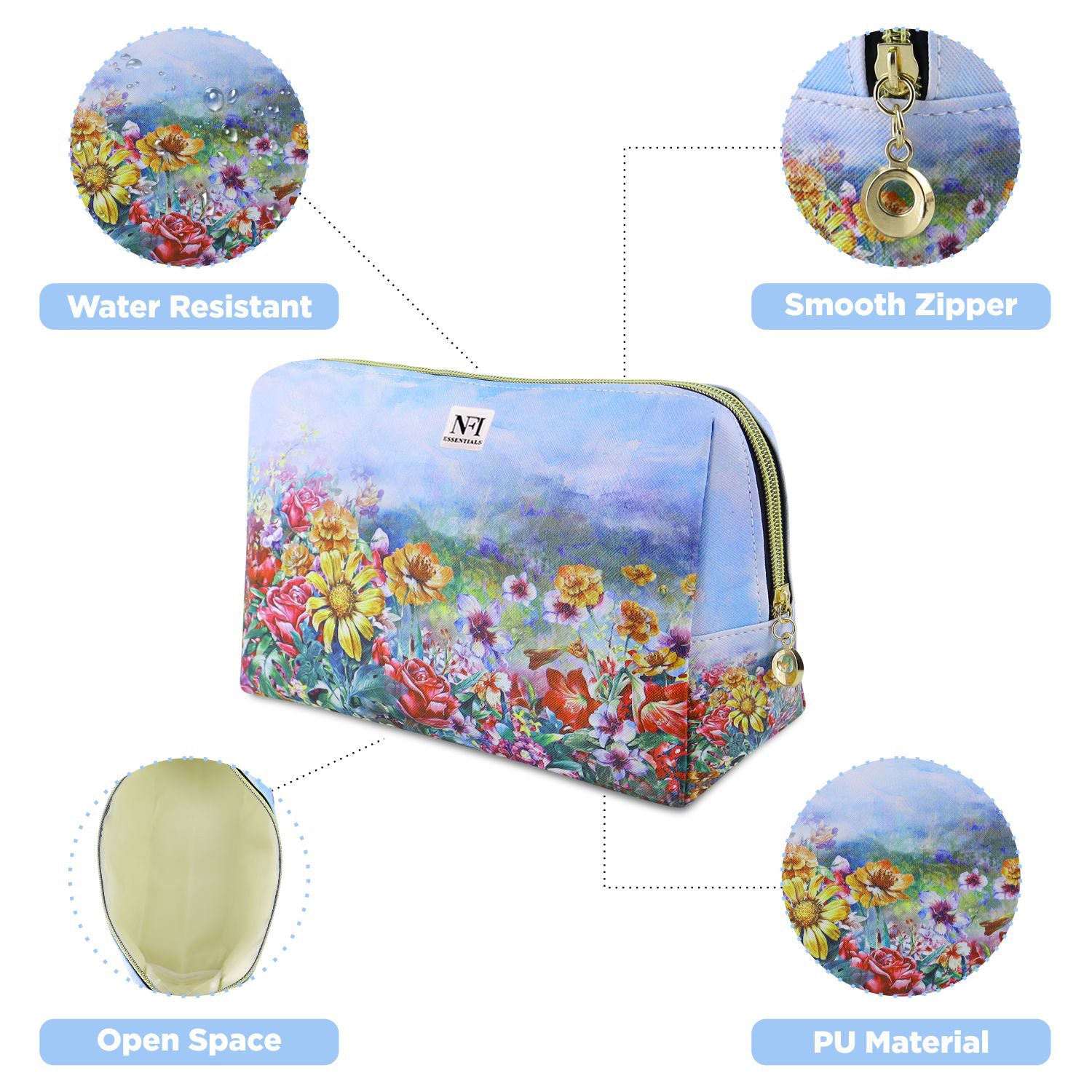This beautiful looking PU Printed Makeup Pouch for Women, Cosmetic Pouch It is easy to fix and access your accessories, This Multifunctional Cosmetic Bag not only can storage your cosmetics, but also Jewellery, Shaving Kit, Valuable objects and so on. It has smooth zipper and precise stitching. Perfect for keeping you small cosmetics like Lotion, Eye shadow, Sunscreen, Brushes, Mascara, Eyeliner, Lipstick, also suitable for keys, coins, sunglasses and other small items. Ideal for travel, vacation, shopping, camping, dating, etc. Cosmetic Pouch a great gift option. Wonderful present for a bridesmaid, bride, boyfriend, wife, girlfriend, mother, daughter, or other family members on a special day, such as a wedding, birthday, Valentine's Day, Mother's Day, Thanksgiving Day, or Christmas Day. Classic and bright color make the toiletry bag very trendy & beautiful which adds shining stars to your personality.