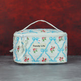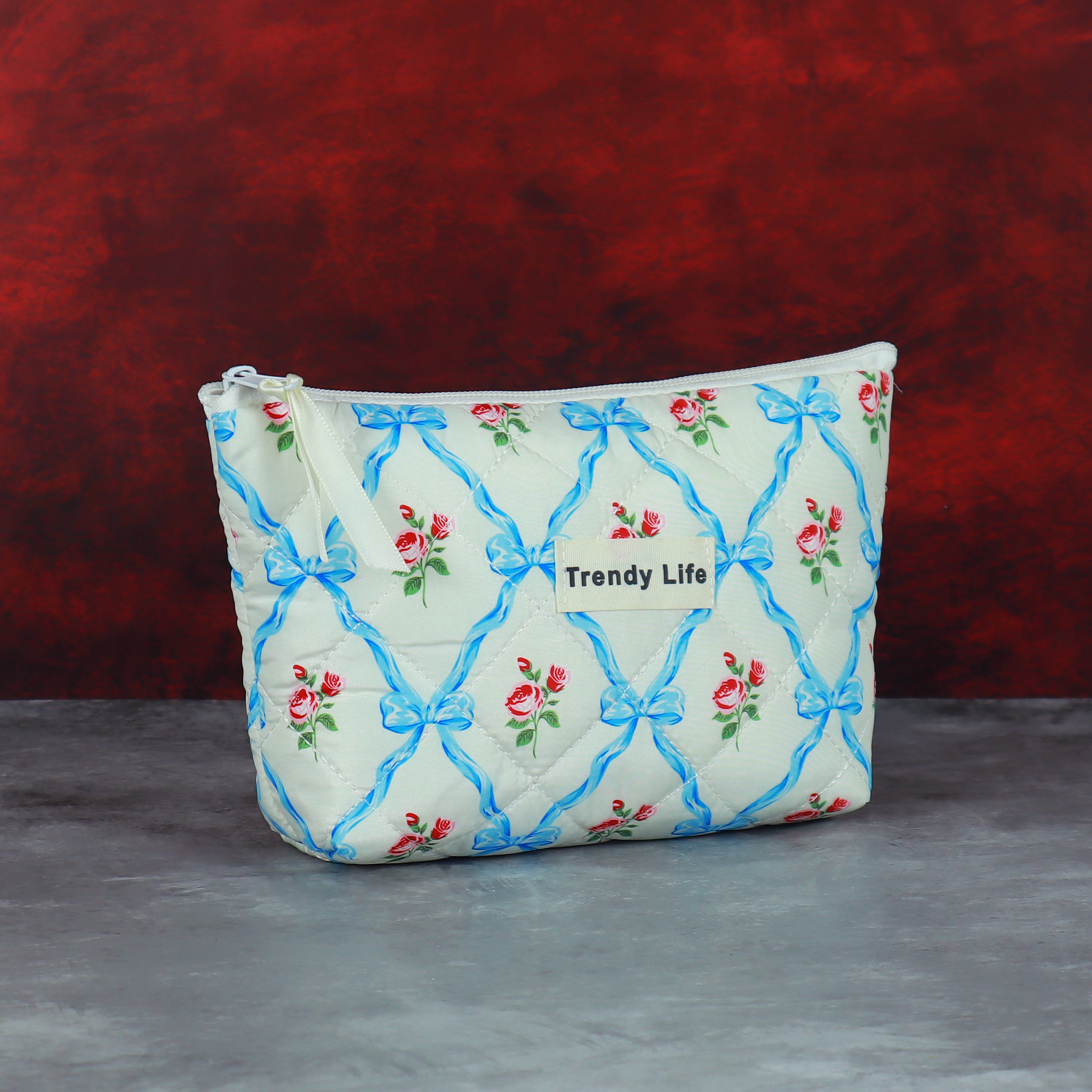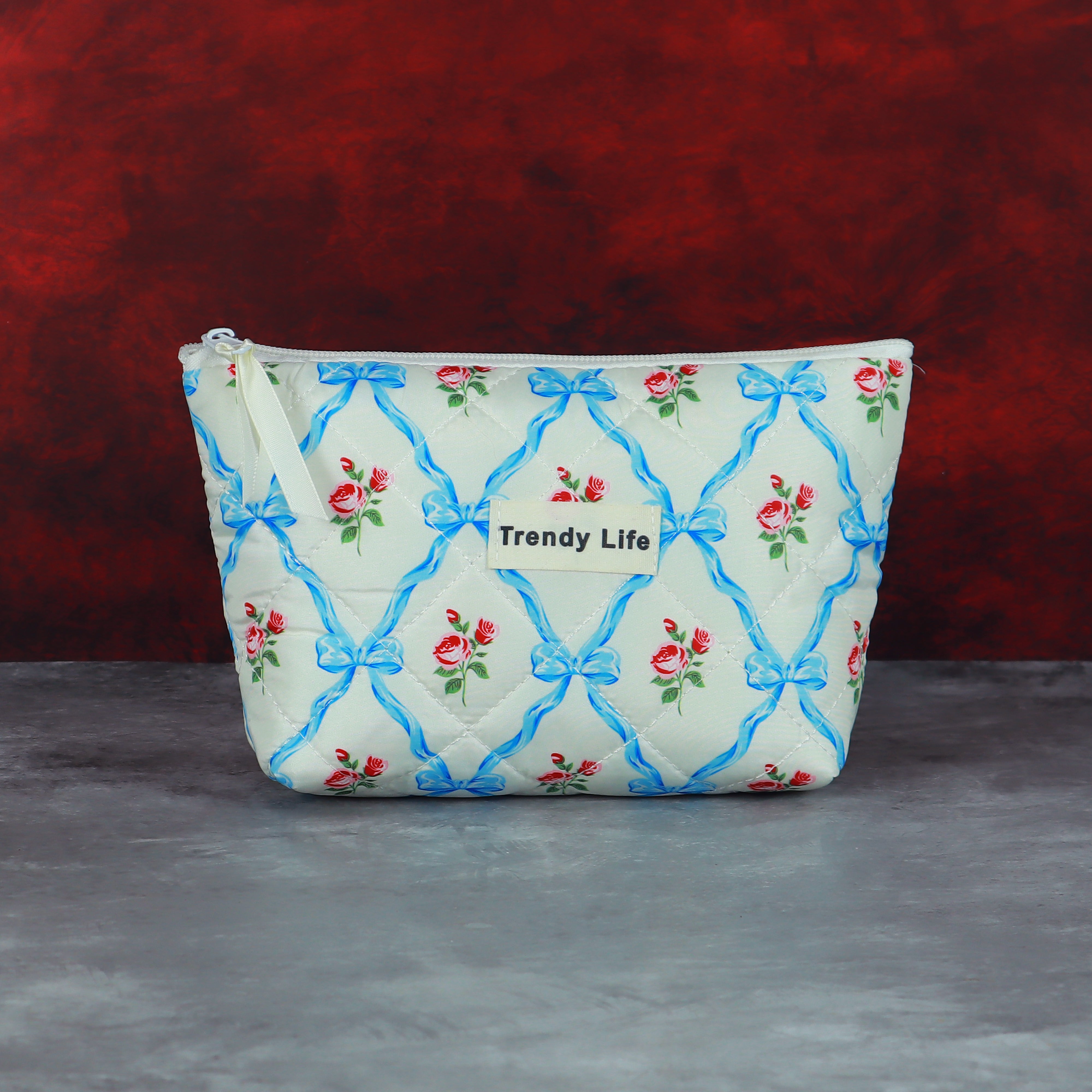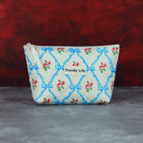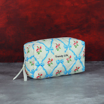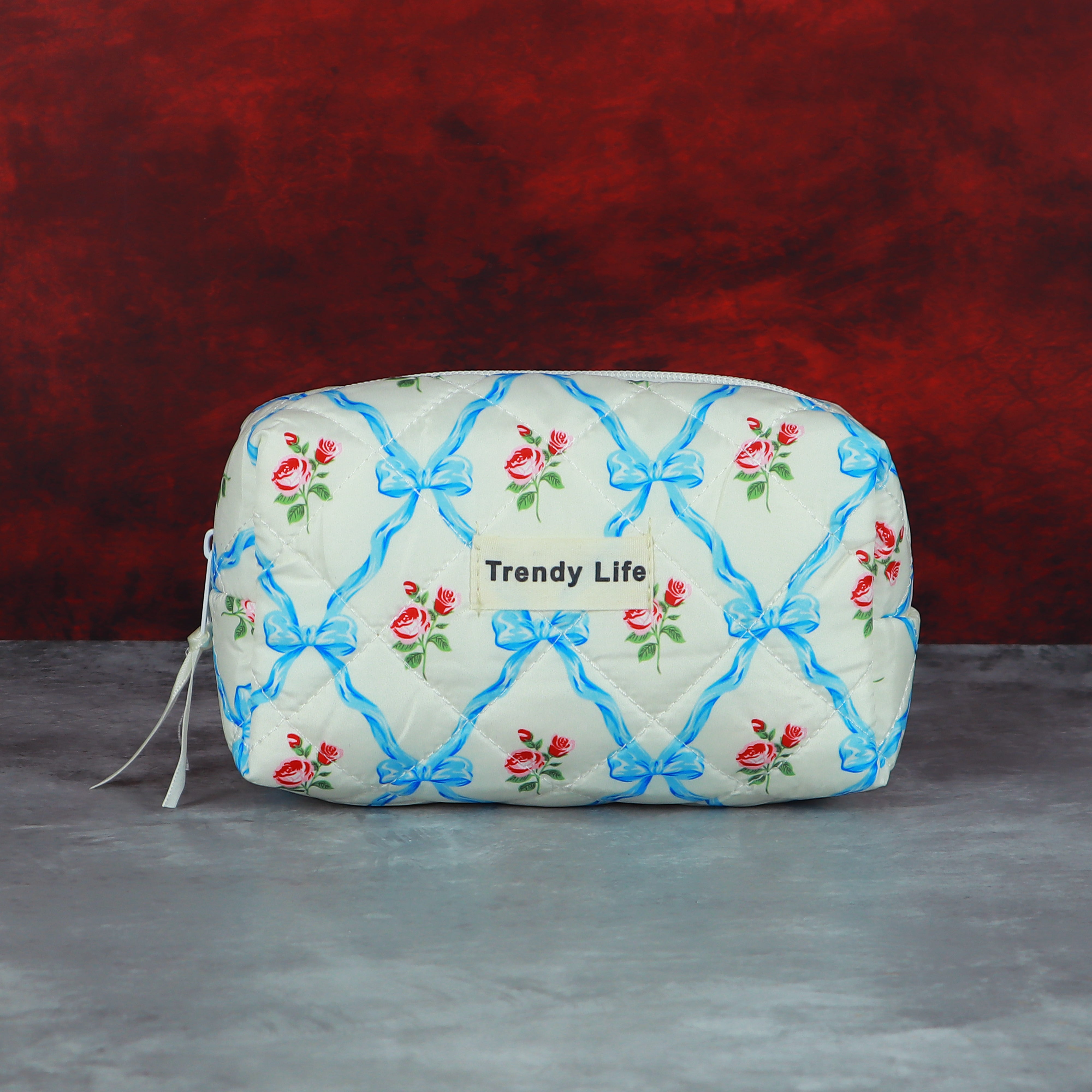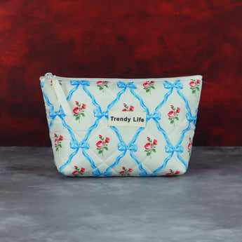 The quilted cotton makeup bag is made of soft cotton, which is lightweight, portable and good in texture. Elevate your beauty organization with our quilted makeup pouch, a stylish accessory that combines sophistication and functionality. This floral quilted makeup bags has large capacity, it can store small items, makeup brush, eyebrows, eyeliner, cream, lipstick, perfume and other beauty things, keeping them organized and protected. The durable construction and premium materials ensures long-lasting use. This quilted makeup bag features a cute pattern design that is fresh and fashionable. It's a great gift for friends, family, and colleagues. Practical and chic, it's sure to be a hit. The cotton makeup bag with metal zipper, smooth to use, will not snag and are less likely to rust. The floral quilted makeup bag is made of soft cotton and easy to clean. The handle of this travel bag is extremely sturdy. Whether you're going out for daily activities or on a long journey, it can stay firmly in your hand even after holding it for a long time.