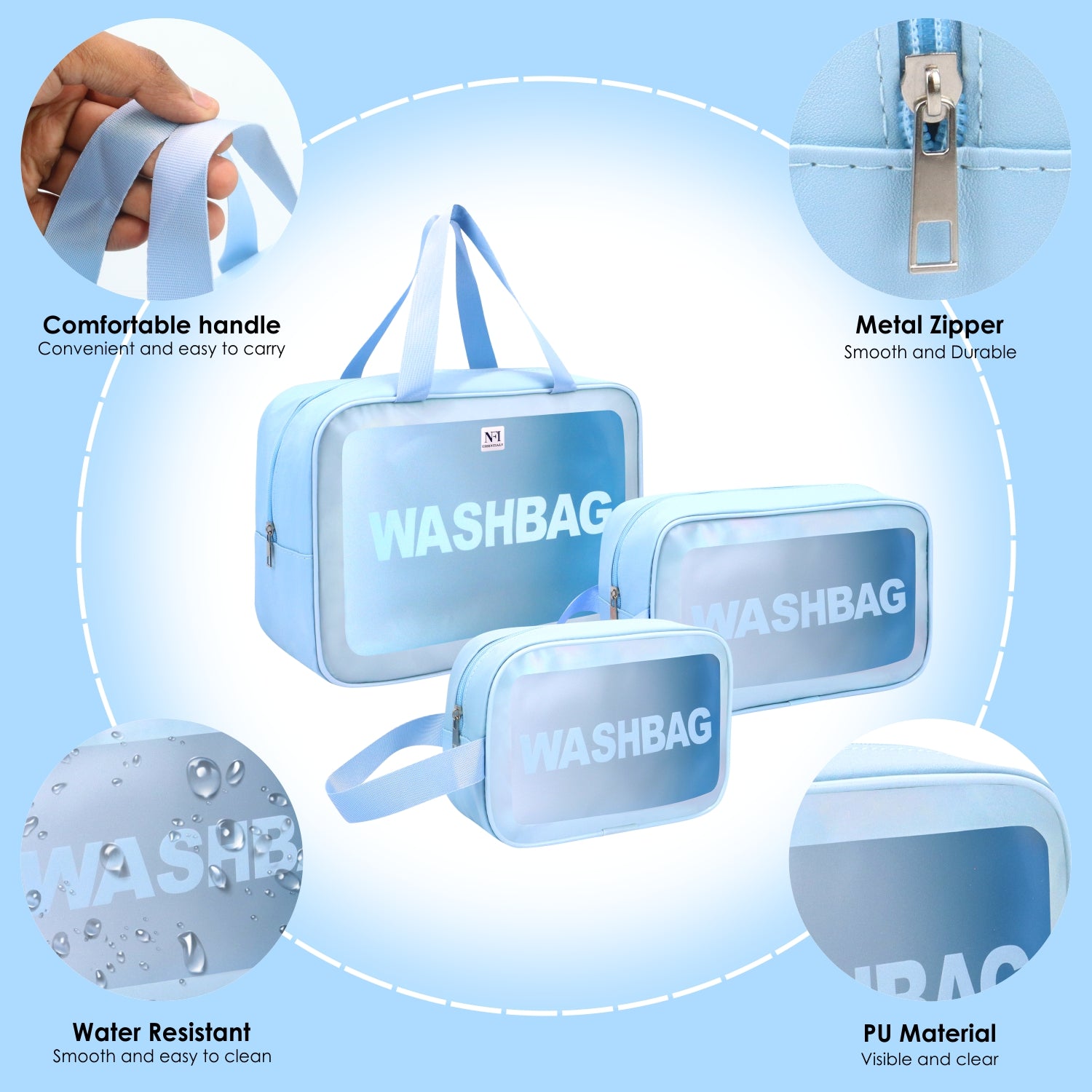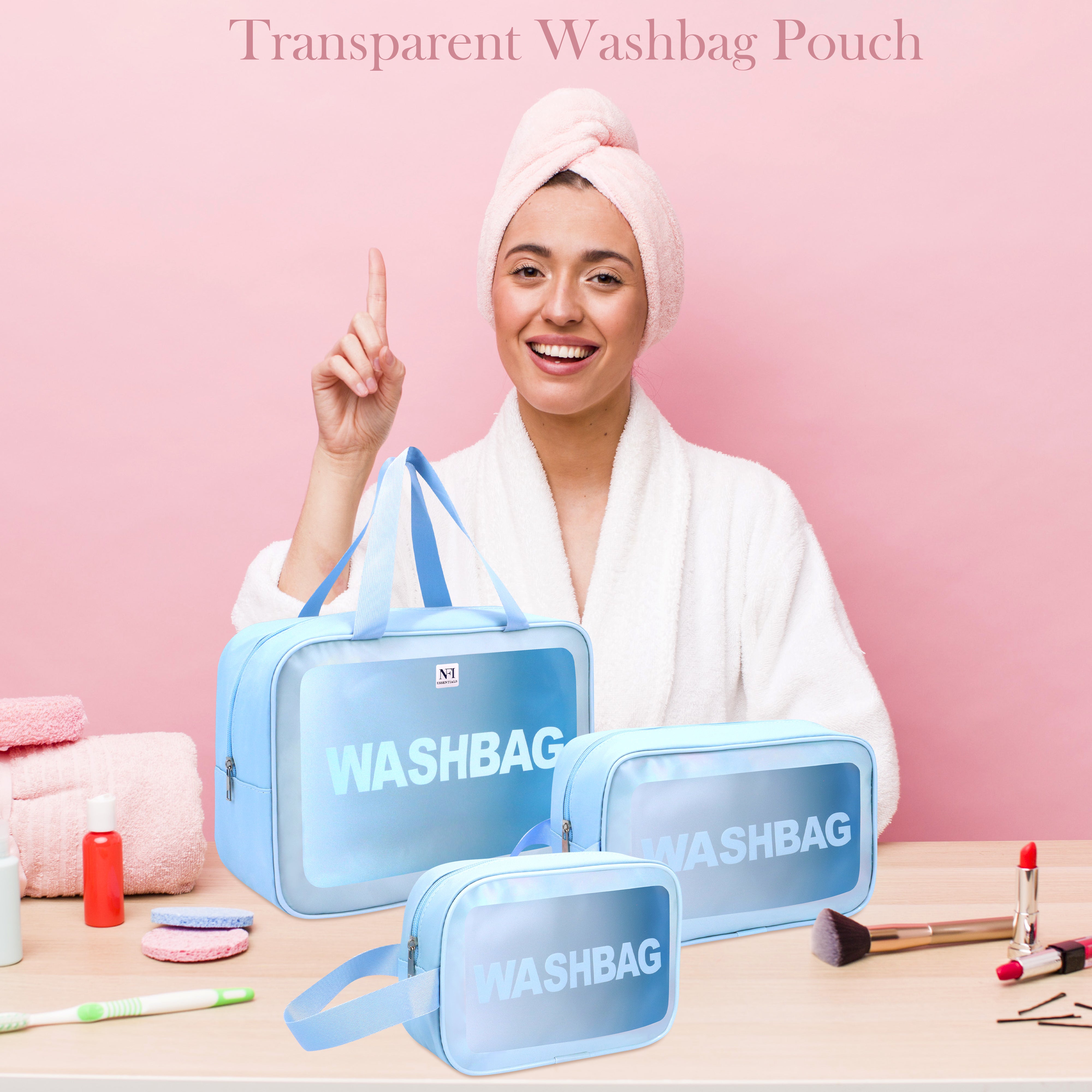 NFI essentials Set of 3 Transparent Wash Bag, Makeup Pouch for Women