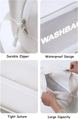 This gorgeous cosmetic pouch made of PU material is perfect for women. Fixing and getting to your accessories is simple. In addition to storing your cosmetics, this multipurpose cosmetic bag can also hold valuables, jewelry, a shaving kit, and more. It is well stitched and features a silky zipper. The toiletry bag provides a glamorous touch to your individuality with its vibrant, classic hue. This portable travel toiletry bag to carry your toiletries or cosmetics on the go, and protect your items from moisture or sand. Our clear toiletry bag has a single zipper that opens and closes easily and comfortably. Better dust and water resistance for internal objects is provided by a finely constructed nylon zipper. It is perfect for using at the beach as it keeps everything dry and clean. When used, the handle strap makes things more convenient. It is portable and can be hung anywhere you need it, like on a shower rod or towel rack. The handle strap adds convenience when it's in use.