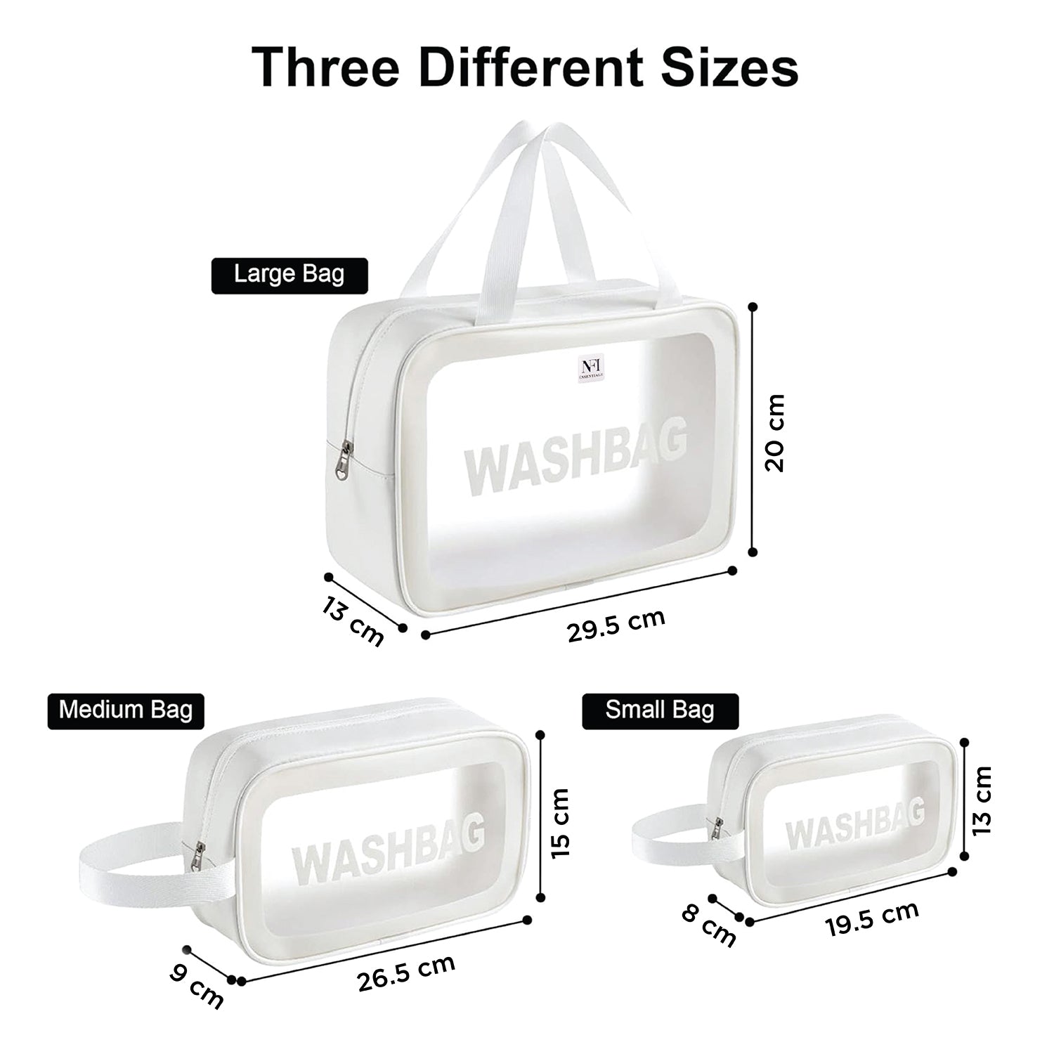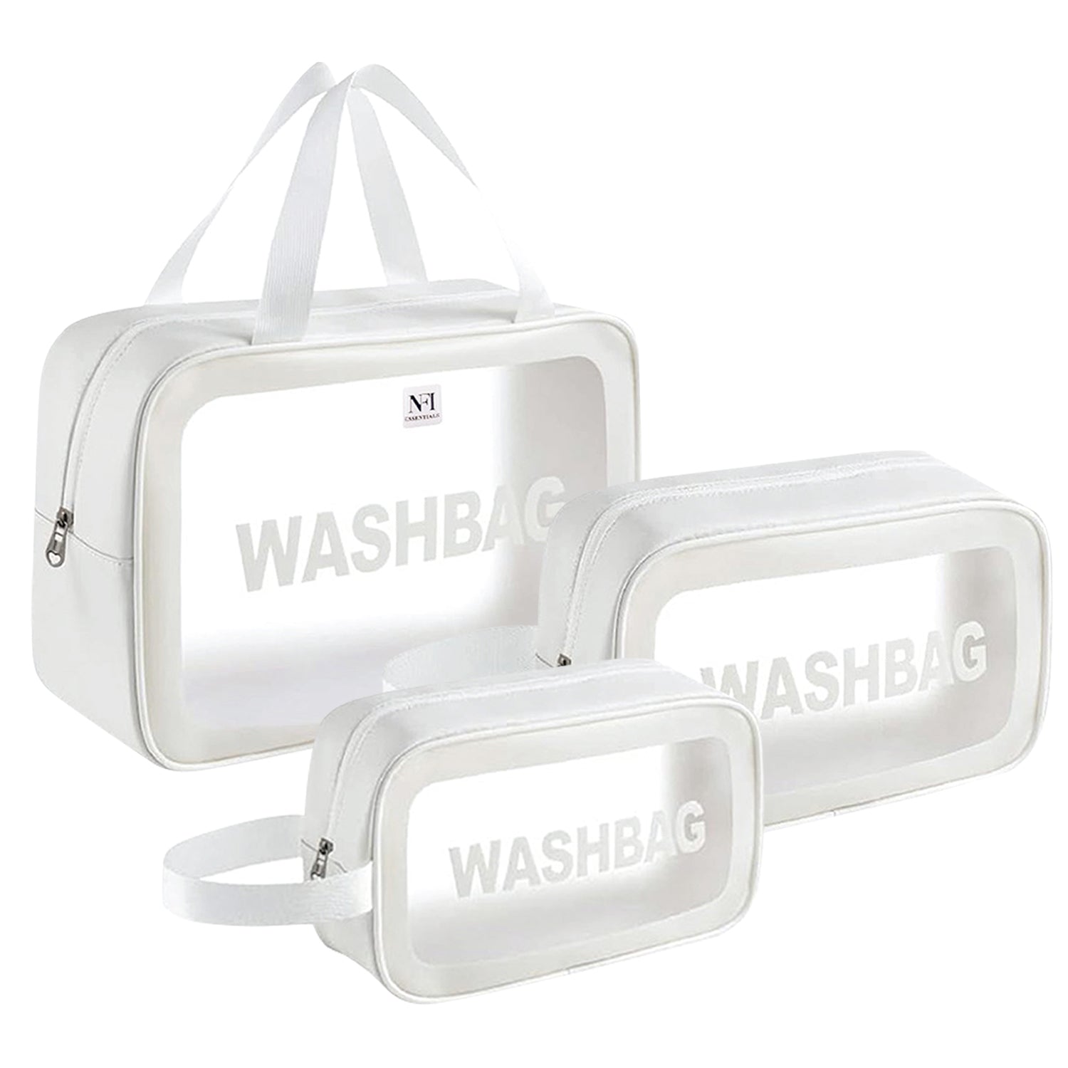 NFI essentials Set of 3 Transparent Wash Bag, Makeup Pouch for Women