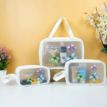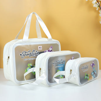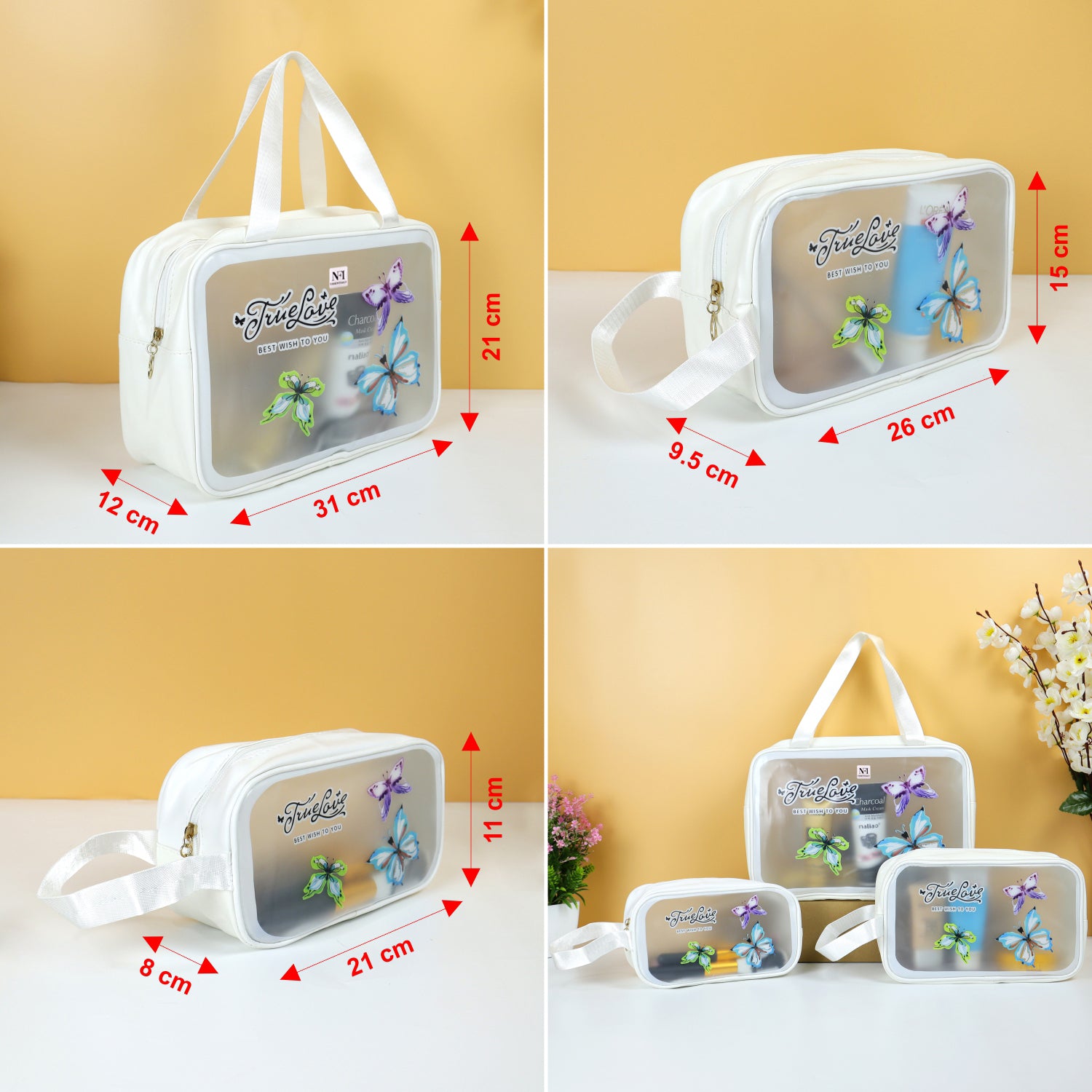 NFI essentials Travel Makeup Pouch Set of 3 Washbag Pouch Transparent Cosmetic Bag for Women