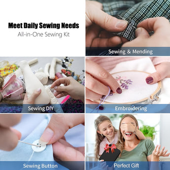 The kit contains all the necessary tools that are required for performing basic repairs, be it a needles, threads, scissors, buttons, threader tools, seam ripper and all sewing tools.The straps holding the spools and tools in their places, which makes you easily to find it out and mend anything you want without any worry to lose it in your bag, purse, drawer or anywhere. Your wise choice gift for your mom, grandma, lovely kids, best friends, lovers, even beginner, crafters or DIY lovers. And it's definitely something that people would love to use.