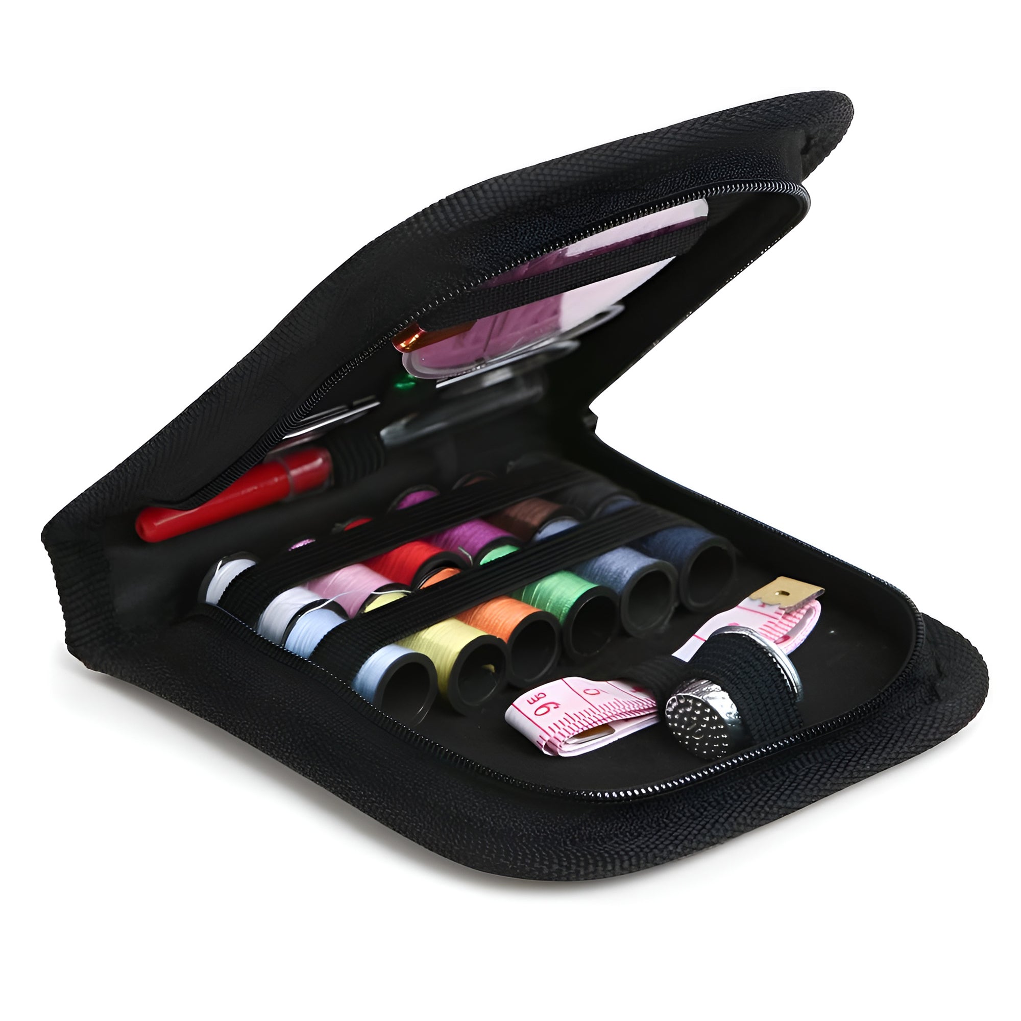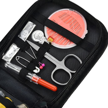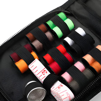 The kit contains all the necessary tools that are required for performing basic repairs, be it a needles, threads, scissors, buttons, threader tools, seam ripper and all sewing tools.The straps holding the spools and tools in their places, which makes you easily to find it out and mend anything you want without any worry to lose it in your bag, purse, drawer or anywhere. Your wise choice gift for your mom, grandma, lovely kids, best friends, lovers, even beginner, crafters or DIY lovers. And it's definitely something that people would love to use Sewing Kit Includes : 14 Thread reels, 1 Measuring tape, 1 scissors, 1 Sewing Needles set, , 1 Metal Timbles, 2 needle Threader, 2 safety pins, 1 Seam ripper, 2 colour pins, 3 Buttons, and 1 Small oraganizer Poch.