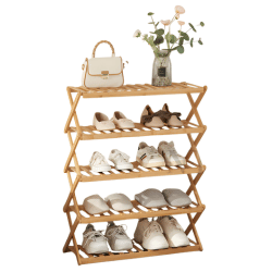 NFI essentials 5 Tier Bamboo Wood Shoe Rack MultiPurpose Foldable Rack for Storage Shoes Slipper Chappal Stand Shelf Organizer for Home Kitchen Space Saving Portable Stand