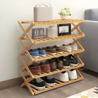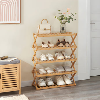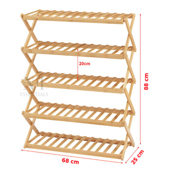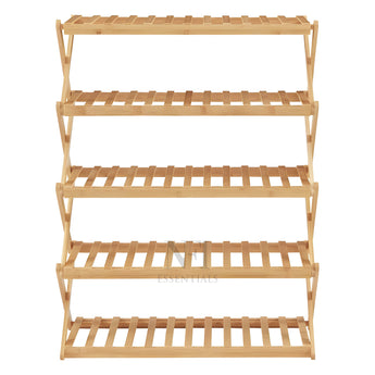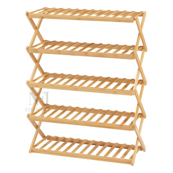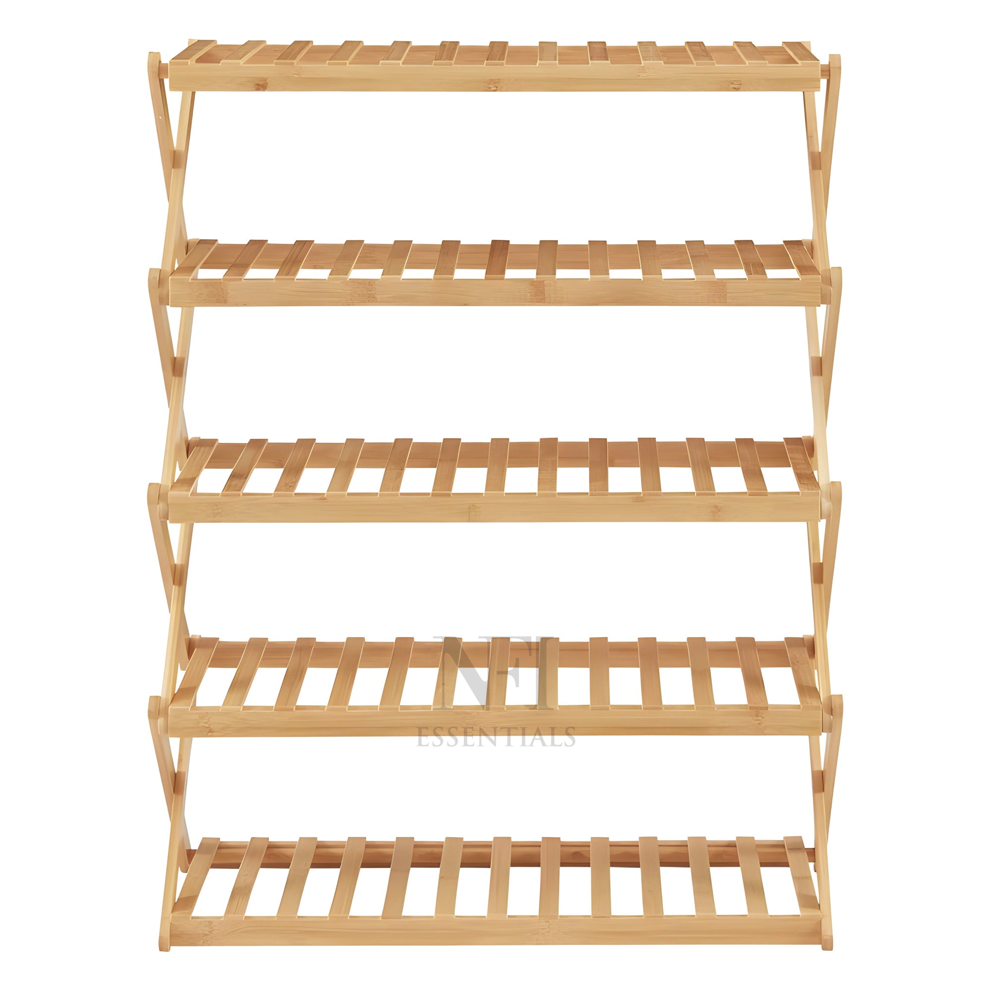 NFI essentials 5 Tier Bamboo Wood Shoe Rack MultiPurpose Foldable Rack for Storage Shoes Slipper Chappal Stand Shelf Organizer for Home Kitchen Space Saving Portable Stand