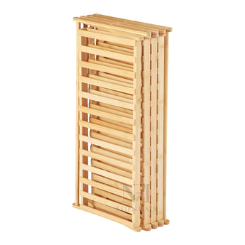 Keep your shoes organized with the modern and elegantly designed with NFI essential Bamboo Shoe Rack. The open slat on each tier allows air passage between the shoes to minimize odor from shoes. The shoe rack allows easy transportation with handles on each side. Present the NFI essentials shoe rack as a gift or use for your own home. Its compact size is a perfect fit for any space in and out of the house. The contemporary look and design of the shoe rack will never look out-of-date and compliments any shoe types. Multi-level to increase storage space, it can not only be used as a shoe rack, but also can be placed in the living room, closet, garage, sun room, tool room and so on. Meet your daily needs and keep your living space organized. Sturdy and solid frame with built-in reinforcement. Load-bearing and durable for more assured. The surface is smooth, effectively waterproof and moisture-proof, and easy to clean and maintain. Thickened planks with folding metal hinges. Stable while easy to install and remove.