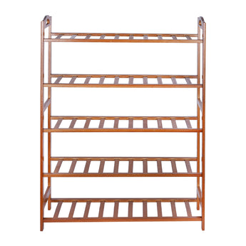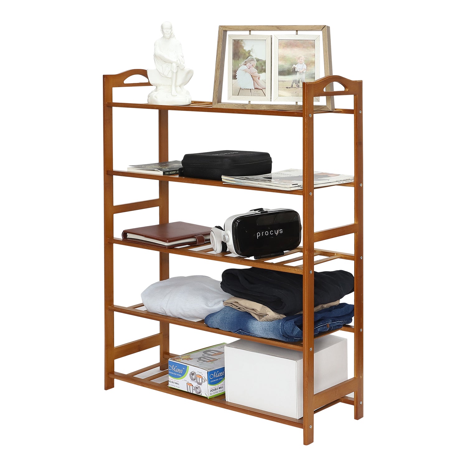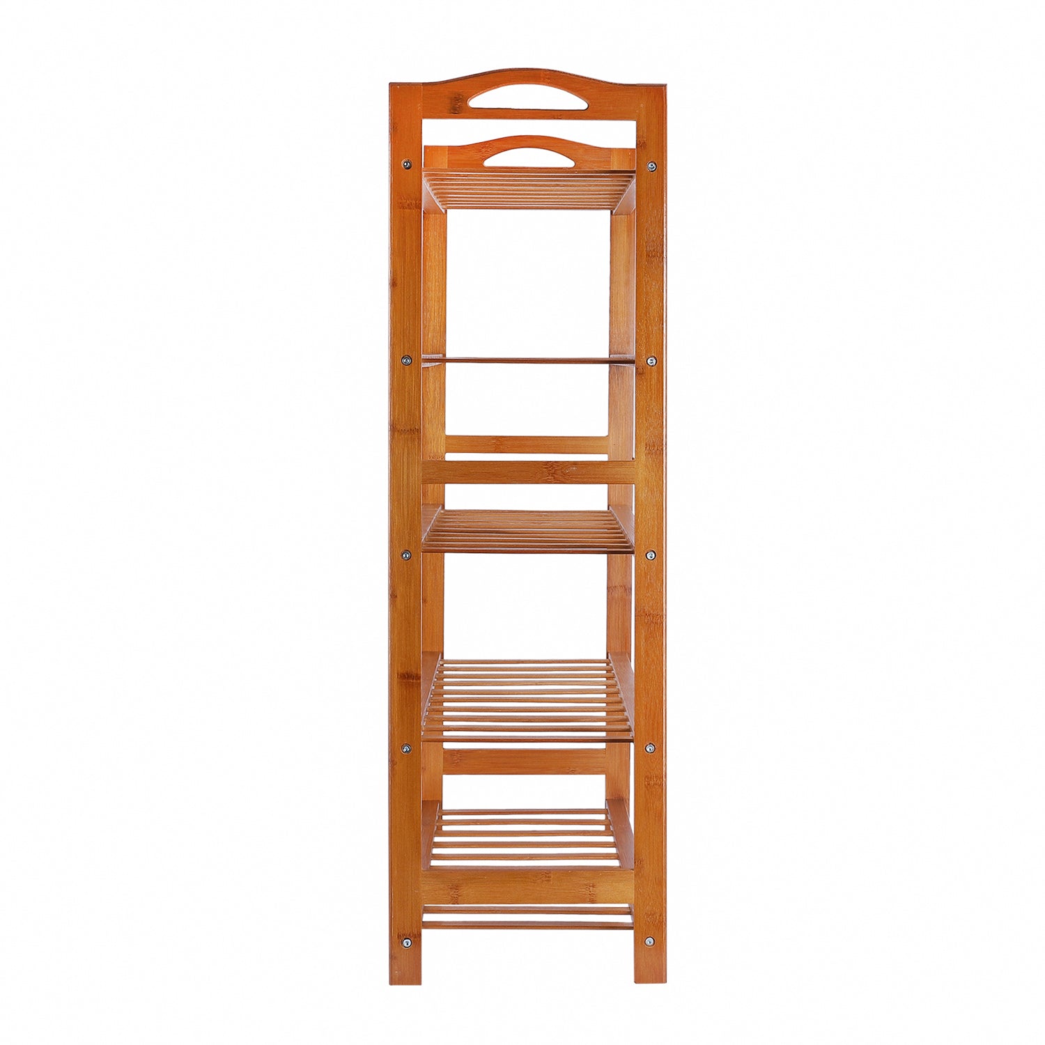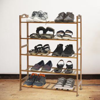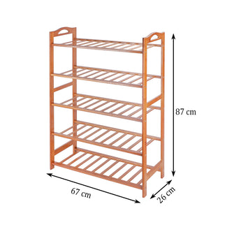NFI essentials 5 Tier Bamboo Wood Shoe Rack MultiPurpose Foldable Rack for Storage Shoes Slipper Chappal Stand Shelf Organizer for Home Kitchen Space Saving Portable Stand