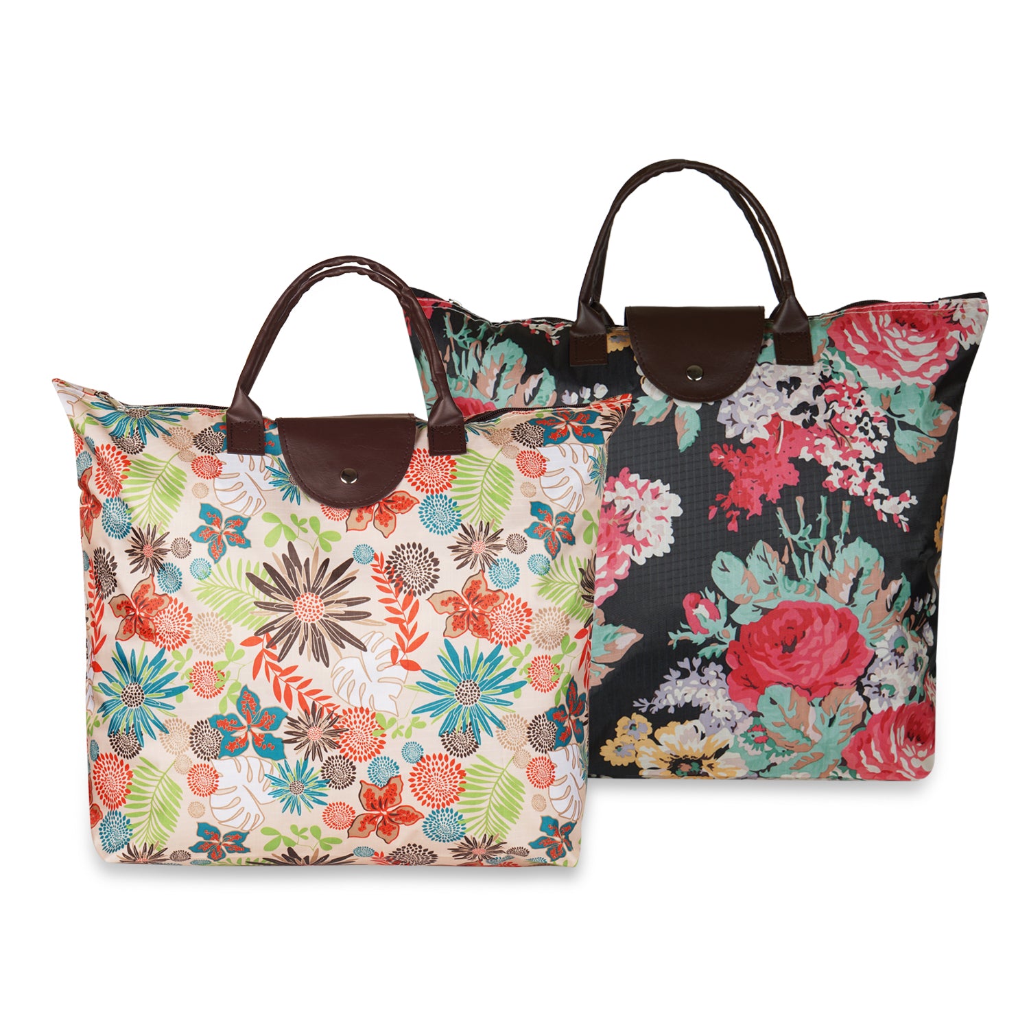 NFI essentials Handy Fold Up Shopping Bag Handbag | Women Shoulder Waterproof Carry Bag (Pack of 2)