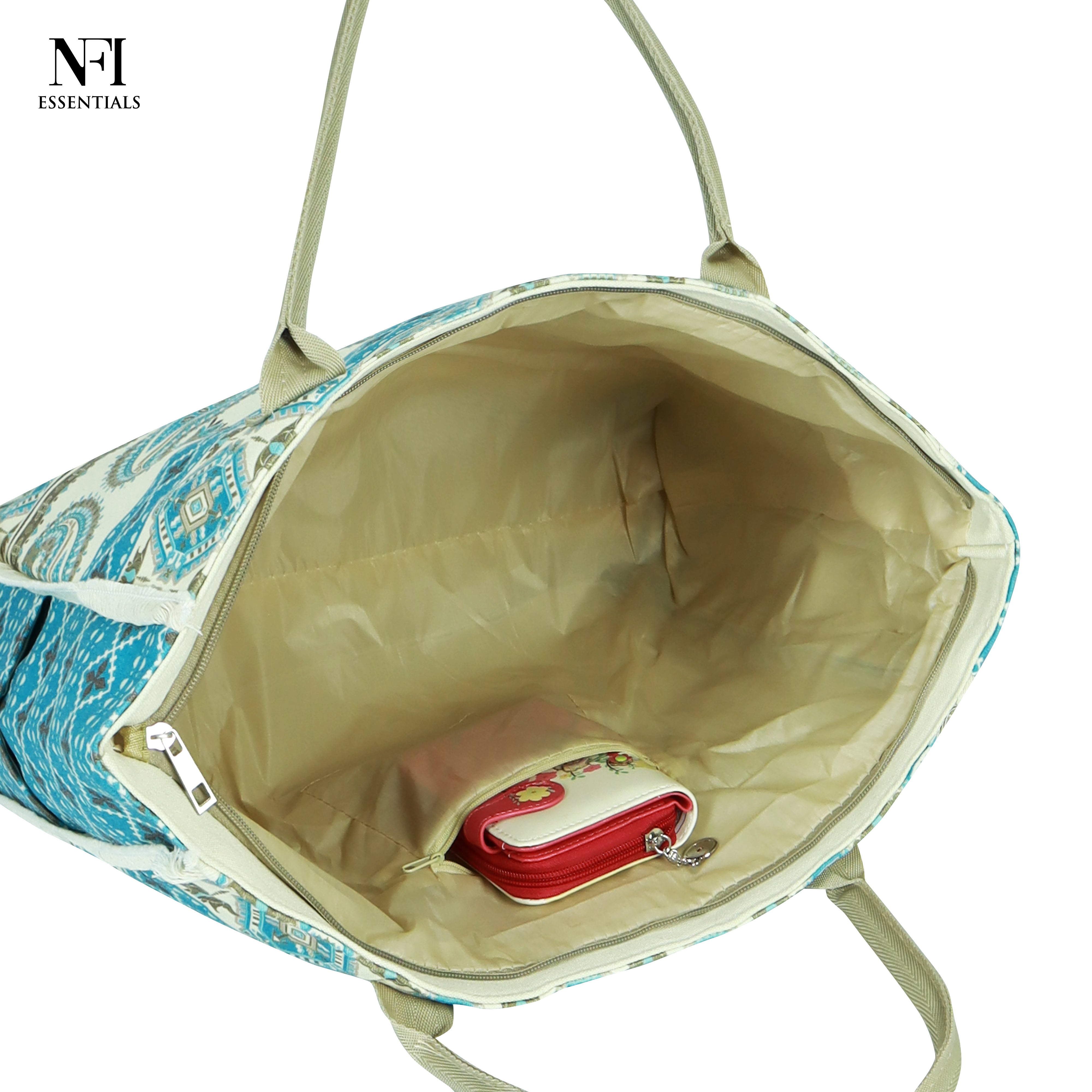 Elevate your everyday style with NFI essentials this beautifully designed printed canvas tote bag for women, a perfect blend of fashion, functionality, and eco-consciousness. Crafted from high-quality, durable cotton canvas, this tote bag is built to withstand daily wear and tear while offering a soft, natural feel. The spacious main compartment provides ample room to carry all your essentials from books and groceries to your laptop and gym gear—making it an ideal companion for work, shopping, travel, or a casual day out.