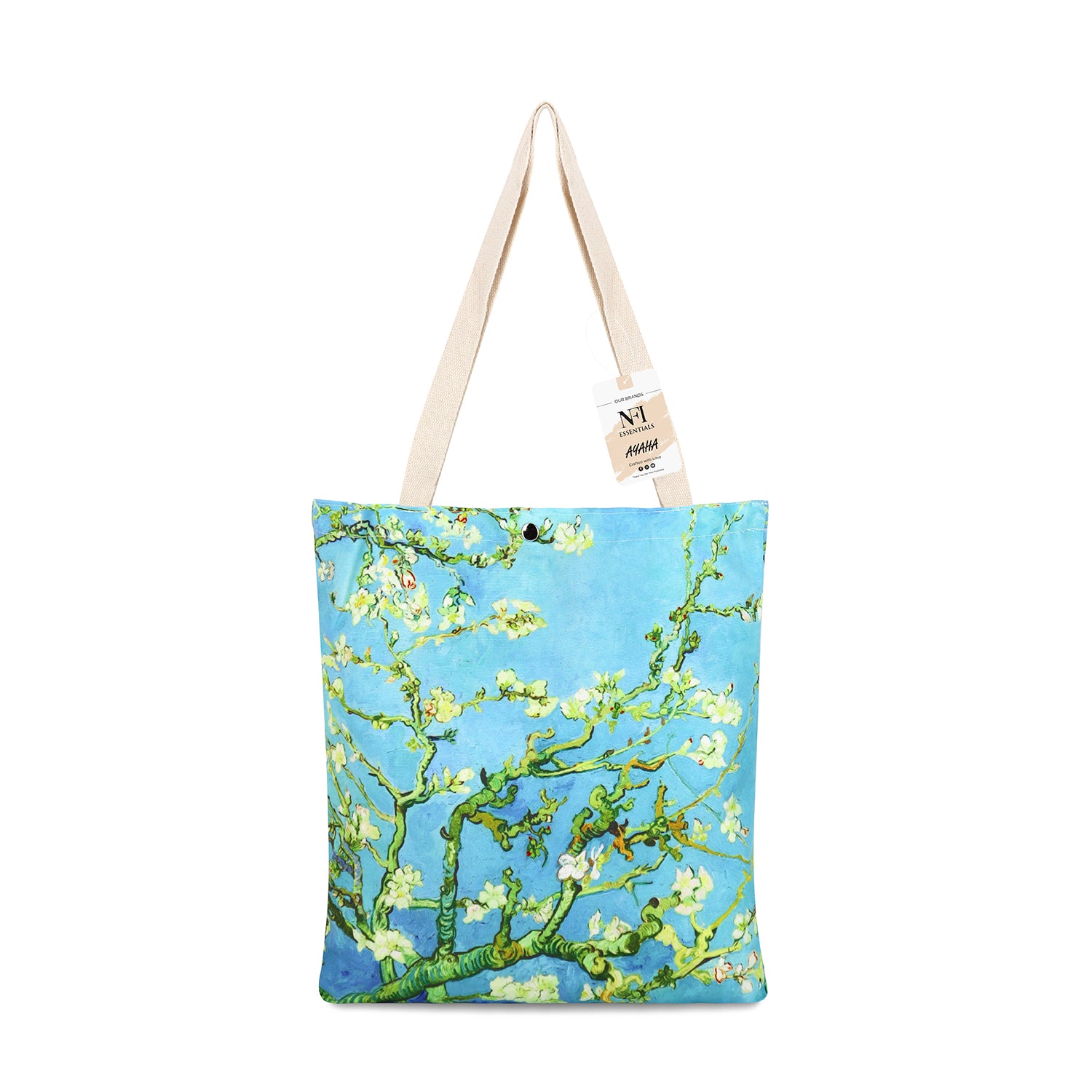 NFI essentials Canvas Printed Tote Bag for Women with Tich Button, Casual Handbag