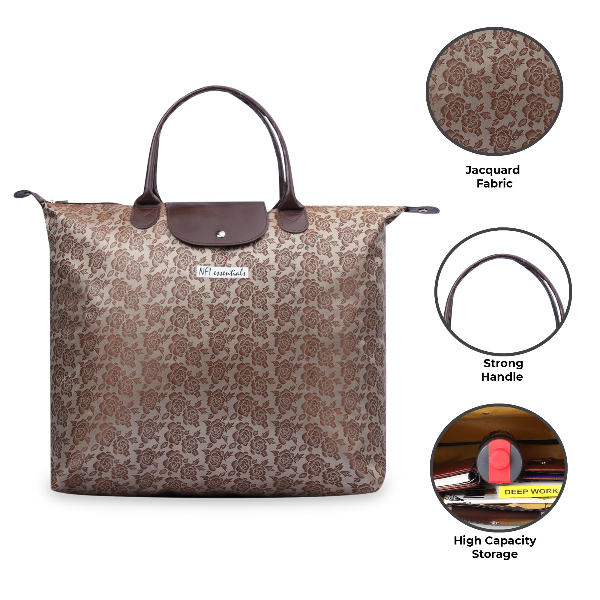 NFI essentials Jacquard Convertible Long Shopping Bag Foldable Shopping Handbag Travel Bag Women Shoulder Waterproof Carry Bag