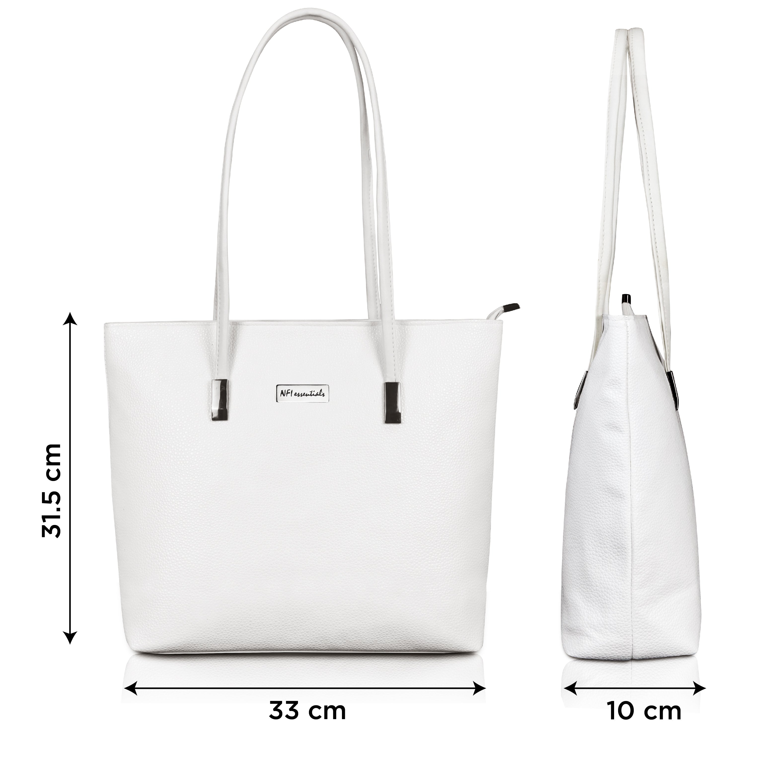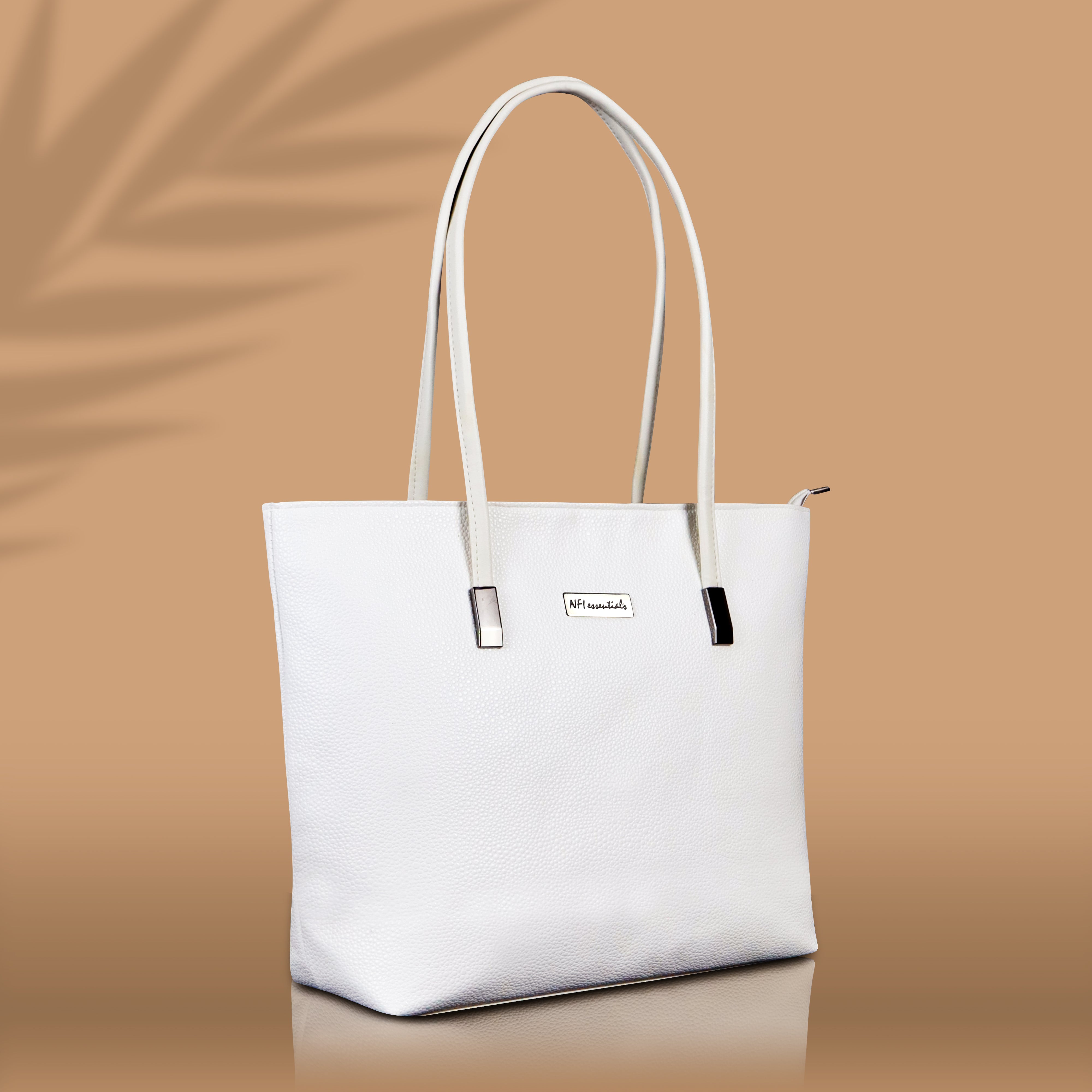 NFI essentials Large Capacity solid textured Tote Bags For Womens Handbag for Ladies Big stylish Purse Shoulder Shopping office College party Bag for daily travel with zip pocket
