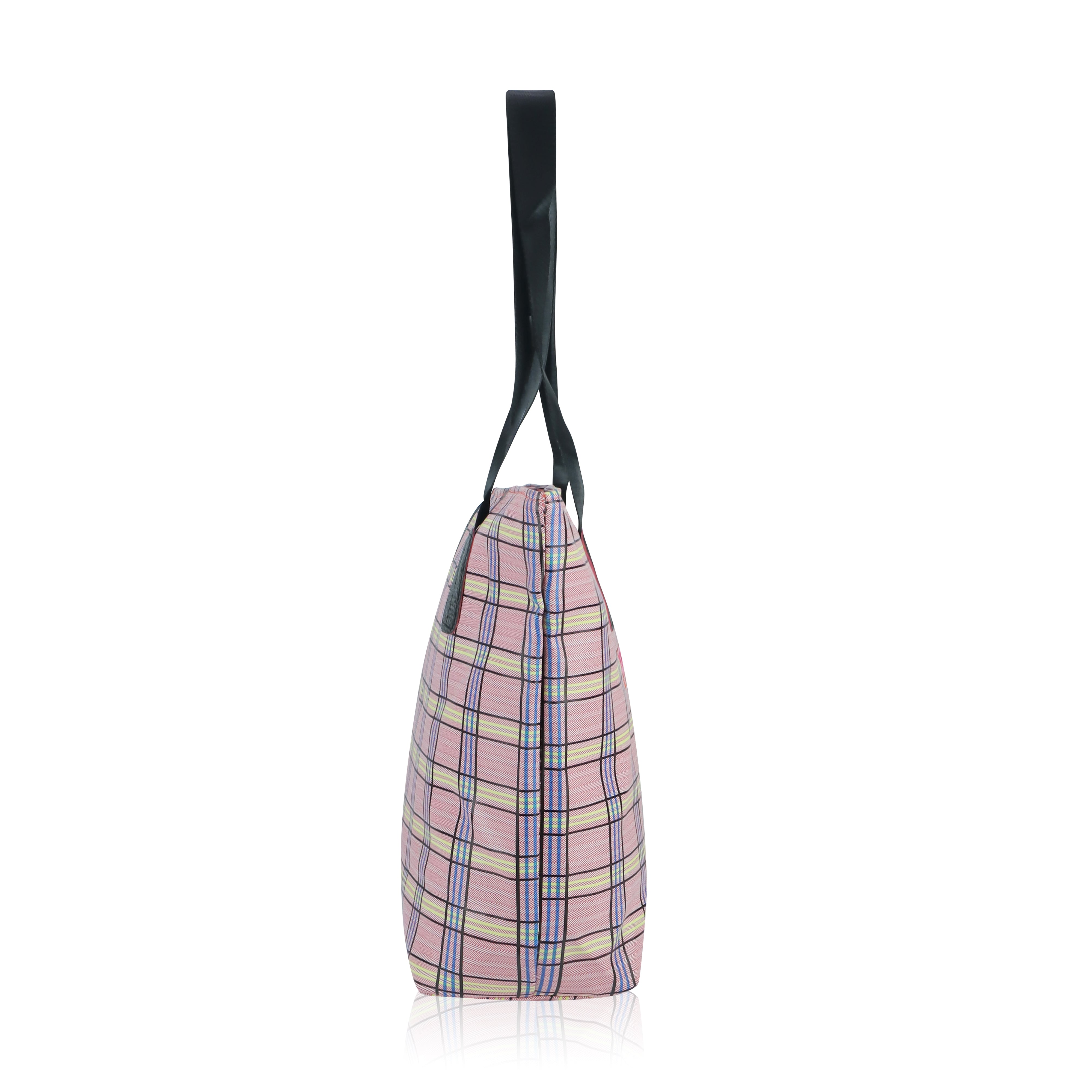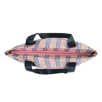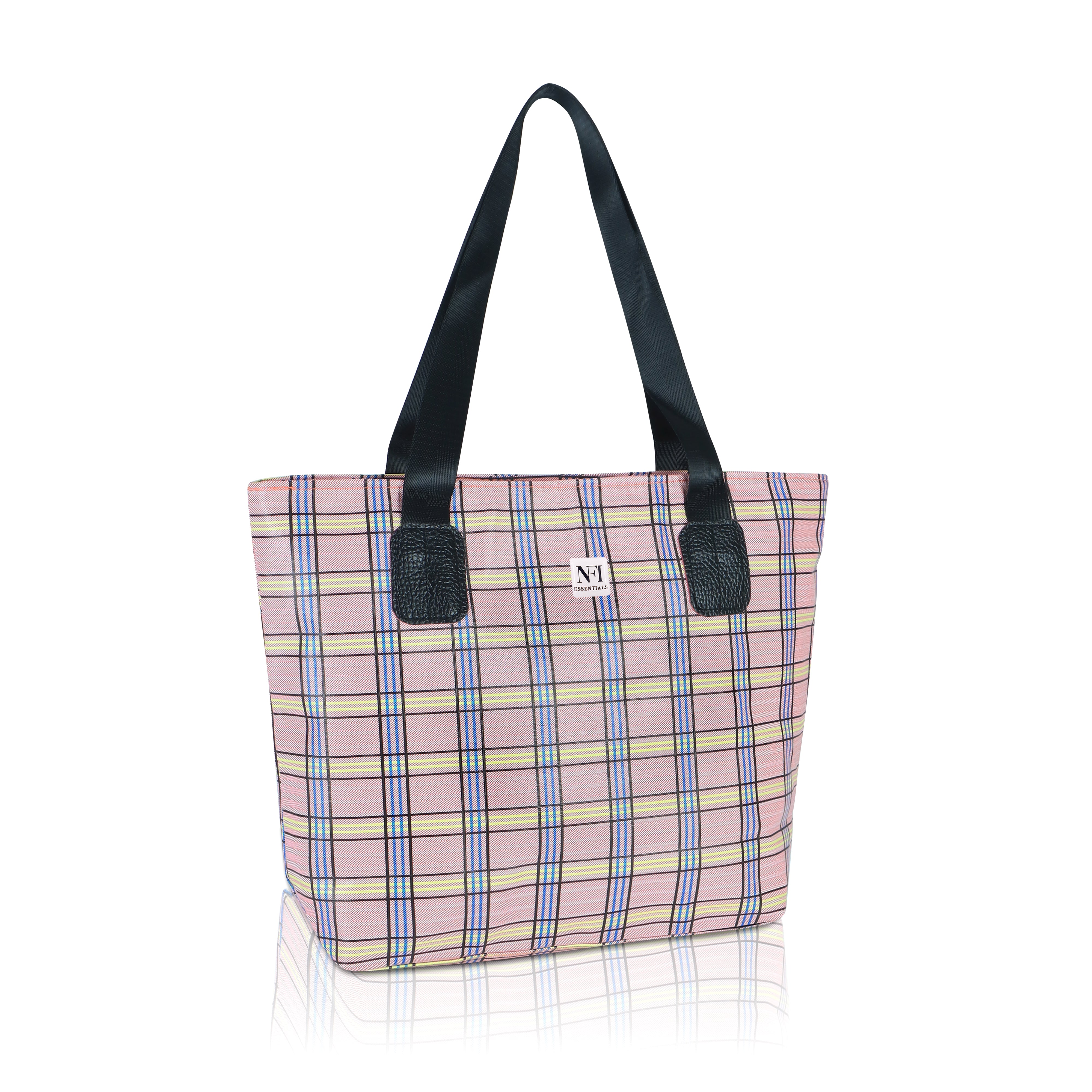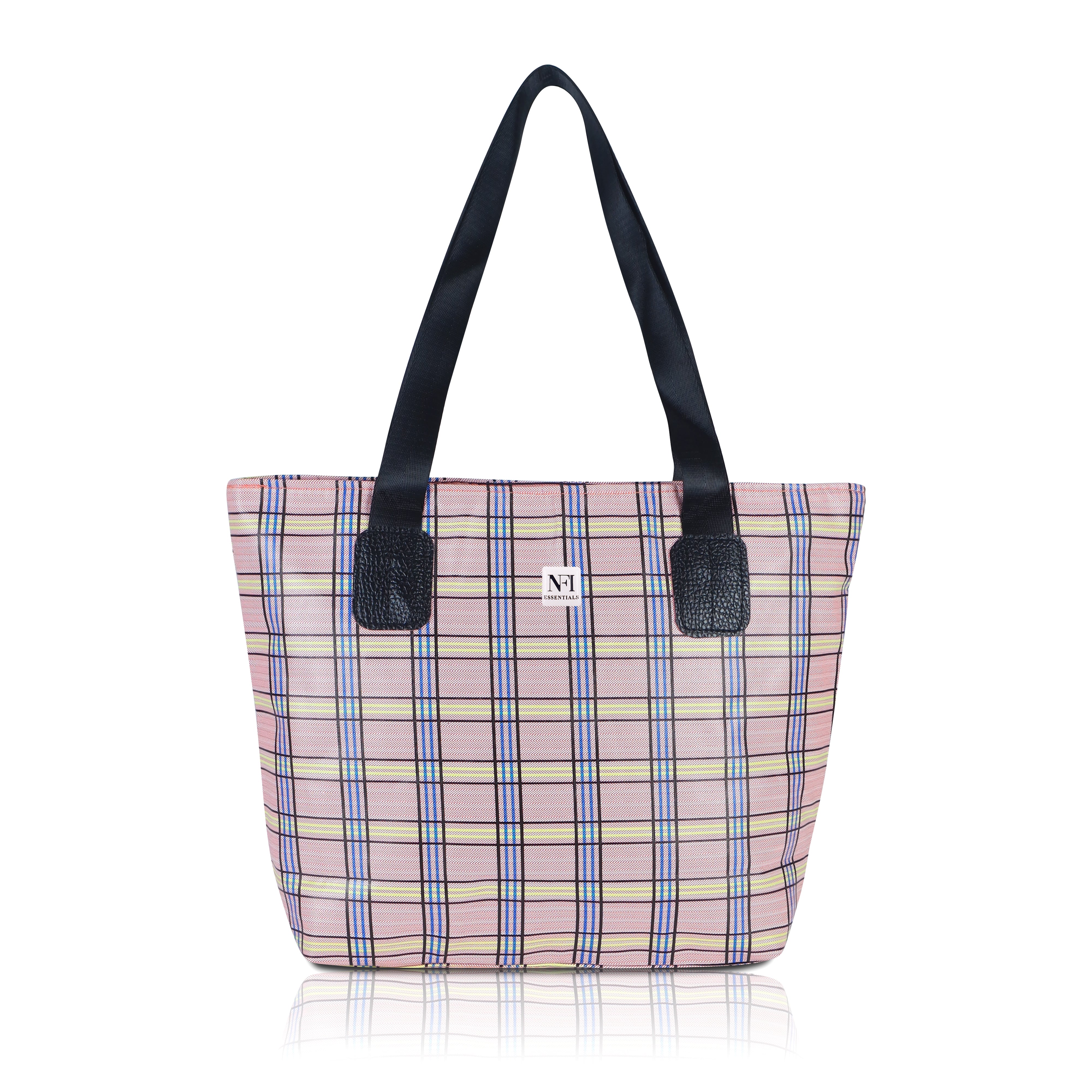 Add a splash of style and practicality to your everyday routine with this charming plaid tote bag, designed for women who value both fashion and functionality. Featuring a beautiful pastel pink checkered pattern with subtle tones of yellow, blue, and black, this bag effortlessly combines classic elegance with a modern twist. Crafted from durable, lightweight, and water-resistant fabric, it’s perfect for daily use whether you’re heading to work, school, the market, or a casual outing. The spacious main compartment offers ample room for your essentials – including books, a tablet, cosmetics, lunch, and more – while the convenient front zipper pocket provides easy access to smaller items like keys, phone, or wallet. The tote is reinforced with sturdy black faux leather shoulder straps and matching trim, ensuring comfortable wear and long-lasting performance. Its soft structure and lightweight feel make it ideal for all-day use without putting strain on your shoulders. Whether you're using it as a shopper tote, beach bag, casual handbag, or carry-on, this versatile bag is a perfect companion for both everyday use and travel. With its stylish plaid design and functional layout, this tote bag makes a thoughtful gift for students, teachers, moms, or anyone looking to add a little flair to their daily carry. Functional, fashionable, and full of personality, this tote bag is ready to keep up with your busy lifestyle while turning heads wherever you go.