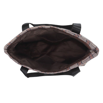 Add a splash of style and practicality to your everyday routine with this charming plaid tote bag, designed for women who value both fashion and functionality. Featuring a beautiful pastel pink checkered pattern with subtle tones of yellow, blue, and black, this bag effortlessly combines classic elegance with a modern twist. Crafted from durable, lightweight, and water-resistant fabric, it’s perfect for daily use whether you’re heading to work, school, the market, or a casual outing. The spacious main compartment offers ample room for your essentials – including books, a tablet, cosmetics, lunch, and more – while the convenient front zipper pocket provides easy access to smaller items like keys, phone, or wallet. The tote is reinforced with sturdy black faux leather shoulder straps and matching trim, ensuring comfortable wear and long-lasting performance. Its soft structure and lightweight feel make it ideal for all-day use without putting strain on your shoulders. Whether you're using it as a shopper tote, beach bag, casual handbag, or carry-on, this versatile bag is a perfect companion for both everyday use and travel. With its stylish plaid design and functional layout, this tote bag makes a thoughtful gift for students, teachers, moms, or anyone looking to add a little flair to their daily carry. Functional, fashionable, and full of personality, this tote bag is ready to keep up with your busy lifestyle while turning heads wherever you go.