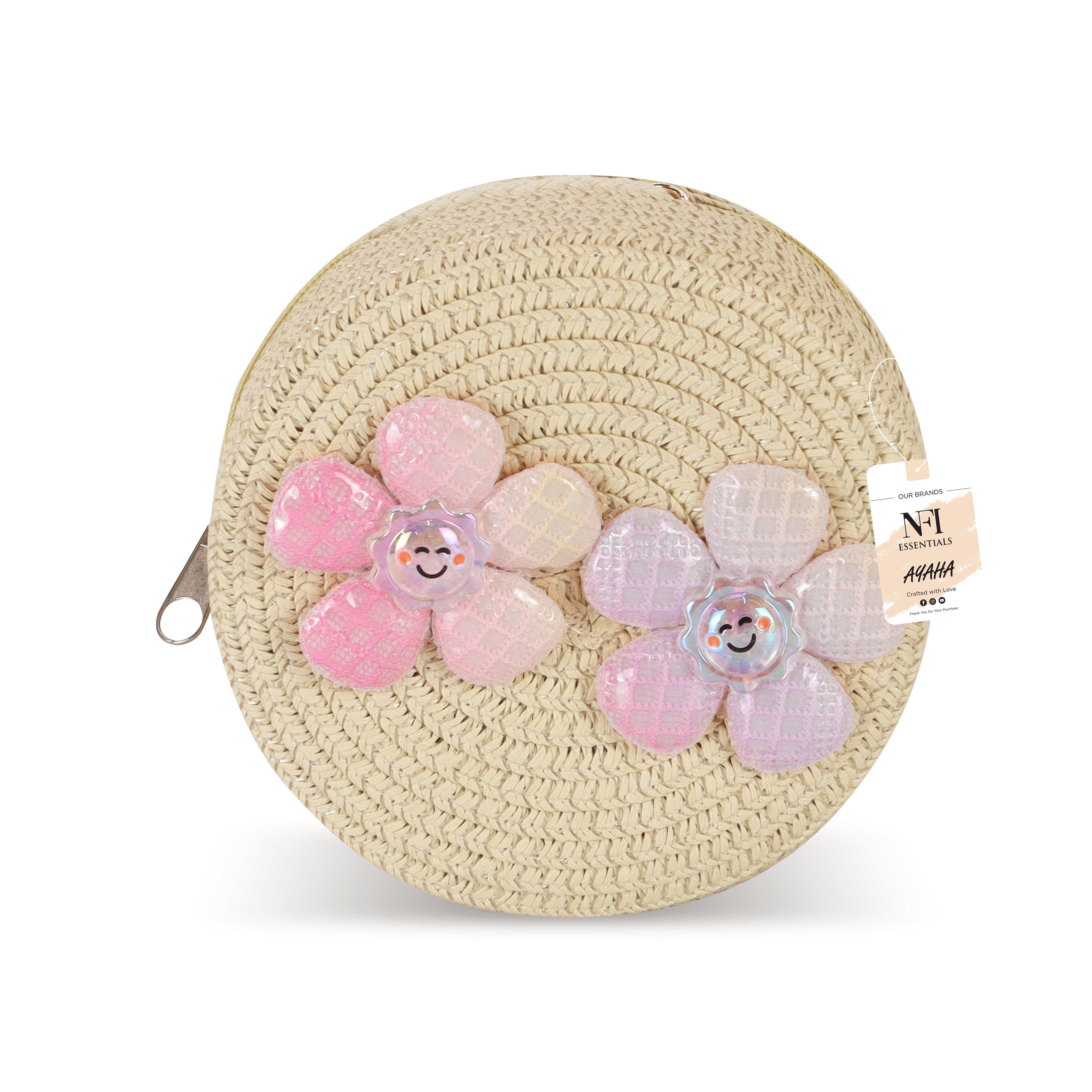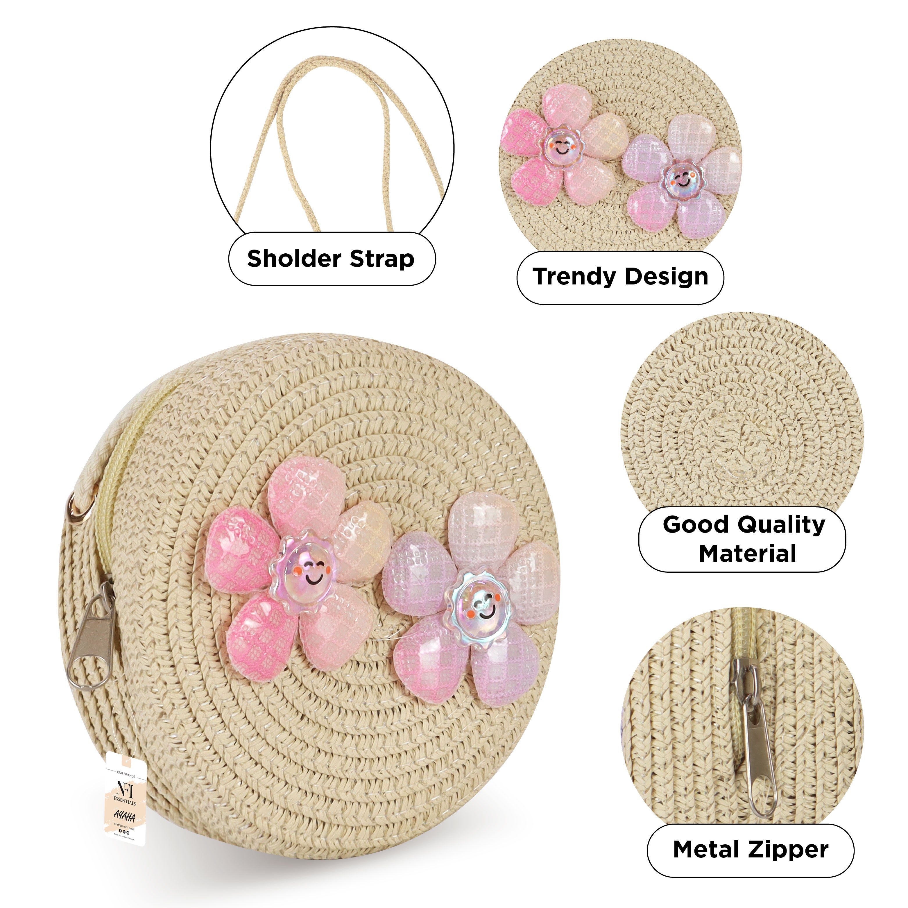 NFI essentials Round Sling Bag for Women, Stylish Shoulder Bag for Girls, Travel Crossbody Bag Purse for Ladies, Jute Zipper Closure Straw Side Sling Bag for Woman Latest