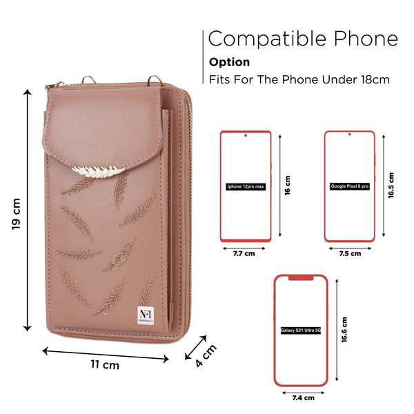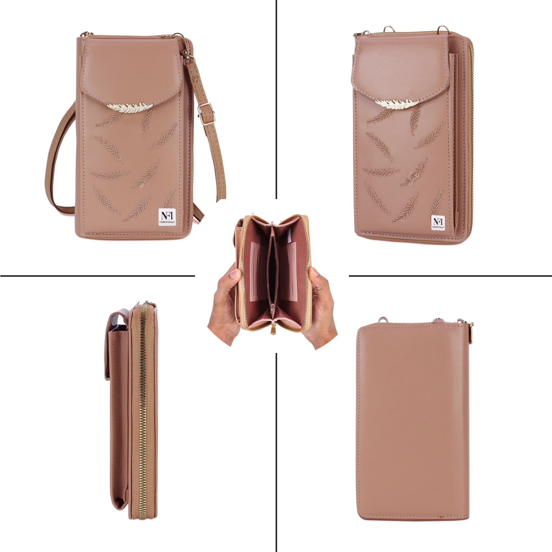 NFI essentials Womens Crossbody Wallet, Small Mobile Cell Phone Holder Bag, Pocket Wallet, Hand Purse, Clutch Mobile Sling Bag, Phone Pouch for Women