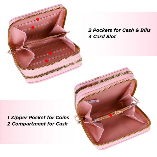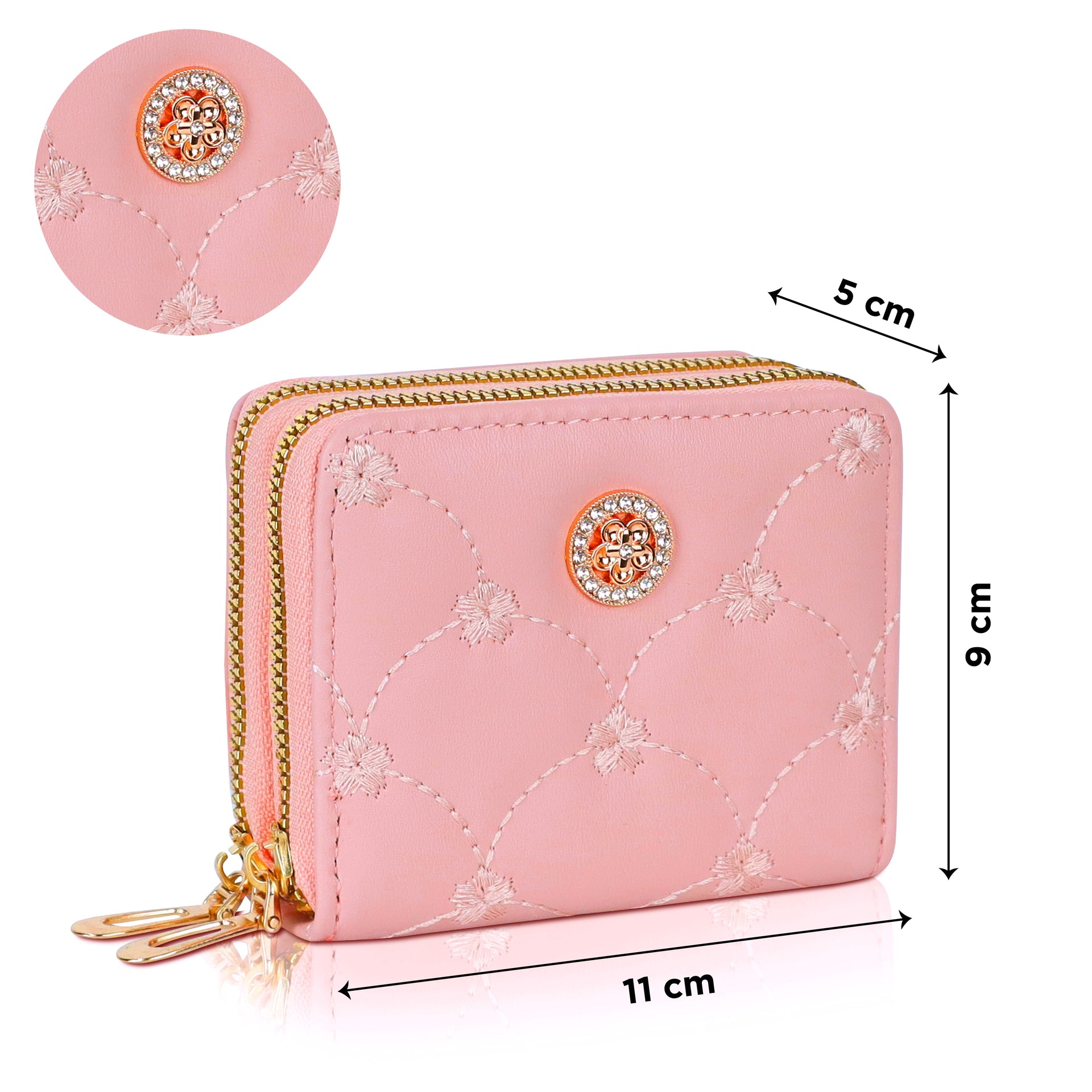NFI essentials Small Wallet for Women, PU Leather Mini Clutch Wallet for Girls, Dual Zipper wallet, Credit Card Holder Coin Purse for Girls